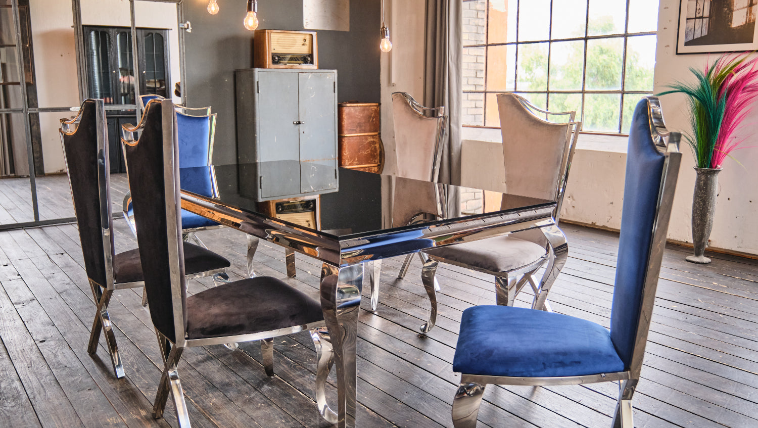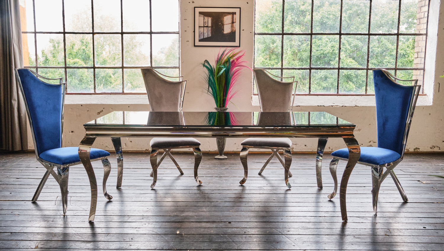 La Mesa de comedor AMARA de KAWOLA atrae todas las miradas con su elegante diseño barroco. En ella podrá cenar con estilo a cualquier hora del día. El tablero de cristal negro tiene un acabado de alta calidad y las extravagantes patas de acero inoxidable confieren a la mesa un aspecto especial. Con su elegante diseño, la Mesa de comedor AMARA crea un ambiente exclusivo.