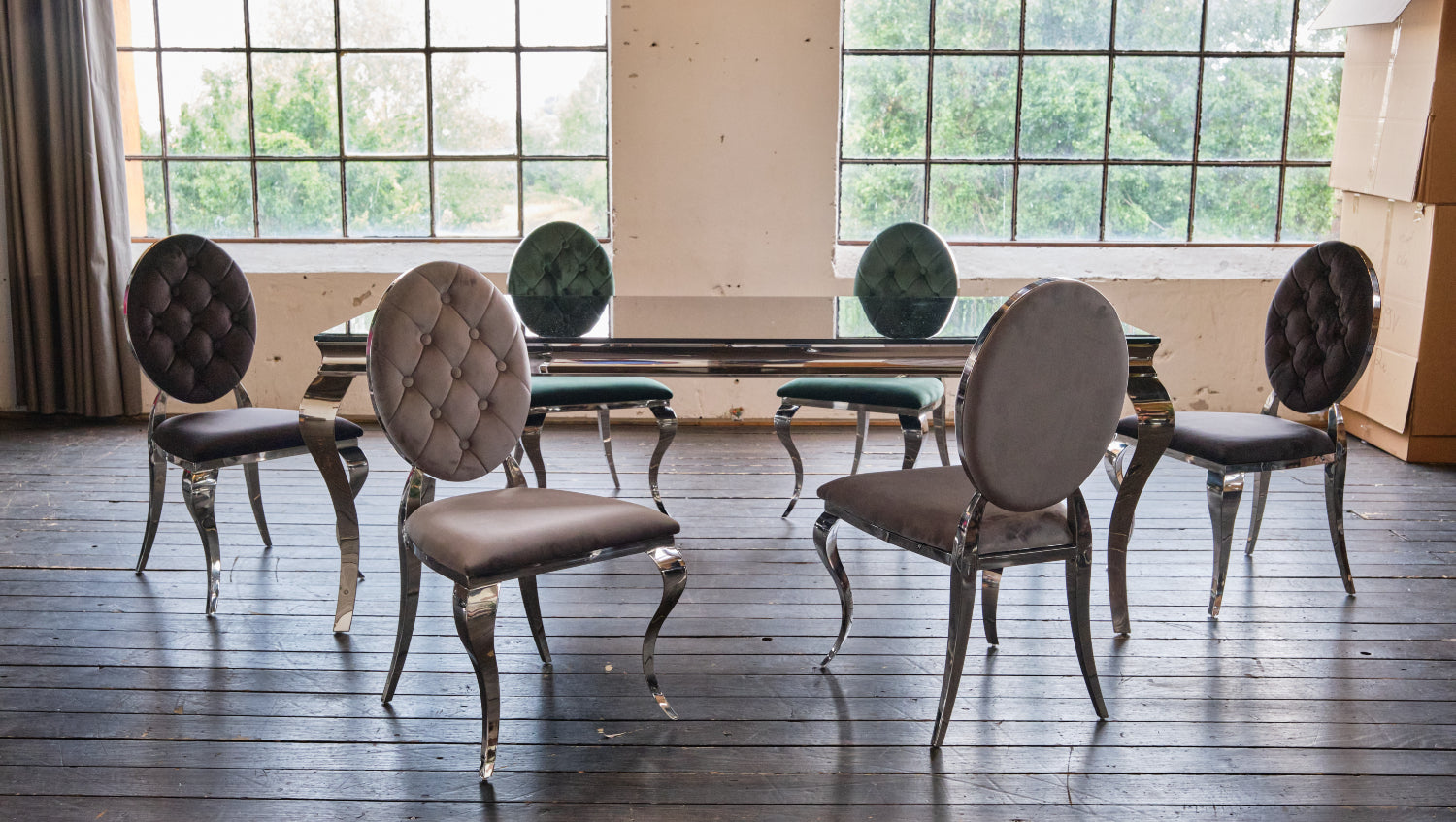 La silla de comedor KAWOLA LINDA atrae todas las miradas con su elegante diseño barroco. En ella podrá reclinarse cómodamente y cenar con estilo. El tapizado de terciopelo con su elaborado acolchado en el respaldo tiene un acabado de muy alta calidad, y los extravagantes pies de acero inoxidable confieren a la silla su aspecto especial. Con su elegante diseño, la silla LINDA crea un ambiente exclusivo.