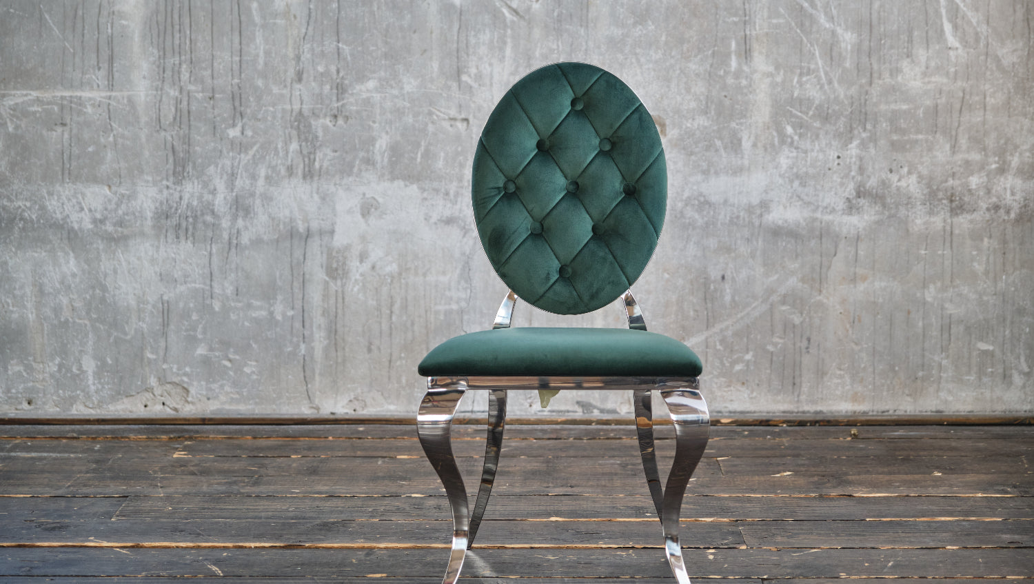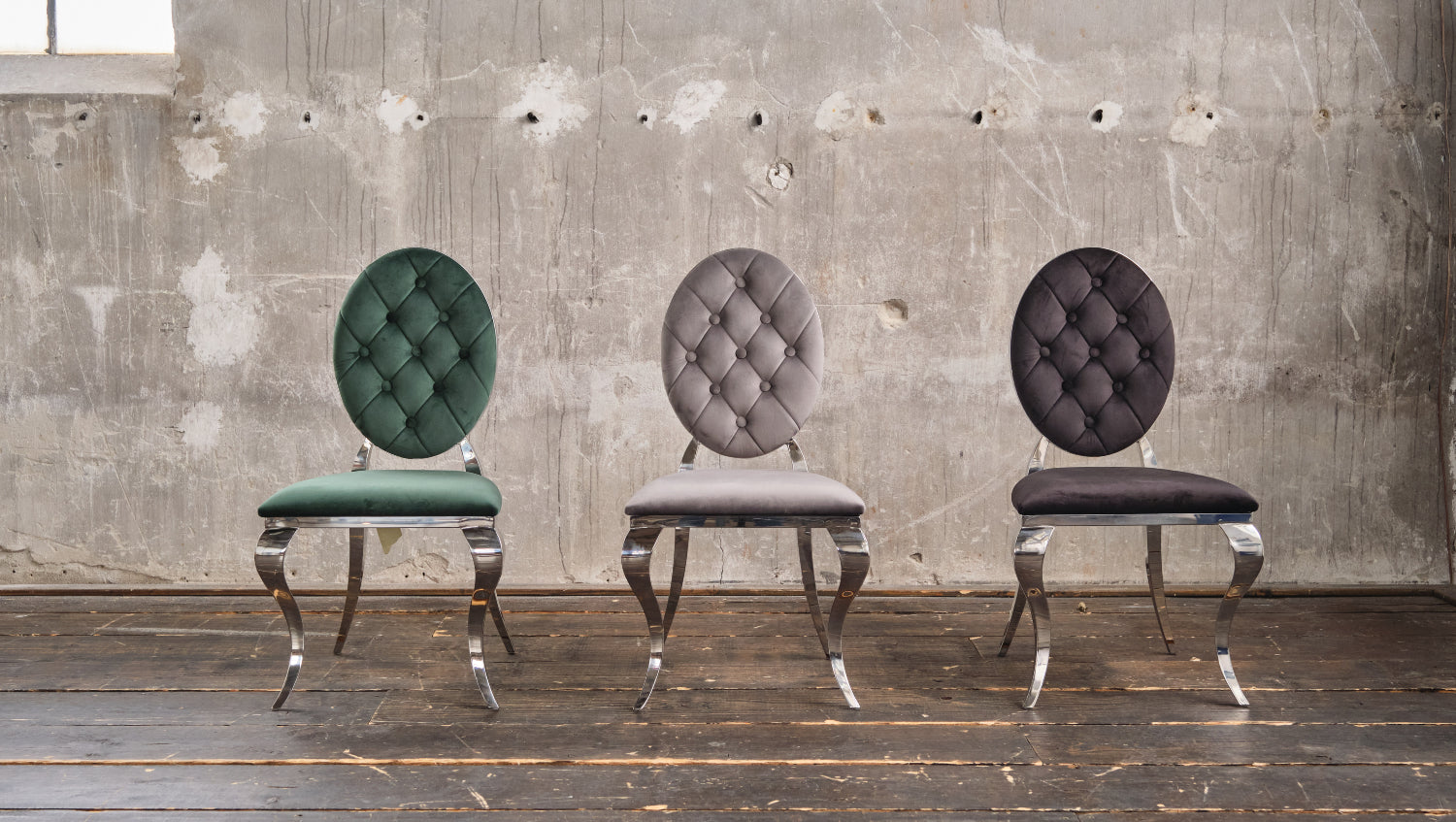 La silla de comedor KAWOLA LINDA atrae todas las miradas con su elegante diseño barroco. En ella podrá reclinarse cómodamente y cenar con estilo. El tapizado de terciopelo con su elaborado acolchado en el respaldo tiene un acabado de muy alta calidad, y los extravagantes pies de acero inoxidable confieren a la silla su aspecto especial. Con su elegante diseño, la silla LINDA crea un ambiente exclusivo.