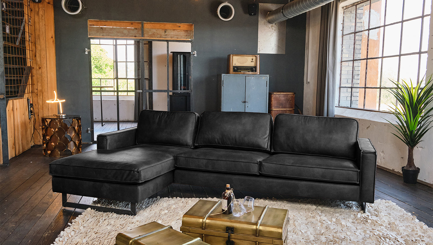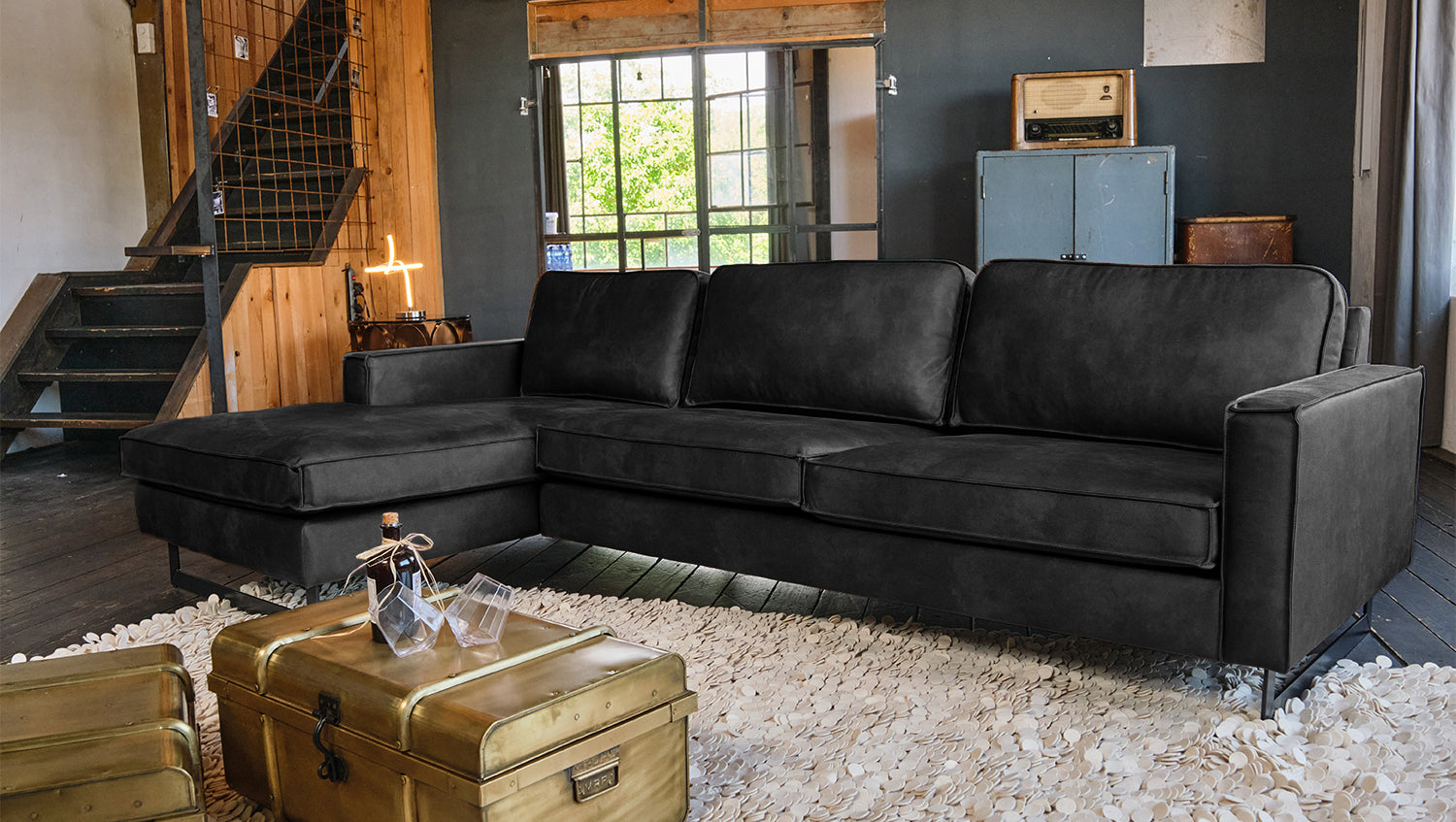 El sofá VILNIUS de KAWOLA ofrece todos los puntos fuertes de un sofá de piel clásico y mucho más. La funda de tejido de fibra de piel es una alternativa innovadora a la piel auténtica: está fabricada con fibras de piel recicladas que se combinan con aglutinantes naturales y fibras textiles. El resultado es un material resistente y de alta calidad con un aspecto de auténtica piel y un tacto agradablemente suave. El tejido de fibra de cuero es de fácil cuidado, dimensionalmente estable y transpirable, mientras que el sólido armazón de madera garantiza una extrema robustez y un tapizado cómodo y desenfadado para disfrutar de un asiento mullido. A pesar de sus grandes dimensiones, el sofá esquinero se puede colocar de forma flexible en cualquier habitación, convirtiéndolo en un punto de atracción visual en todo momento, mientras que los pies metálicos de aspecto industrial proporcionan un bello contraste con el cuerpo del sofá. En definitiva, el sofá KAWOLA VILNIUS creará un ambiente maravillosamente acogedor en cualquier ocasión.