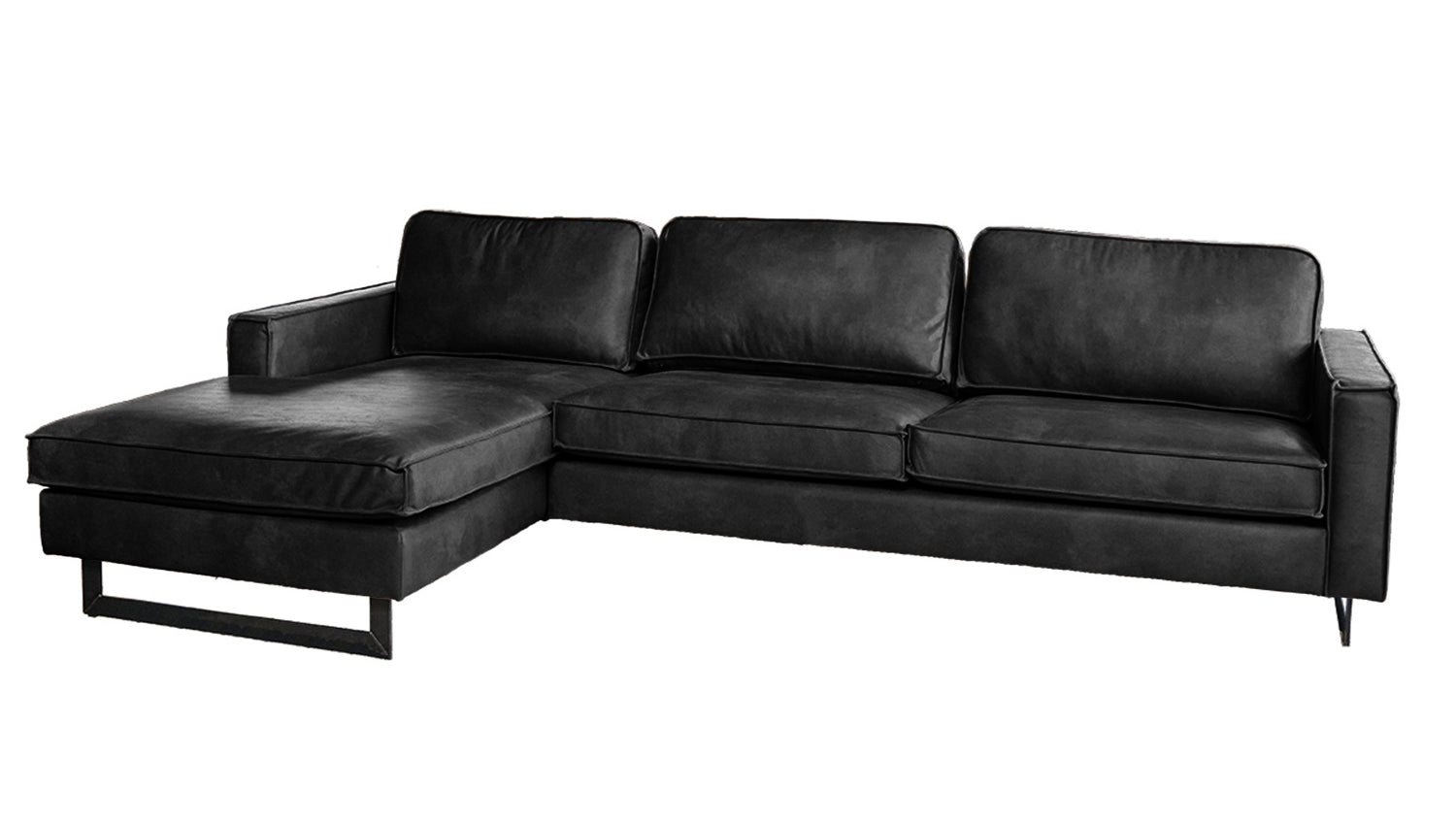 KAWOLA sofá esquinero VILNIUS 3 plazas con sillón largo izquierda cuero fibra tejido negro