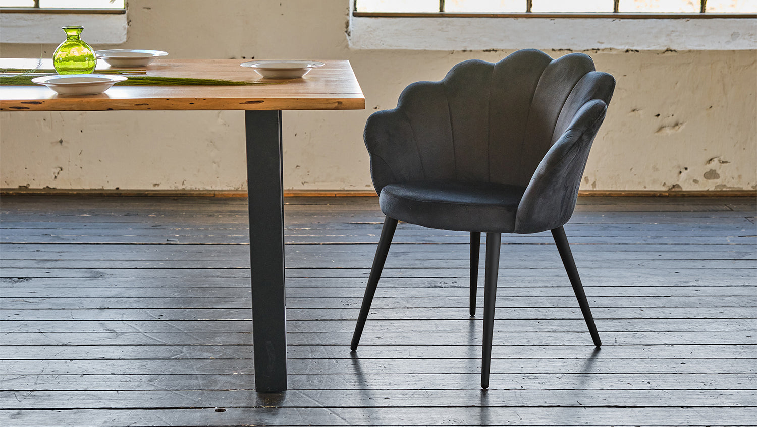 La silla KAWOLA CARLA aúna un agradable confort de asiento y un diseño moderno. Aquí podrá reclinarse cómodamente y cenar con estilo. La tela de tapizado de terciopelo tiene un acabado de alta calidad y el elaborado diseño del respaldo confiere a la silla un aspecto especial. Ya sea en el despacho o en el comedor, la silla CARLA se adapta prácticamente a cualquier espacio gracias a su moderno diseño.