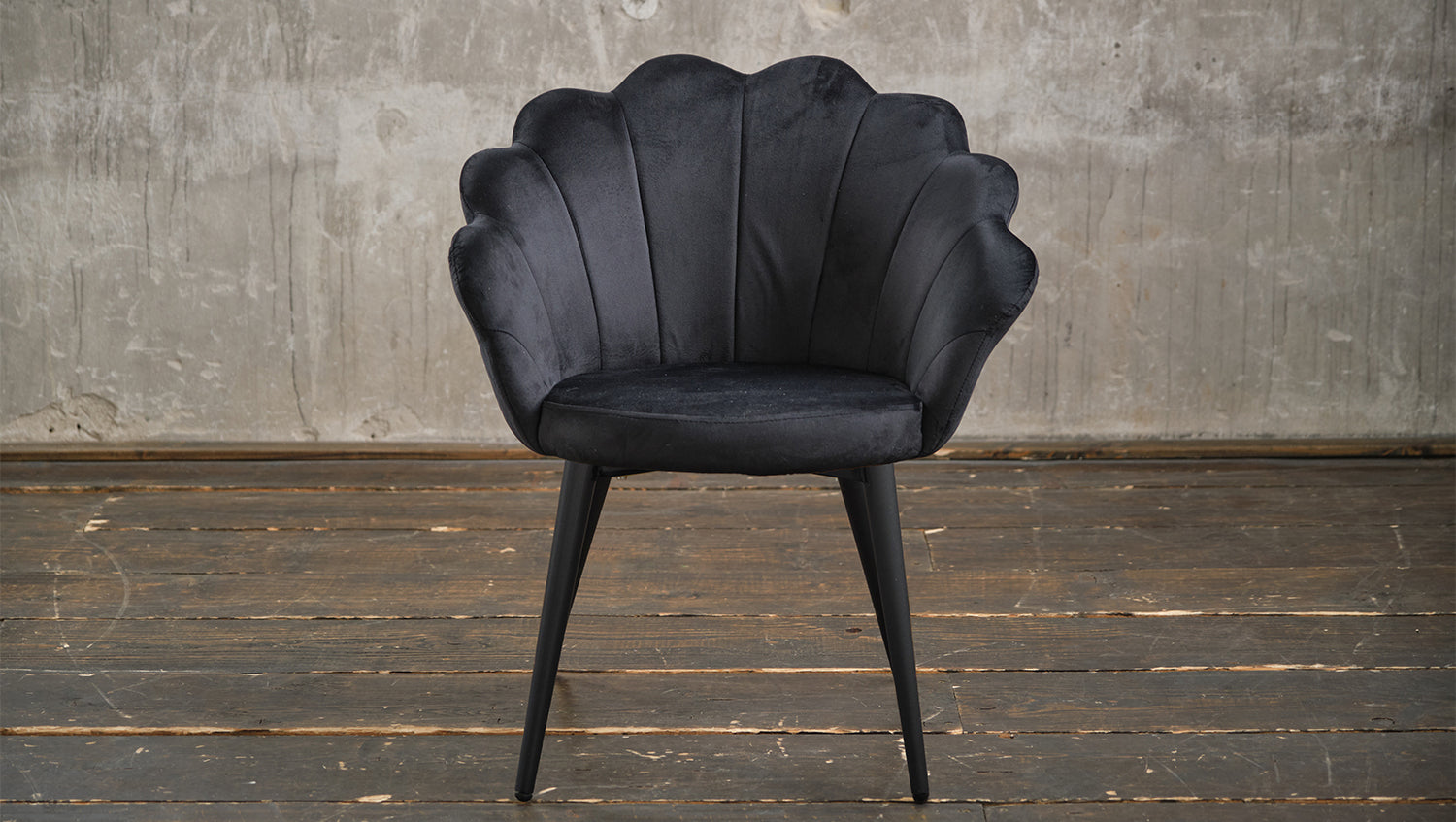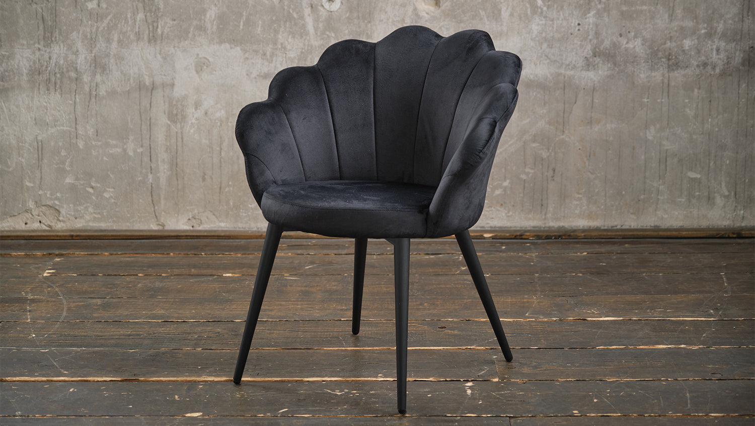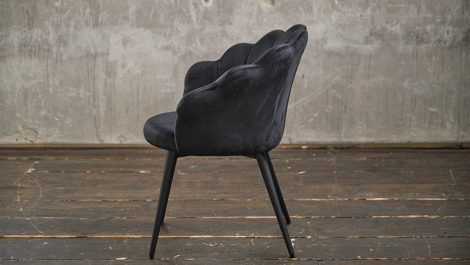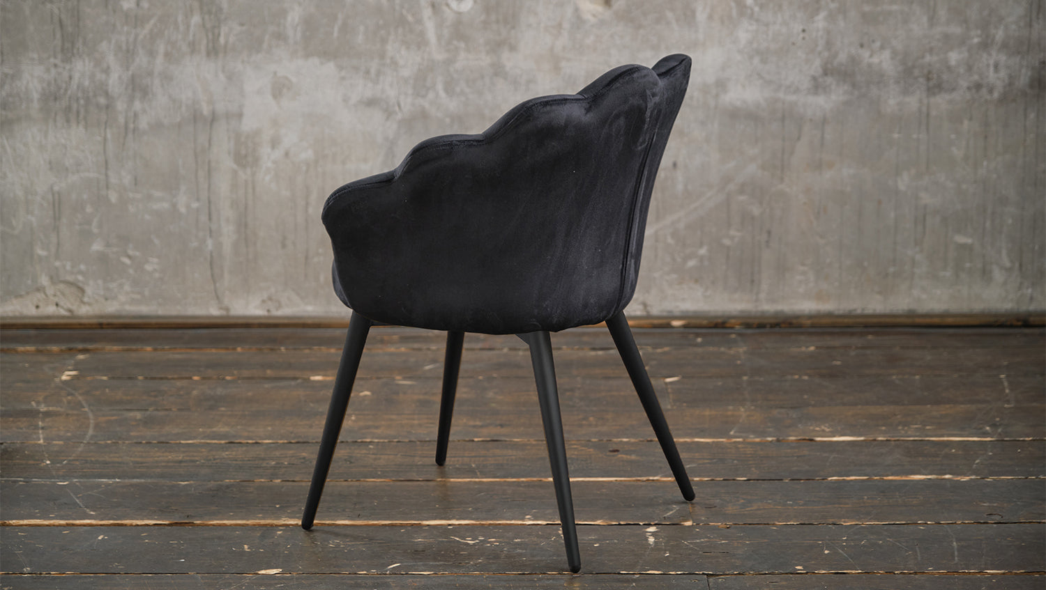 Silla KAWOLA silla de comedor CARLA terciopelo negro con pie negro