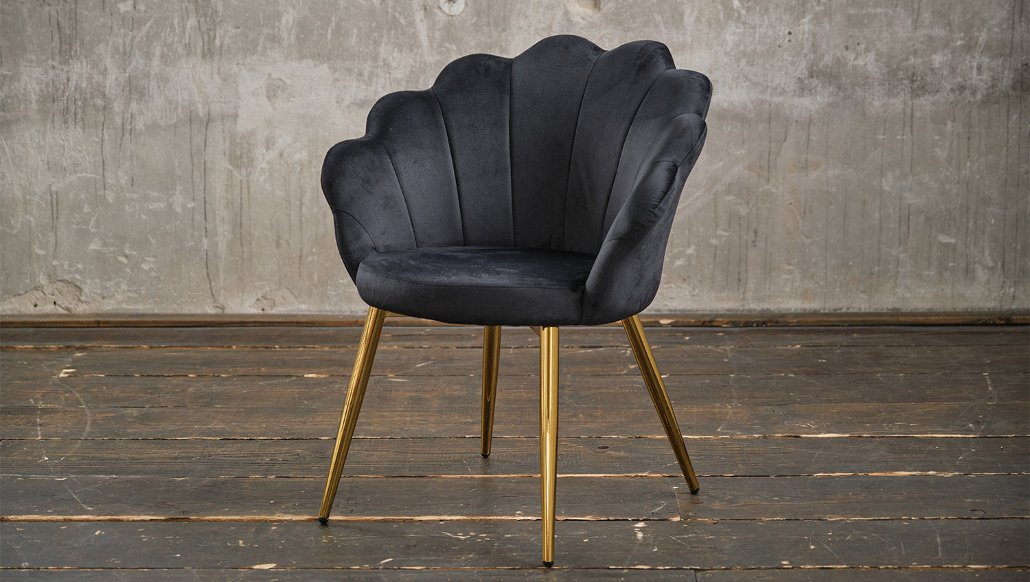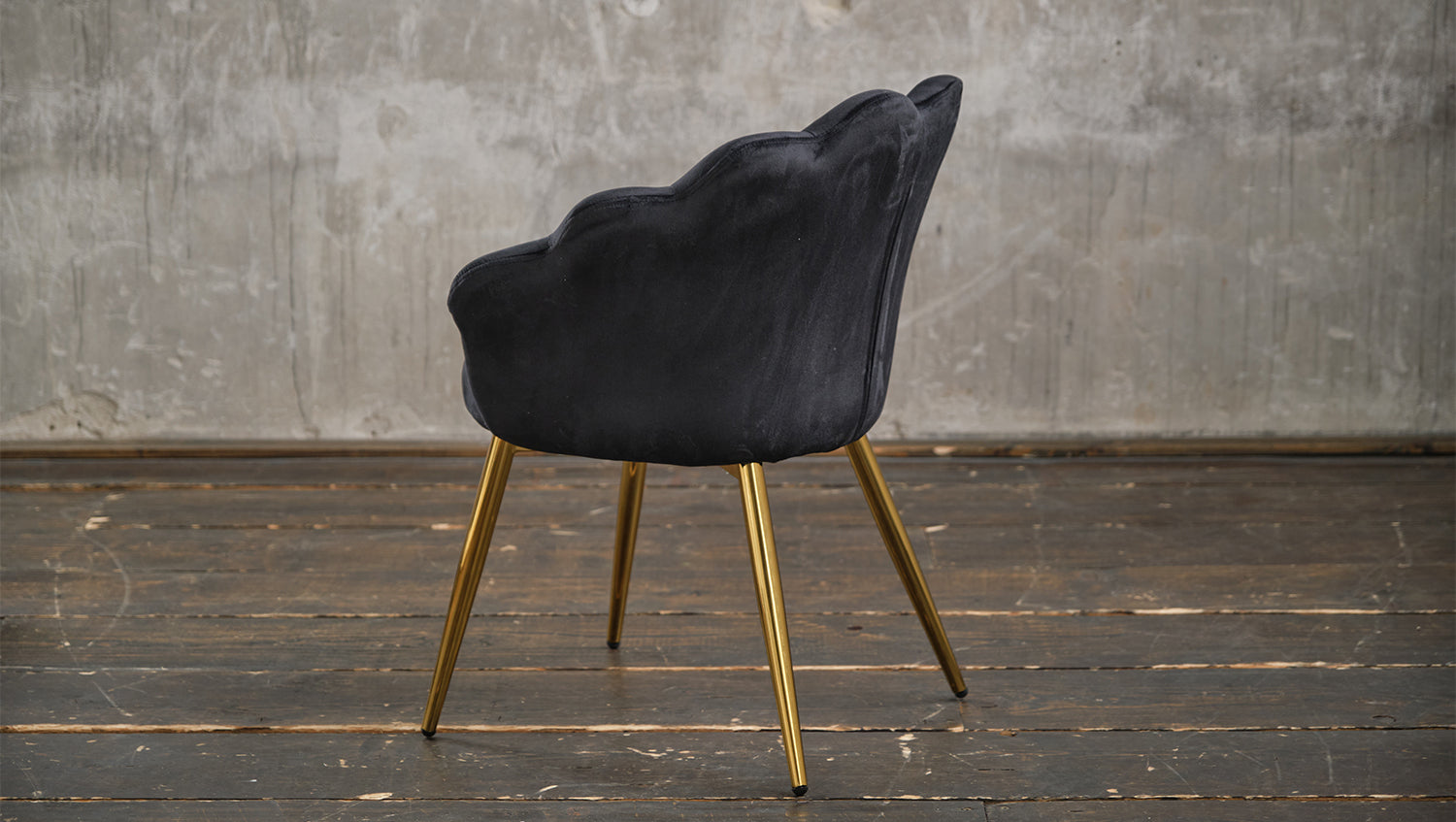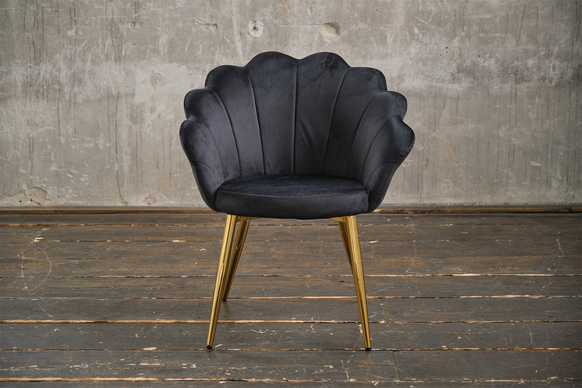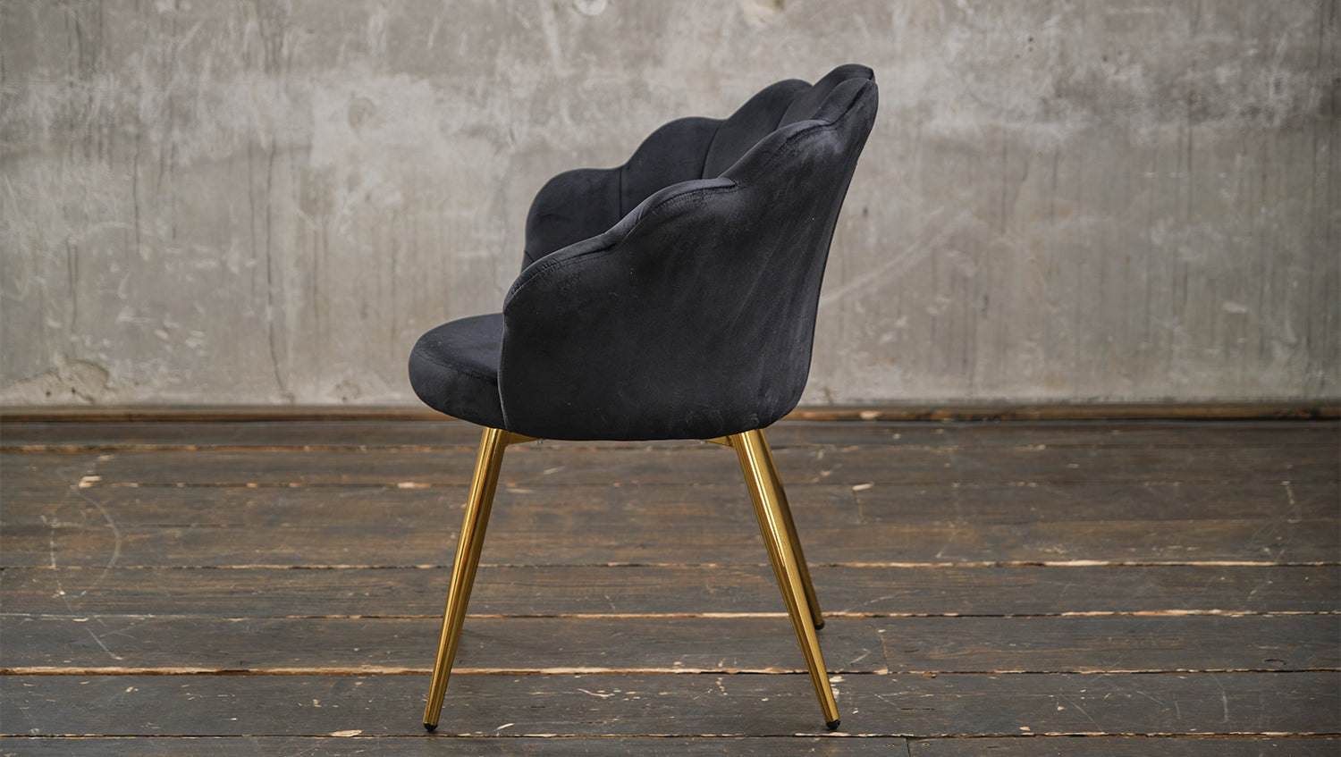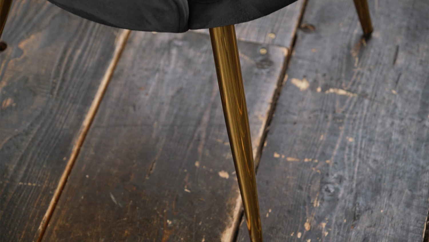 Silla KAWOLA CARLA silla de comedor terciopelo negro pie dorado