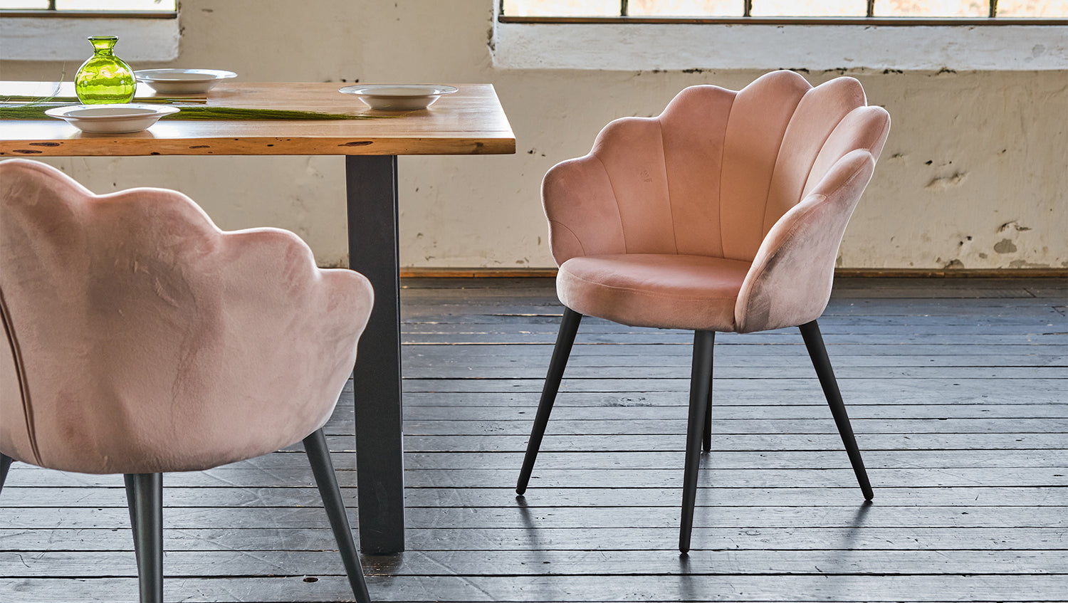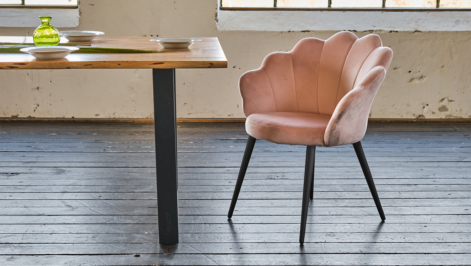 La silla KAWOLA CARLA aúna un agradable confort de asiento y un diseño moderno. Aquí podrá reclinarse cómodamente y cenar con estilo. La tela de tapizado de terciopelo tiene un acabado de alta calidad y el elaborado diseño del respaldo confiere a la silla un aspecto especial. Ya sea en el despacho o en el comedor, la silla CARLA se adapta prácticamente a cualquier espacio gracias a su moderno diseño.