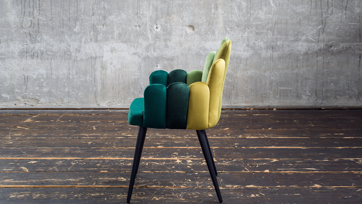 La silla FREJA de KAWOLA combina un agradable confort de asiento y un moderno diseño de salón. Aquí podrá reclinarse cómodamente y cenar con estilo. La tela de tapizado de terciopelo tiene un acabado de alta calidad y el elaborado diseño del respaldo en diferentes colores confiere a la silla un aspecto especial. Ya sea en el despacho o en el comedor, la silla FREJA se adapta a prácticamente cualquier espacio gracias a su moderno diseño.