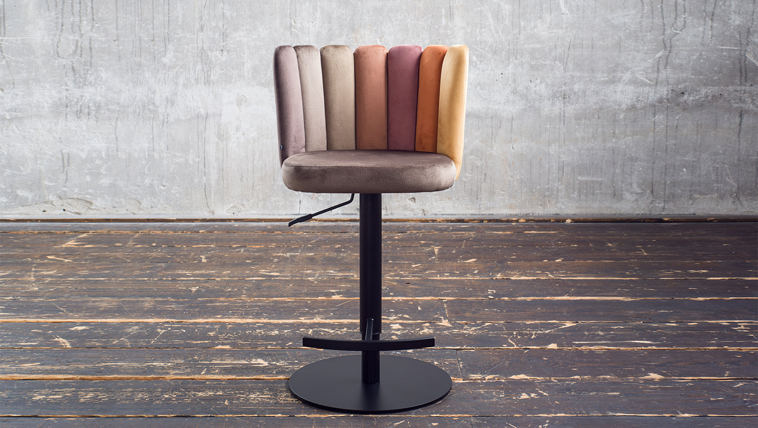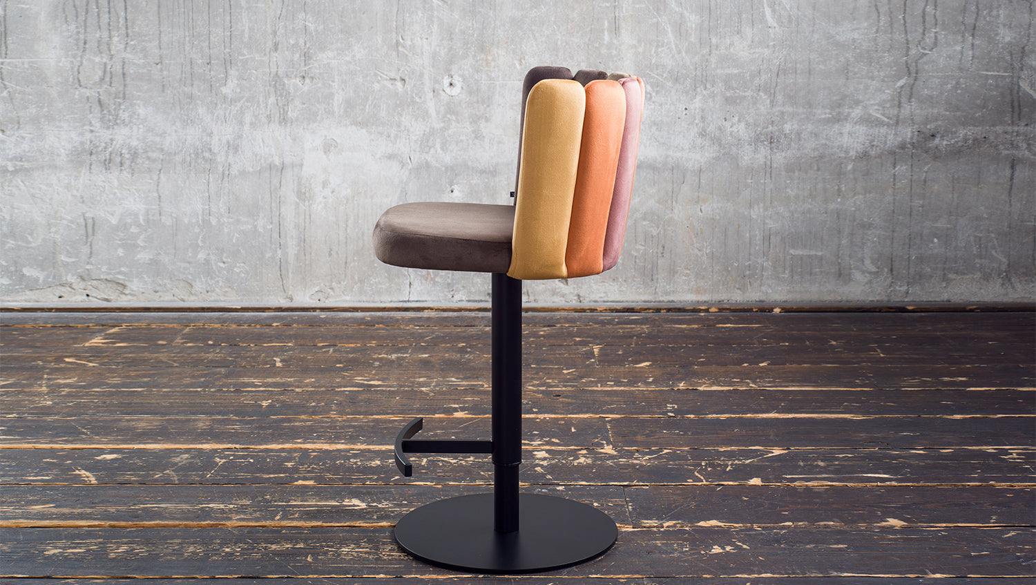 El taburete de bar JADA de KAWOLA aúna un agradable confort de asiento y un diseño moderno. Aquí podrá sentarse cómodamente y disfrutar de una bebida con estilo, como en su bar favorito. La altura del taburete de bar es regulable: de 85 cm a 109 cm. Esto le permite adaptar el taburete a sus necesidades individuales, con una altura de asiento variable de hasta 81 cm. Con su función giratoria de 360°, también ofrece la máxima flexibilidad y libertad de movimiento. El tejido de la funda de terciopelo tiene un acabado de muy alta calidad y el elaborado diseño del respaldo en distintos colores confiere a la silla un aspecto especial. Con su elegante diseño y sus prácticas funciones, el taburete de bar JADA aporta un auténtico ambiente de salón a su hogar.