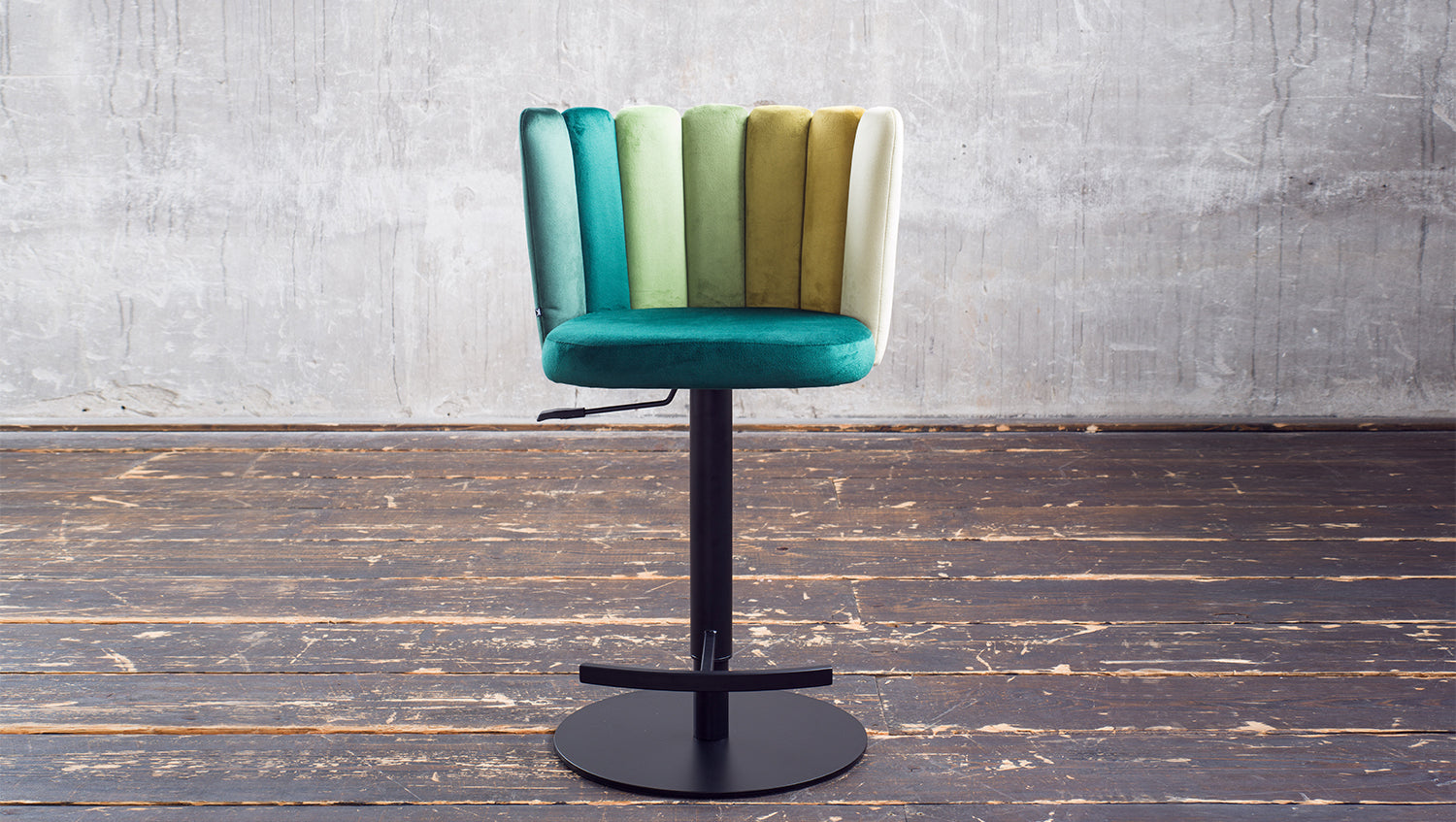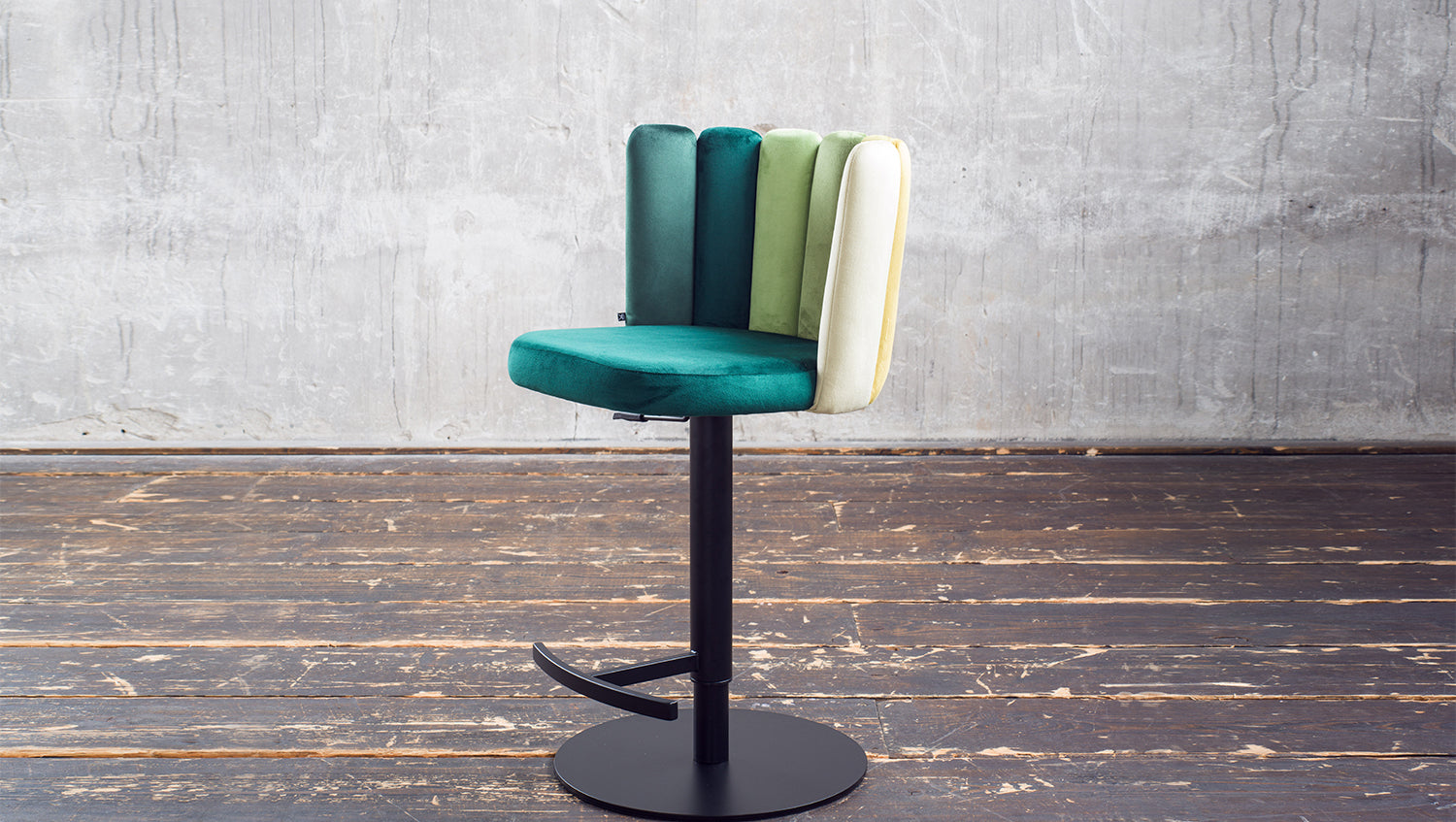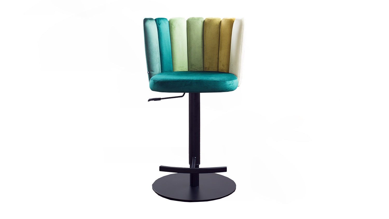 El taburete de bar JADA de KAWOLA aúna un agradable confort de asiento y un diseño moderno. Aquí podrá sentarse cómodamente y disfrutar de una bebida con estilo, como en su bar favorito. La altura del taburete de bar es regulable: de 85 cm a 109 cm. Esto le permite adaptar el taburete a sus necesidades individuales, con una altura de asiento variable de hasta 81 cm. Con su función giratoria de 360°, también ofrece la máxima flexibilidad y libertad de movimiento. El tejido de la funda de terciopelo tiene un acabado de muy alta calidad y el elaborado diseño del respaldo en distintos colores confiere a la silla un aspecto especial. Con su elegante diseño y sus prácticas funciones, el taburete de bar JADA aporta un auténtico ambiente de salón a su hogar.