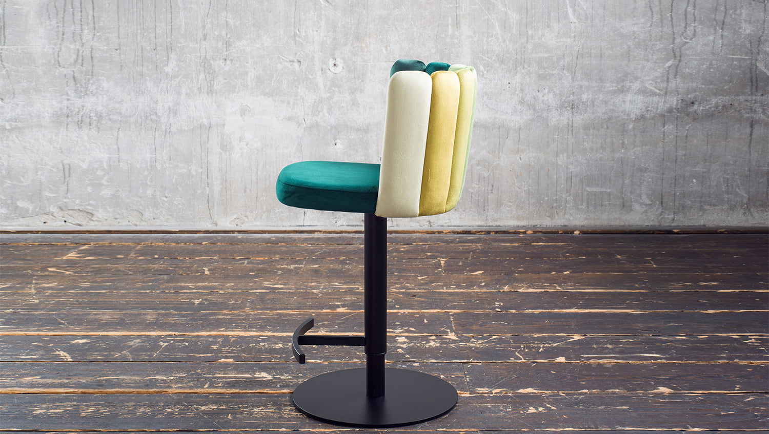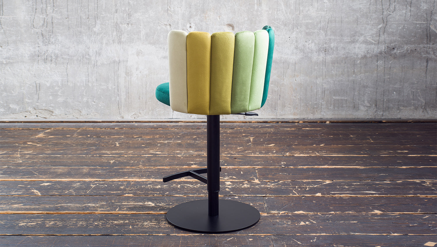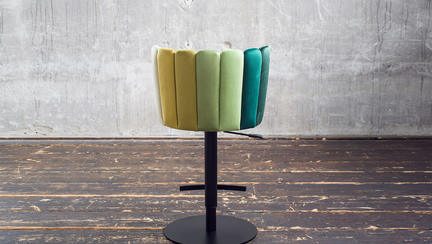 El taburete de bar JADA de KAWOLA aúna un agradable confort de asiento y un diseño moderno. Aquí podrá sentarse cómodamente y disfrutar de una bebida con estilo, como en su bar favorito. La altura del taburete de bar es regulable: de 85 cm a 109 cm. Esto le permite adaptar el taburete a sus necesidades individuales, con una altura de asiento variable de hasta 81 cm. Con su función giratoria de 360°, también ofrece la máxima flexibilidad y libertad de movimiento. El tejido de la funda de terciopelo tiene un acabado de muy alta calidad y el elaborado diseño del respaldo en distintos colores confiere a la silla un aspecto especial. Con su elegante diseño y sus prácticas funciones, el taburete de bar JADA aporta un auténtico ambiente de salón a su hogar.