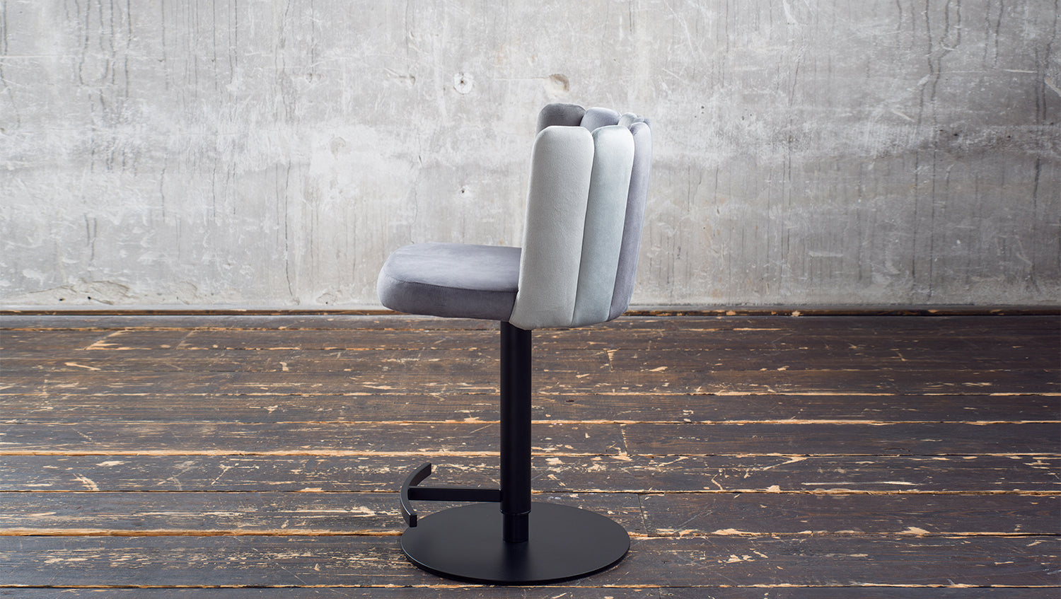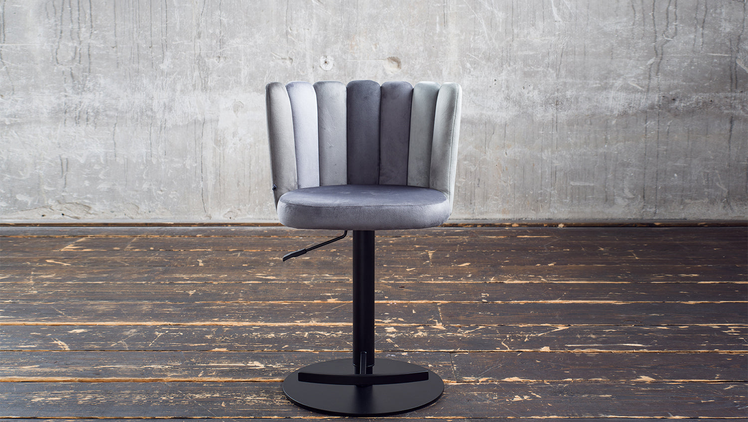 El taburete de bar JADA de KAWOLA aúna un agradable confort de asiento y un diseño moderno. Aquí podrá sentarse cómodamente y disfrutar de una bebida con estilo, como en su bar favorito. La altura del taburete de bar es regulable: de 85 cm a 109 cm. Esto le permite adaptar el taburete a sus necesidades individuales, con una altura de asiento variable de hasta 81 cm. Con su función giratoria de 360°, también ofrece la máxima flexibilidad y libertad de movimiento. El tejido de la funda de terciopelo tiene un acabado de muy alta calidad y el elaborado diseño del respaldo en distintos colores confiere a la silla un aspecto especial. Con su elegante diseño y sus prácticas funciones, el taburete de bar JADA aporta un auténtico ambiente de salón a su hogar.