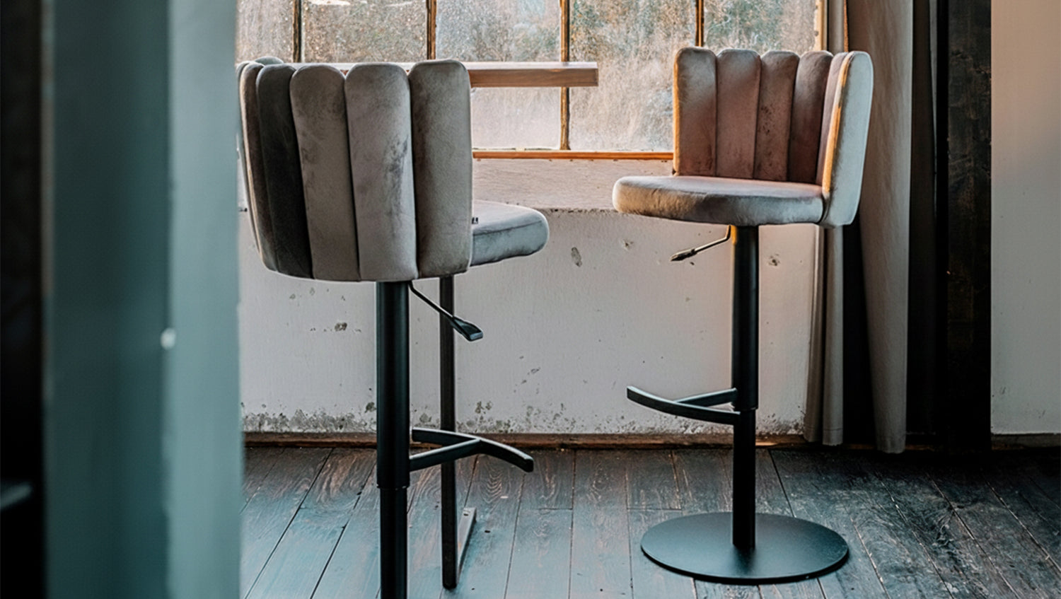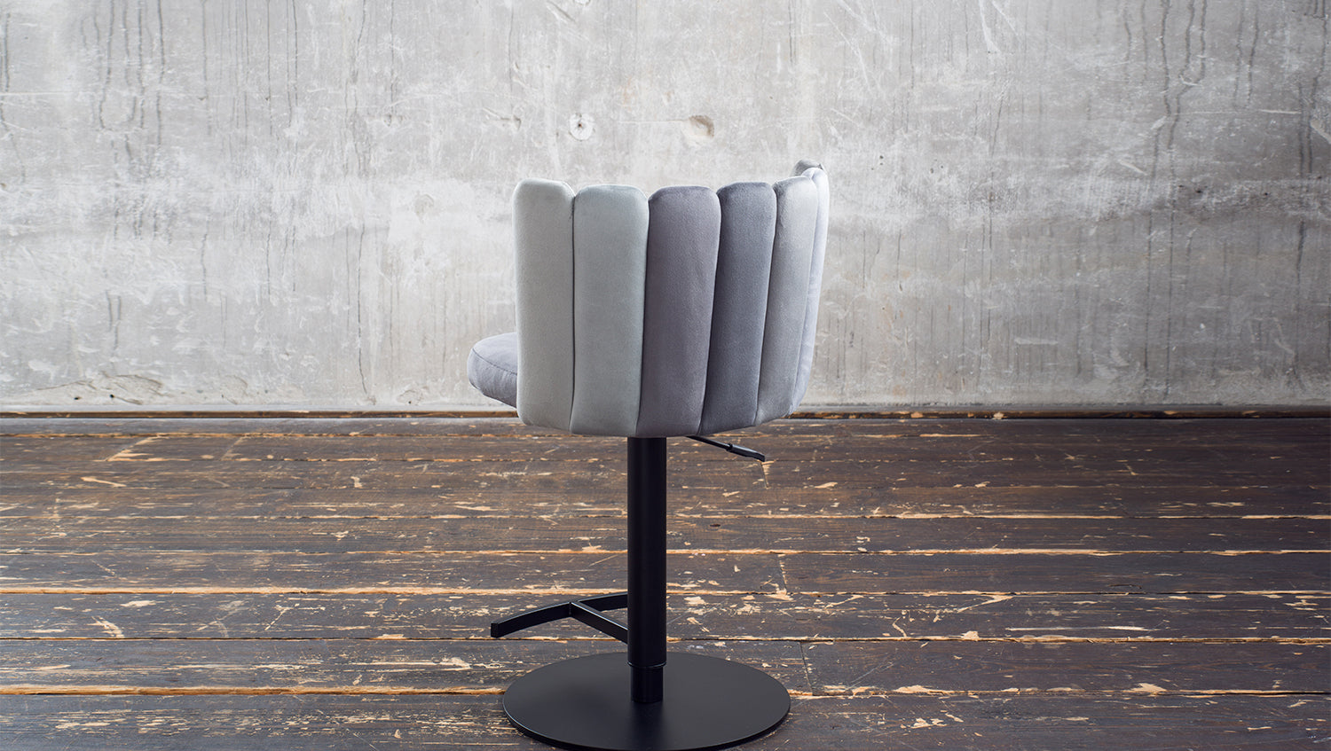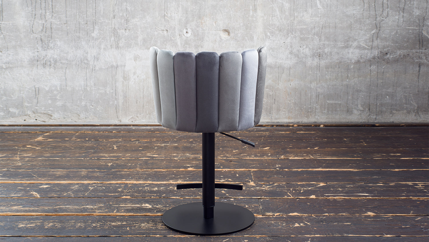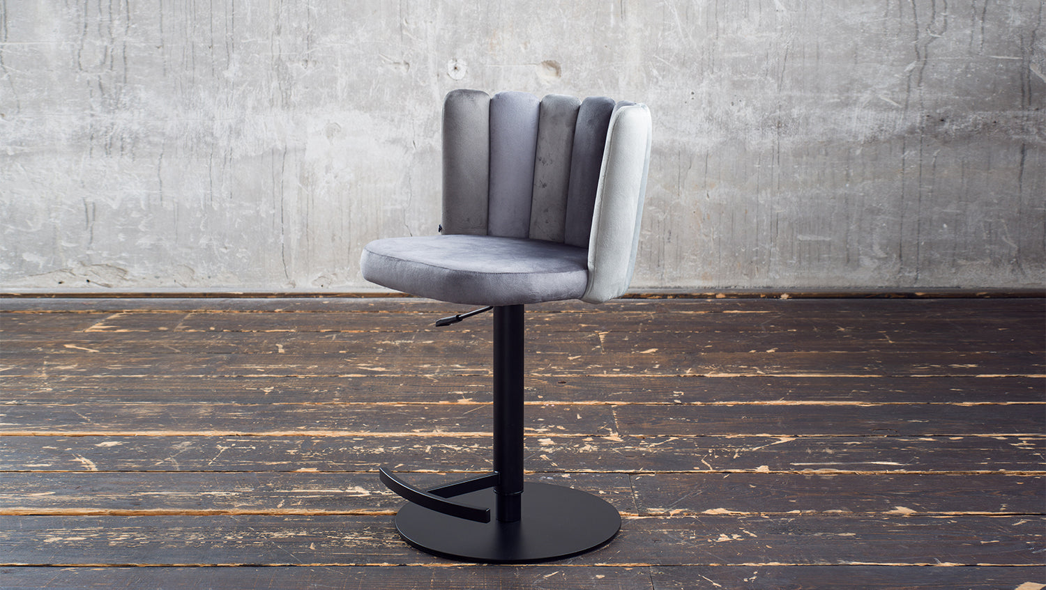 KAWOLA taburete de bar JADA silla giratoria regulable en altura Terciopelo gris