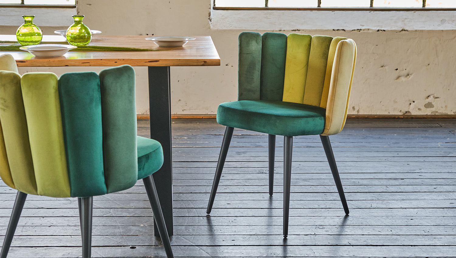 Silla KAWOLA, silla de comedor JADA, terciopelo, verde, pie negro