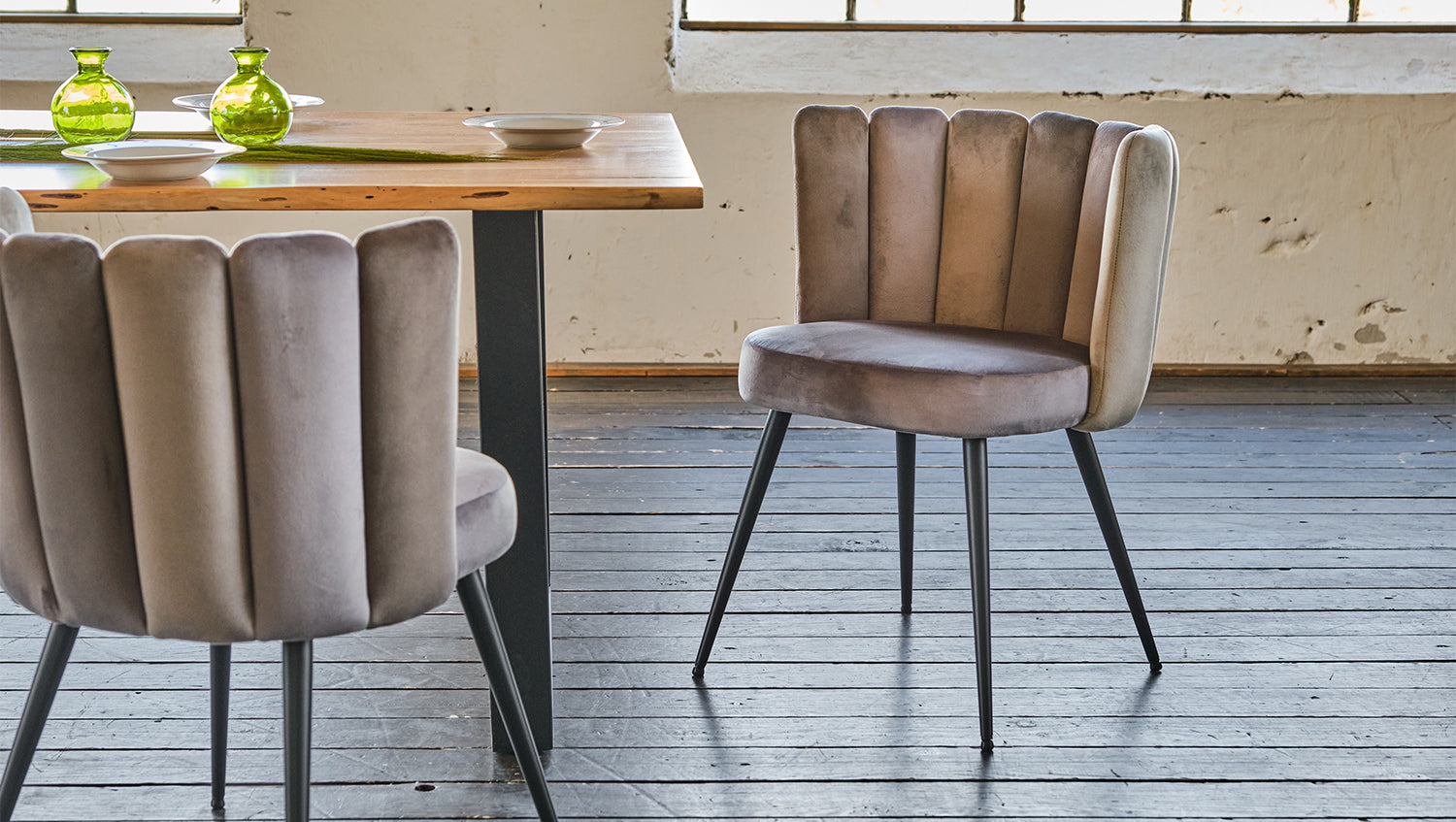 Silla KAWOLA JADA silla de comedor terciopelo gris pie negro