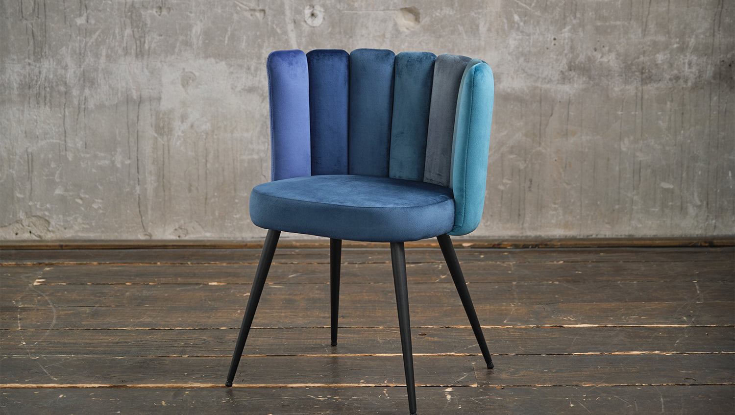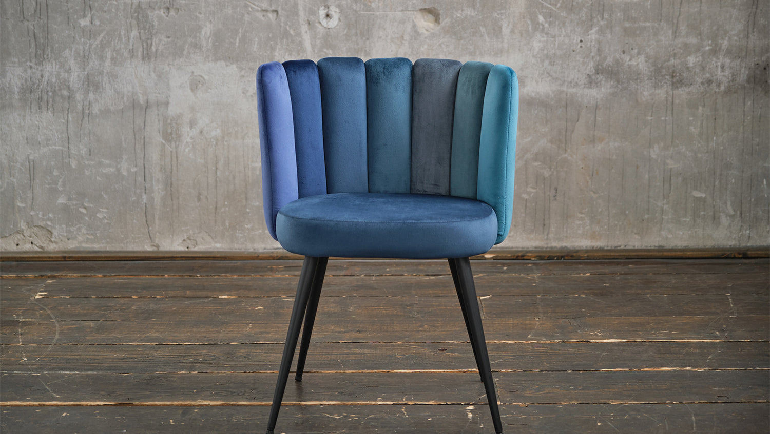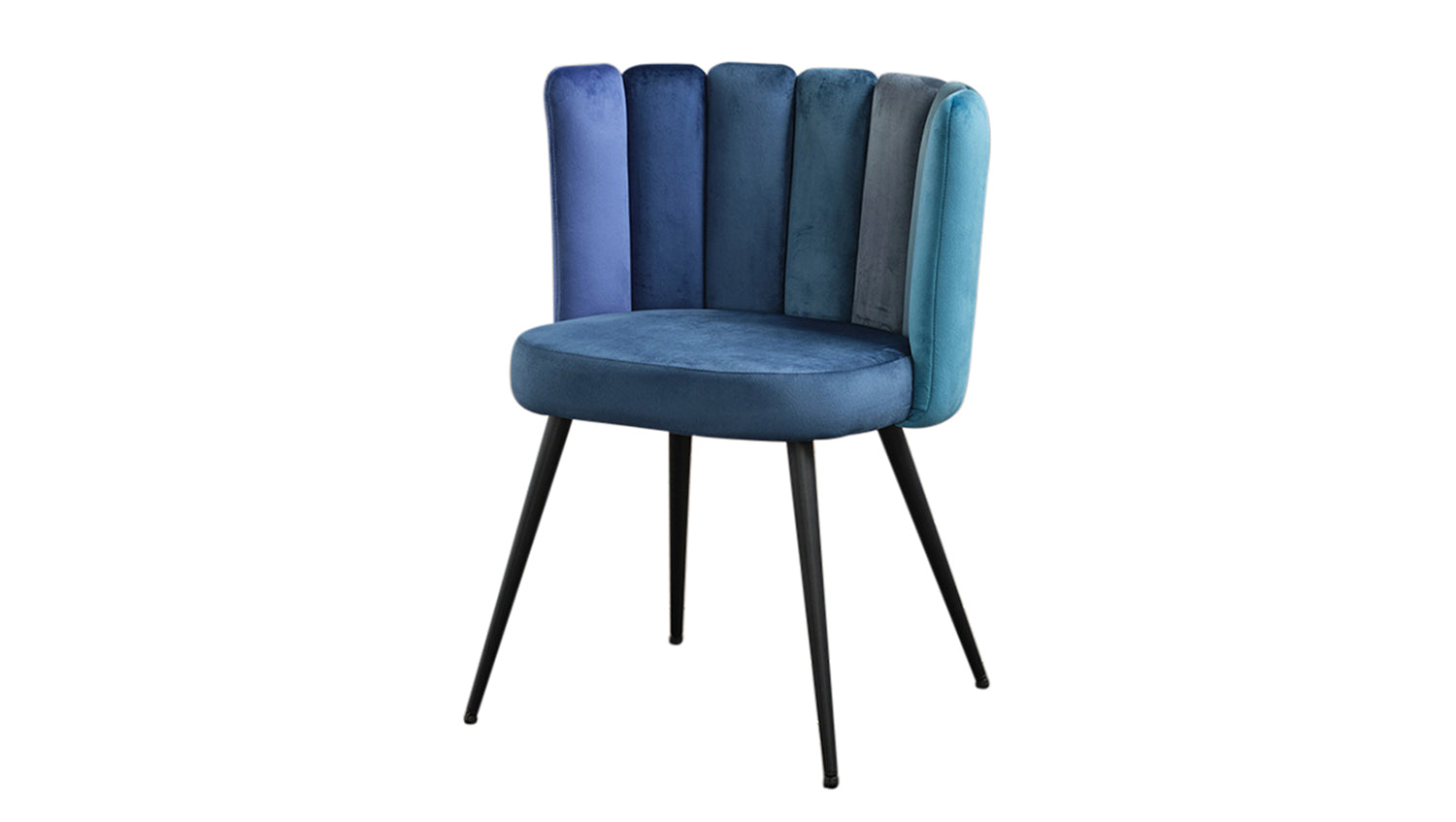 Silla KAWOLA, silla de comedor JADA, terciopelo, azul, pie negro