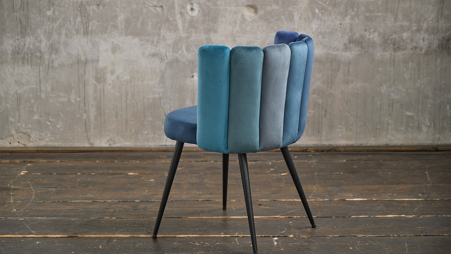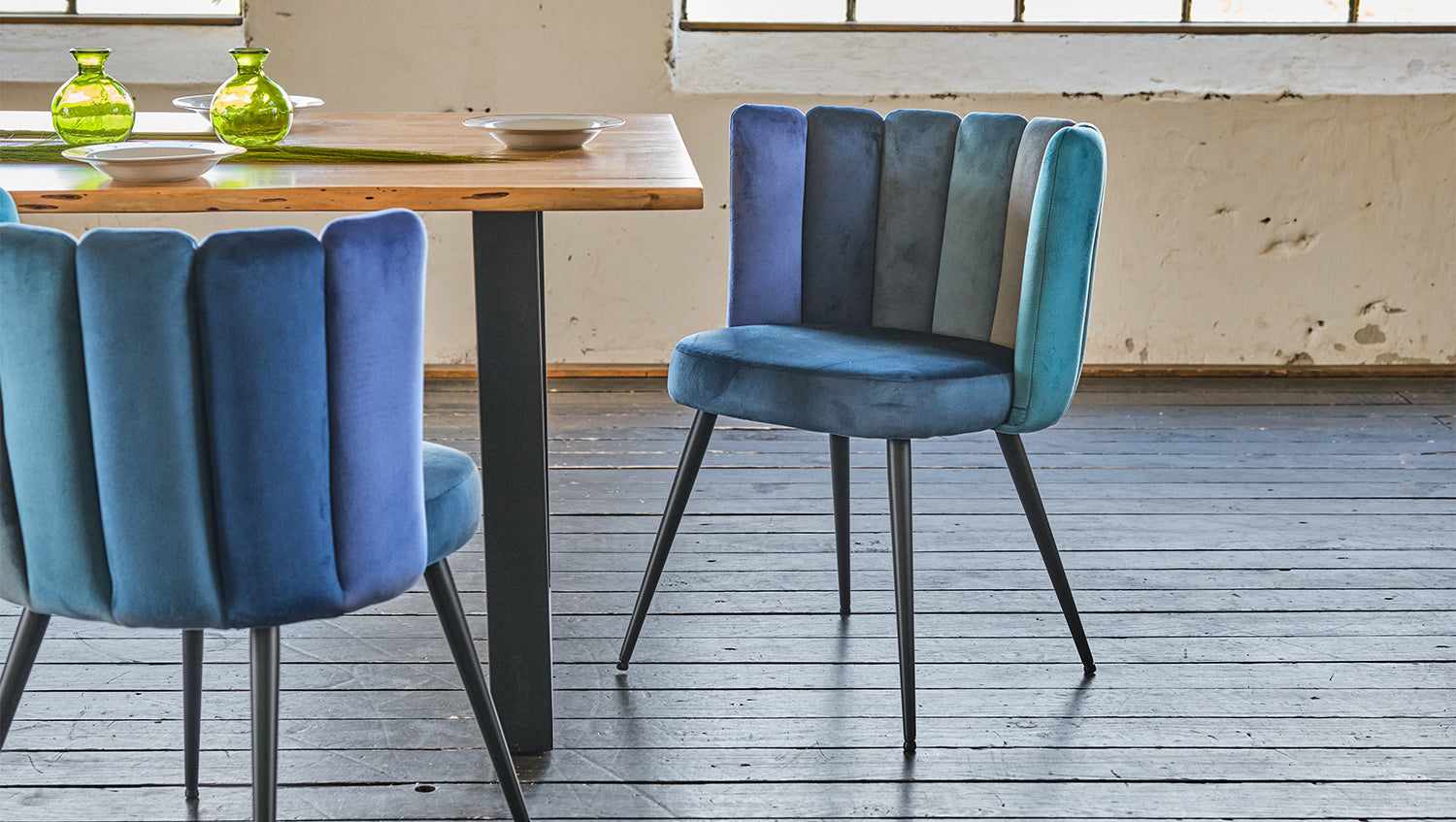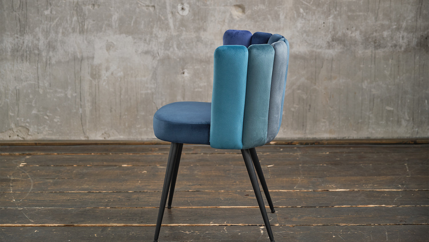 Silla KAWOLA, silla de comedor JADA, terciopelo, azul, pie negro