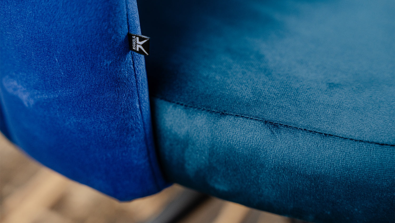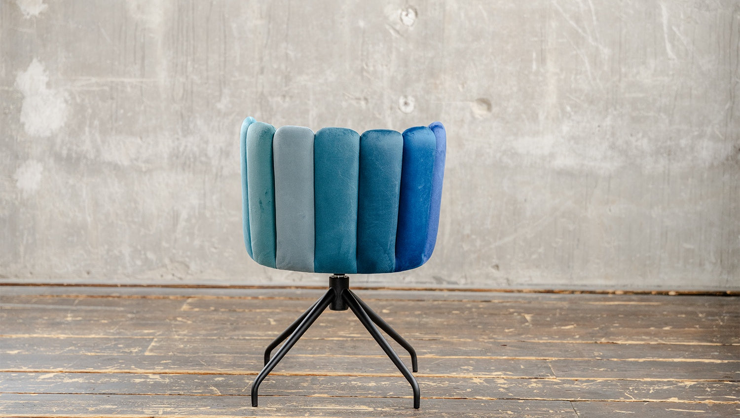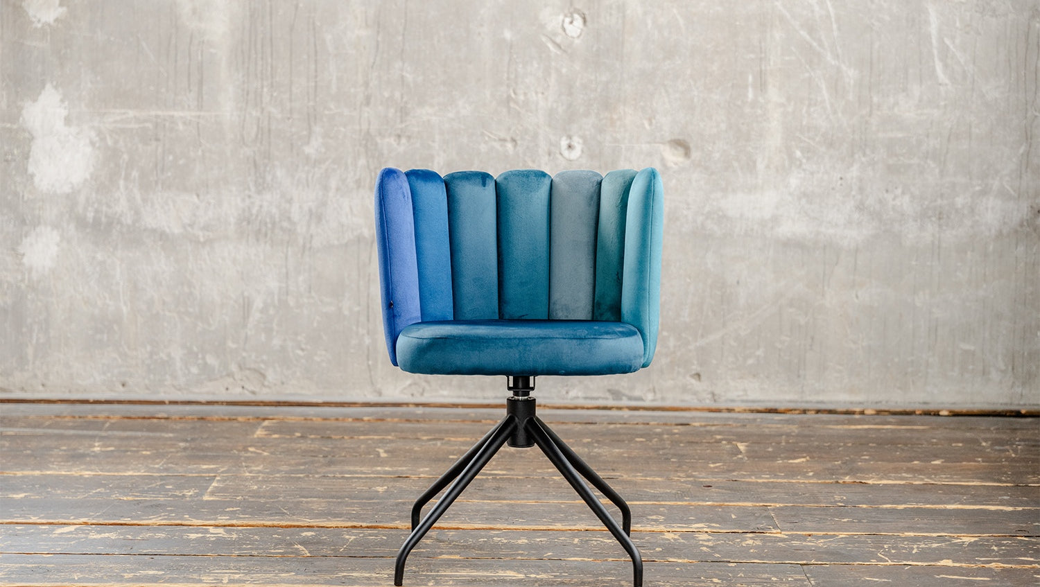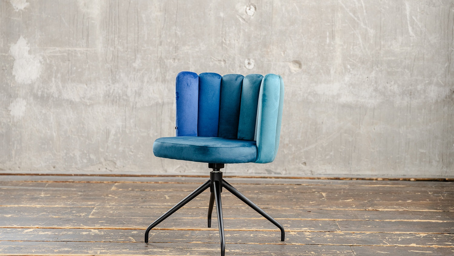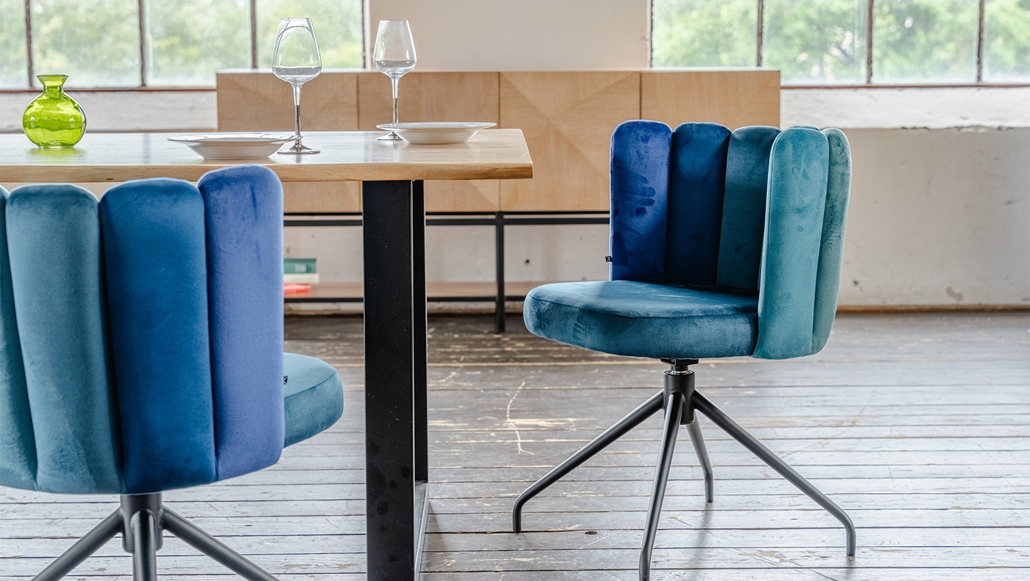 Silla de comedor KAWOLA Silla giratoria JADA Azul terciopelo