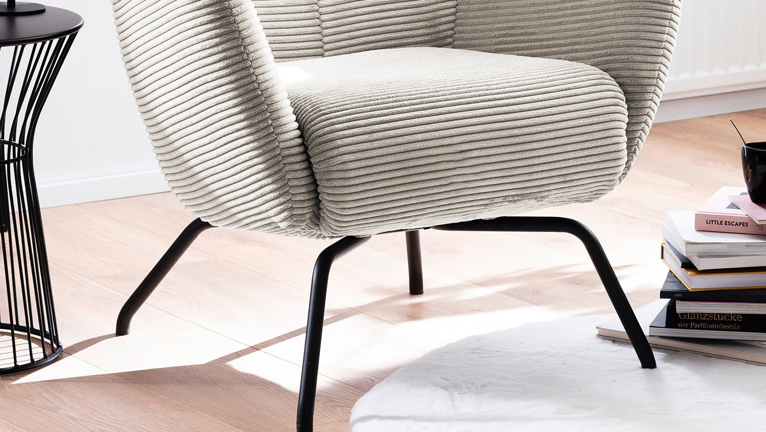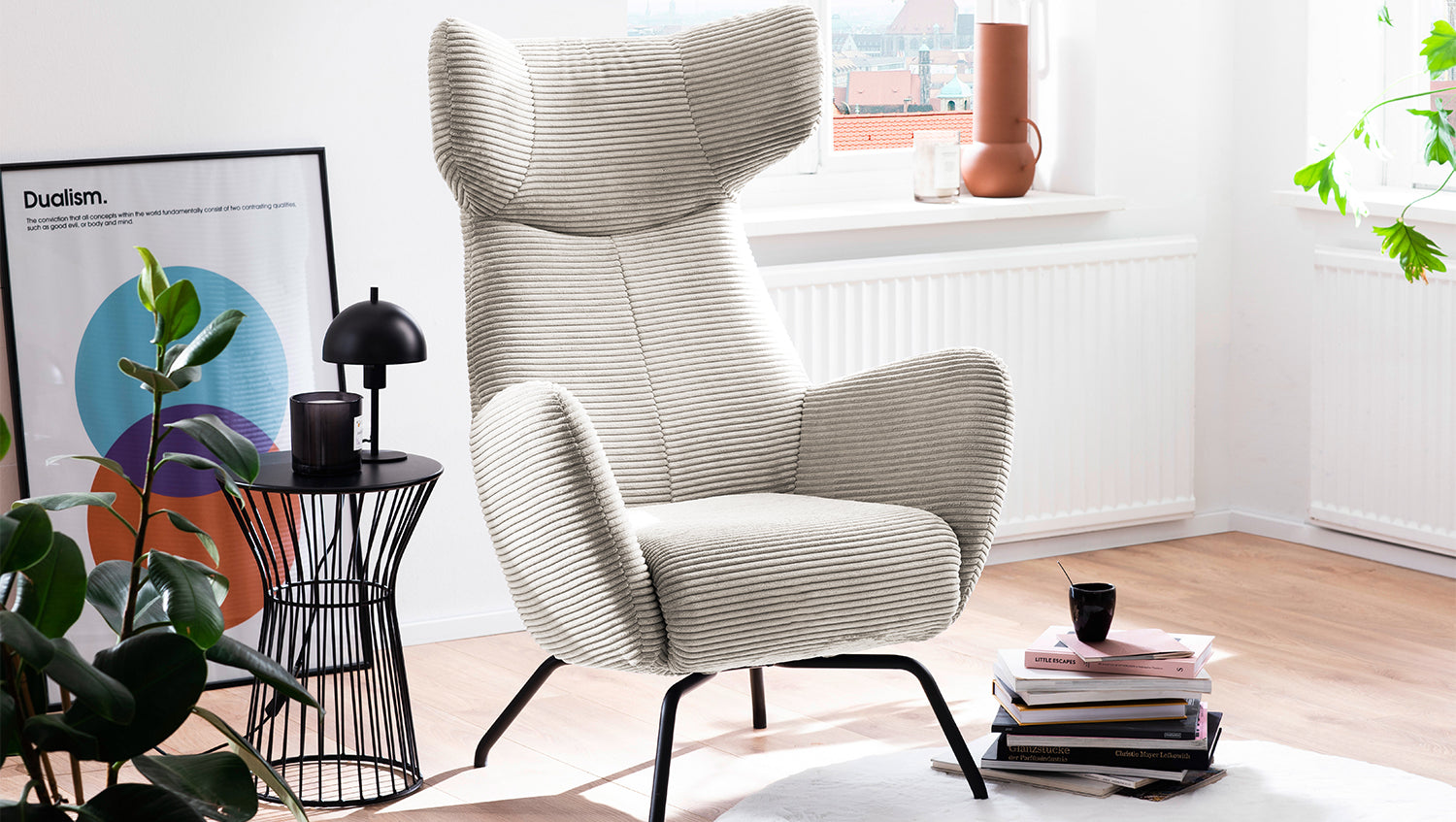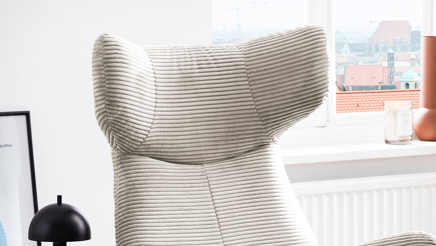 KAWOLA sillón LOTTE sillón de orejas pana crema blanco