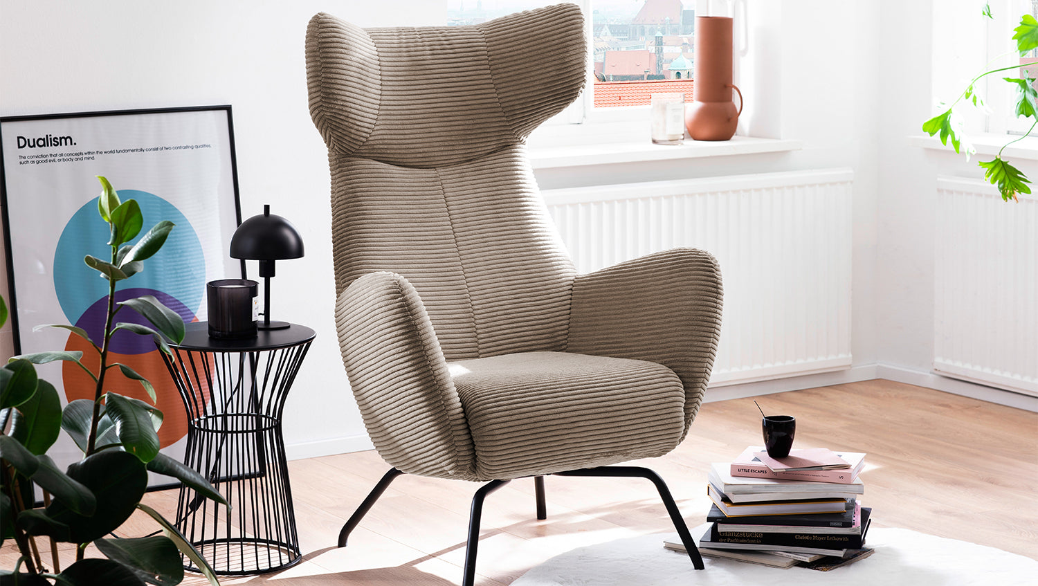 KAWOLA sillón LOTTE sillón de orejas pana topo
