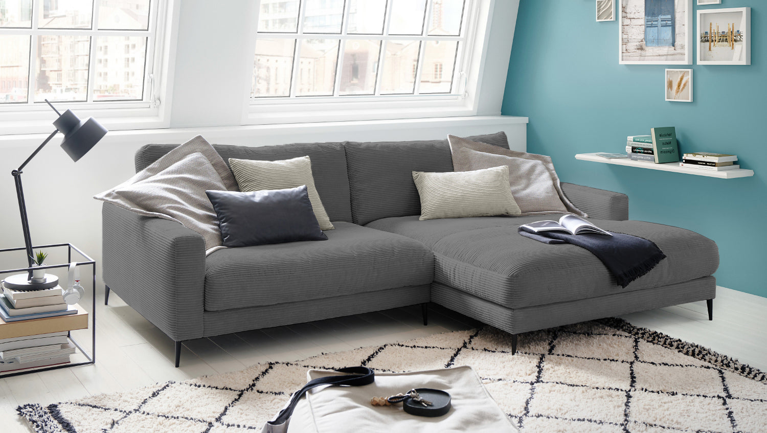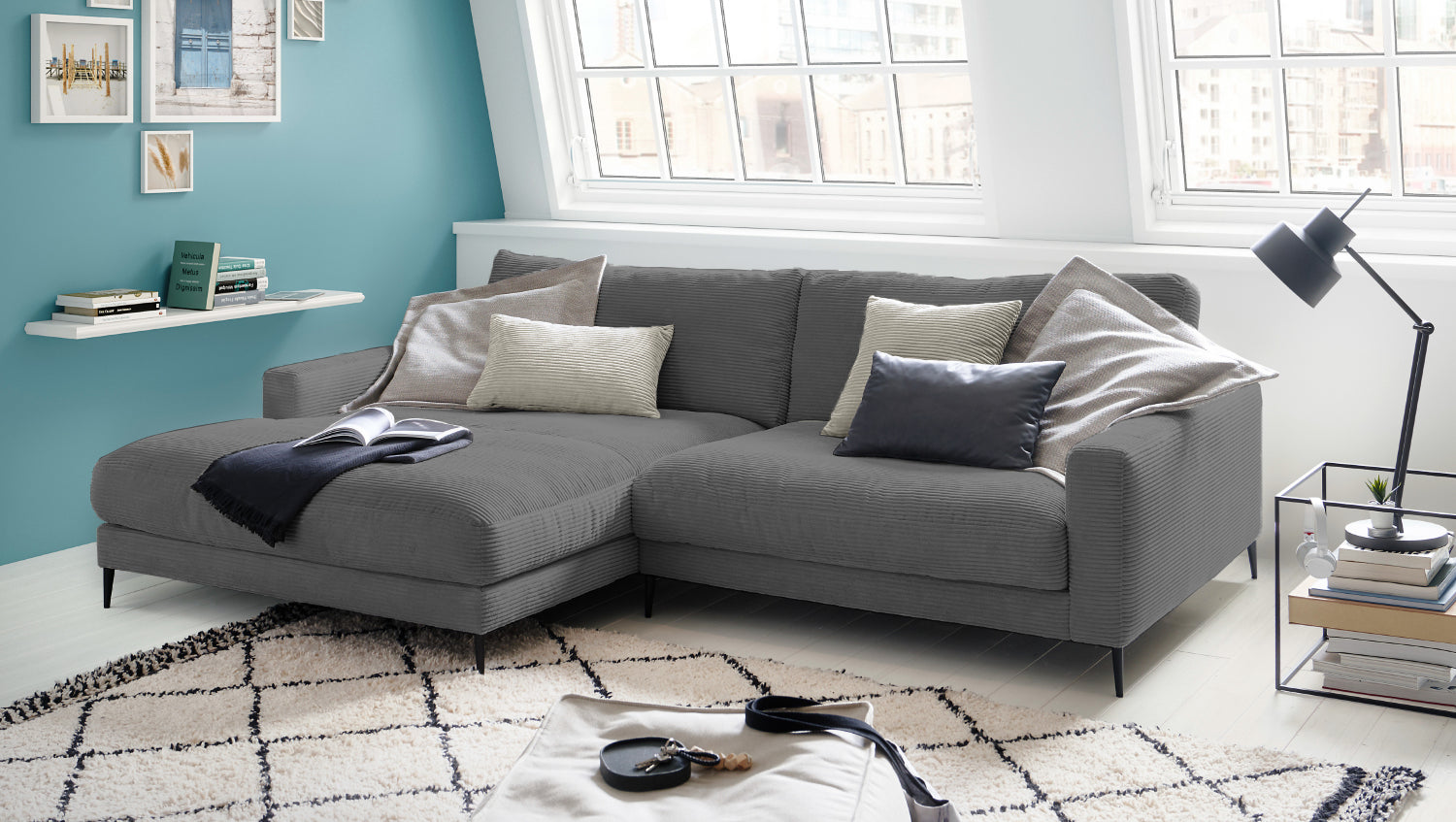 KAWOLA Sofá esquinero CARA Sofá Pana gris