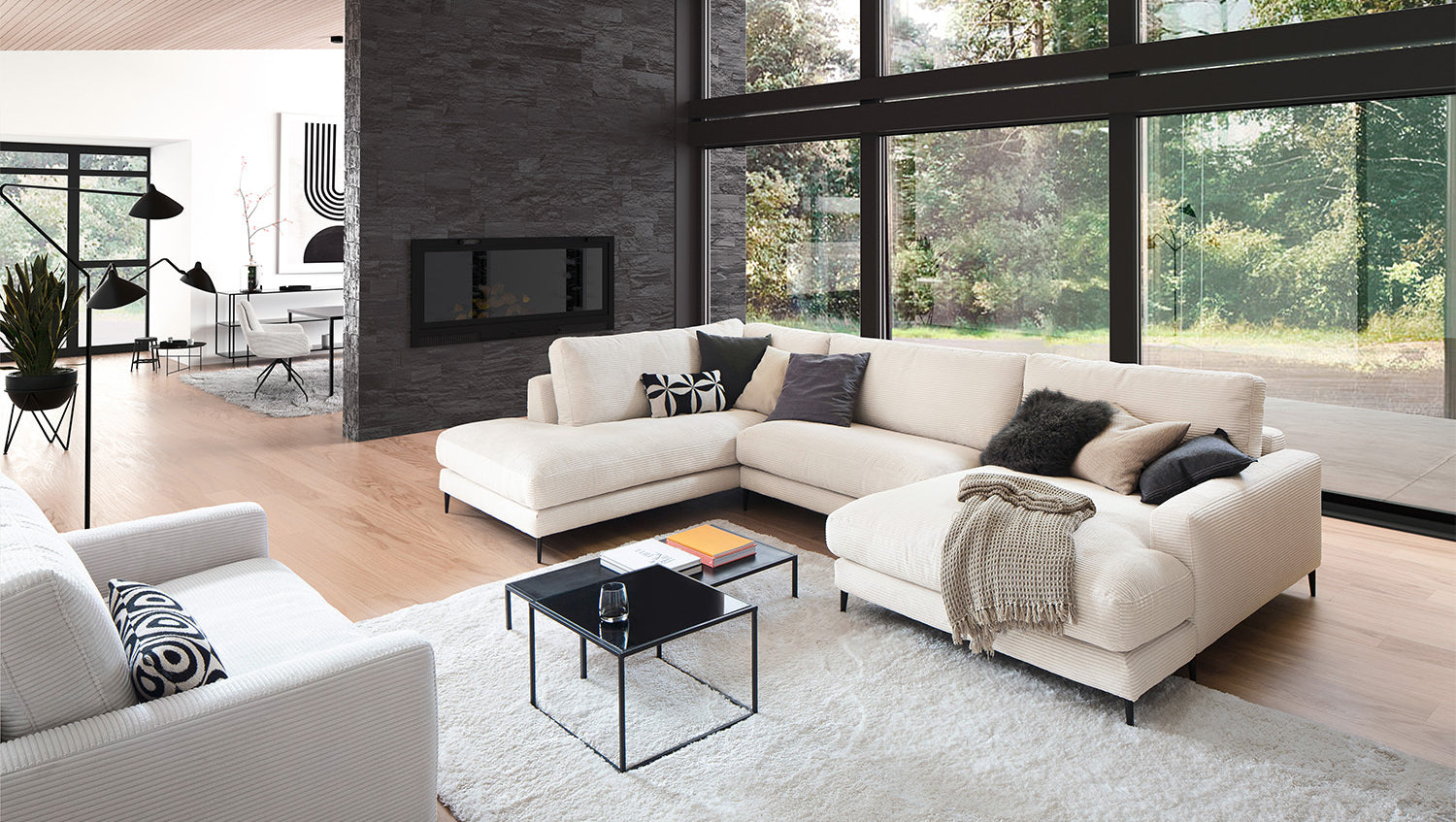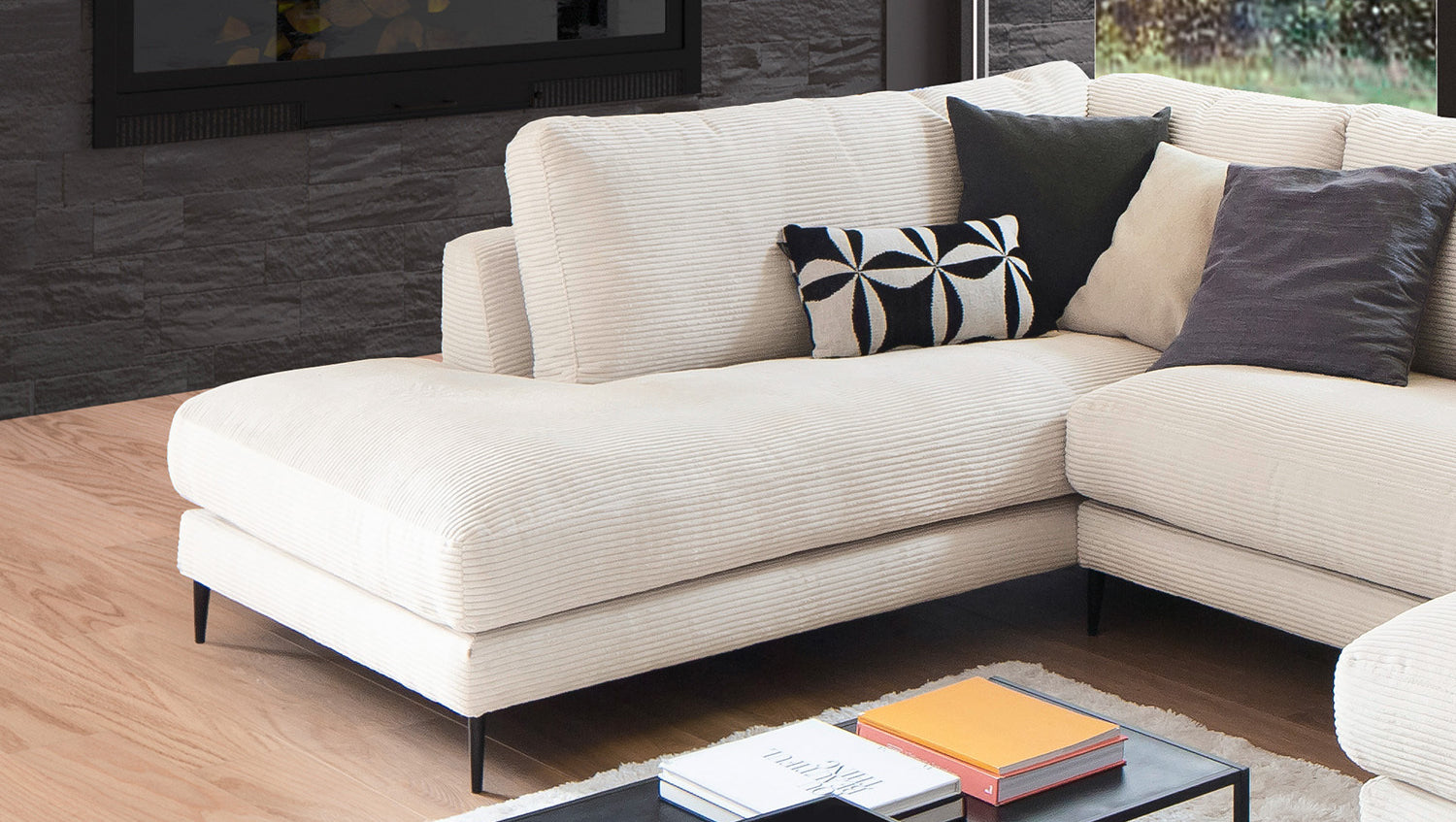 KAWOLA Sofá en forma de U CARA Pana blanco crema