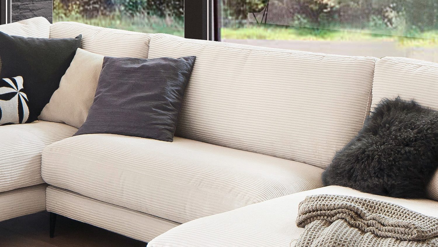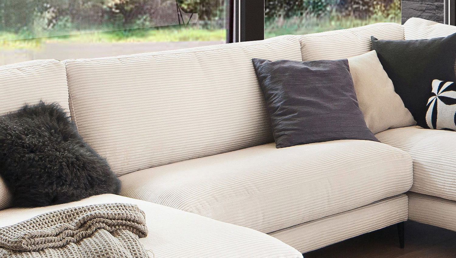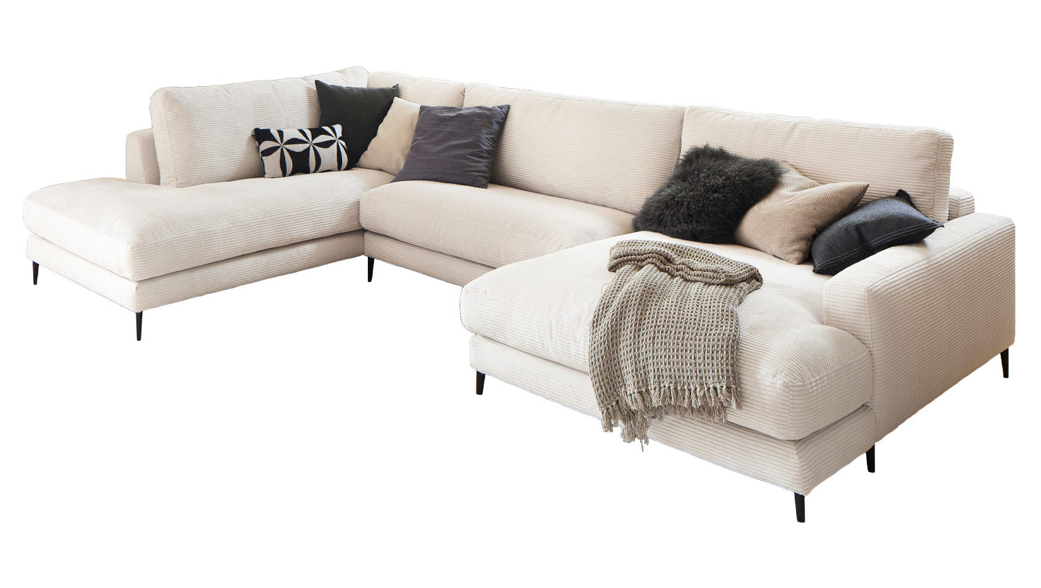 El Sofá en forma de U KAWOLA CARA combina el diseño clásico con la practicidad moderna y se integra a la perfección en cualquier interior. Sus formas suaves y la moderna funda de tela de pana confieren al sofá una elegancia atemporal. La compleja tapicería de 3 niveles garantiza la máxima comodidad de asiento y se adapta a la forma del cuerpo gracias a su estructura desenfadada. El sofá también está equipado con cojines de cámara de alta calidad. Para evitar que el material de relleno se comprima, estos cojines de respaldo deben sacudirse después de cada uso. Sea cual sea la ocasión, ¡todo el mundo encontrará un lugar para relajarse en el sofá CARA!