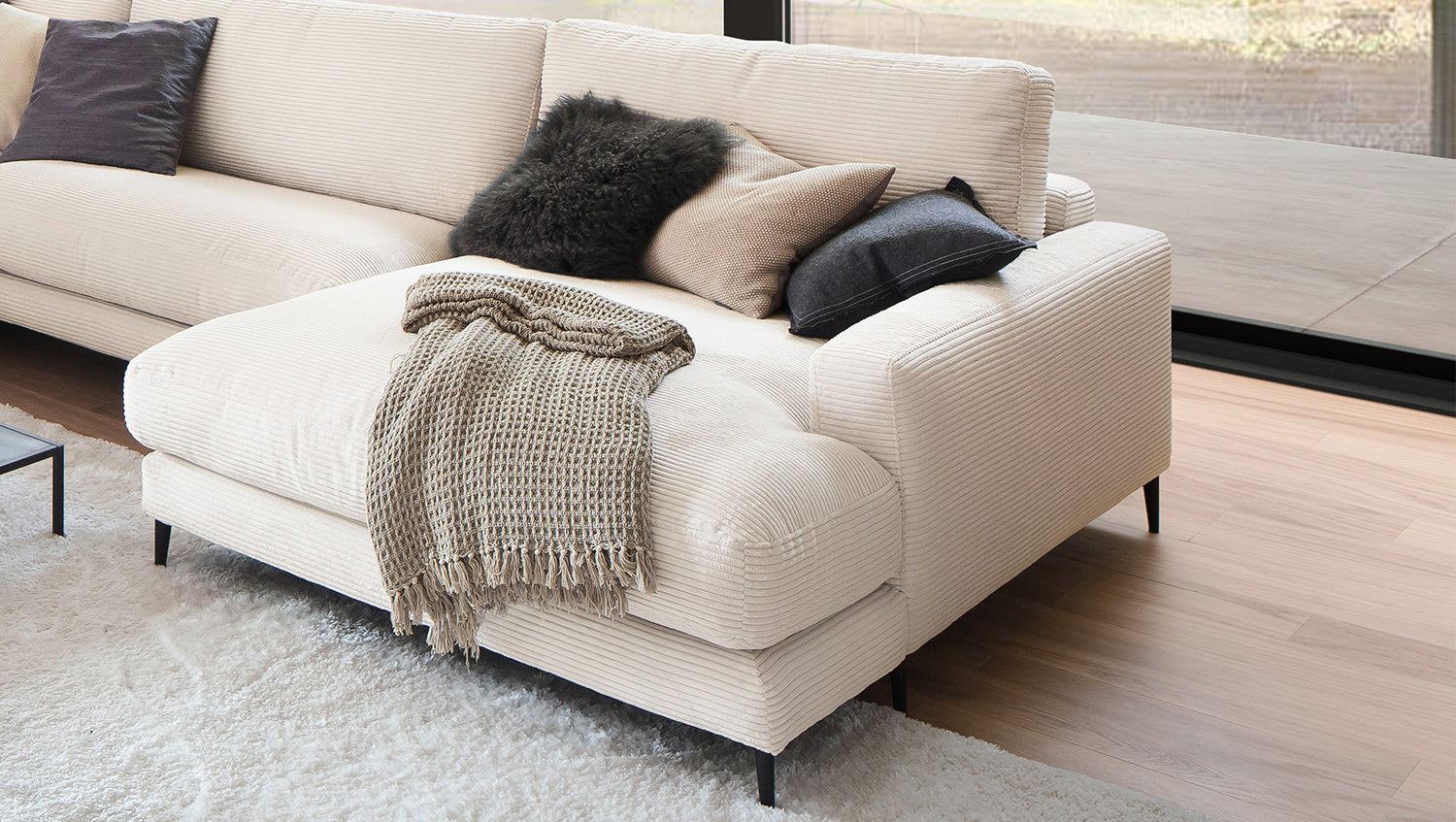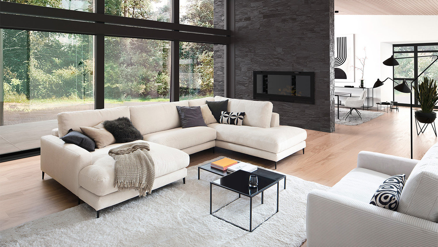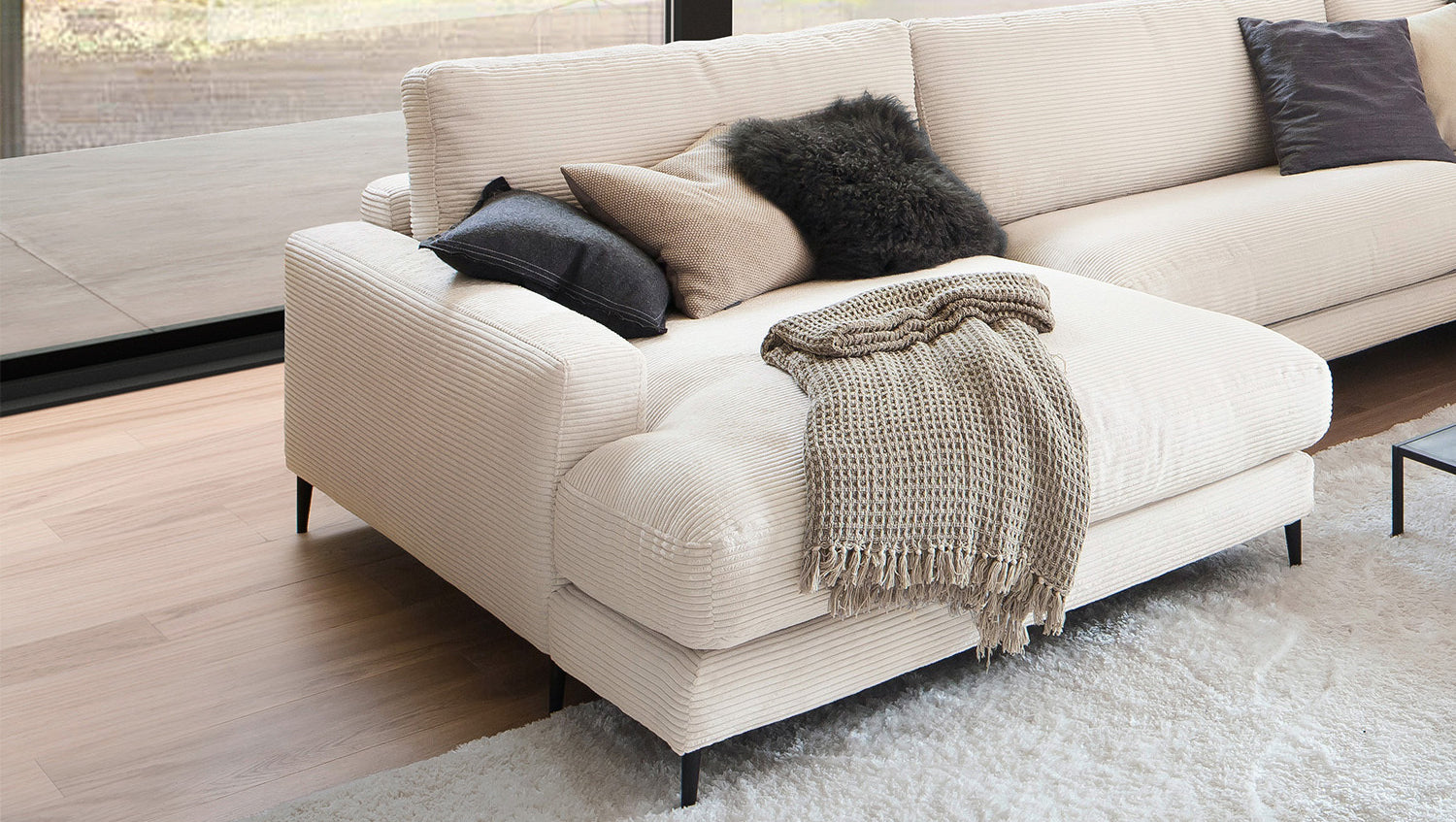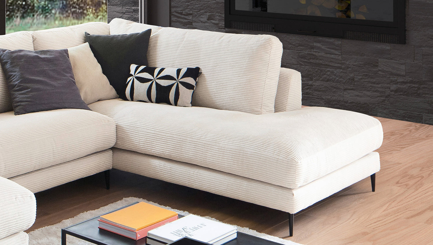 El Sofá en forma de U KAWOLA CARA combina el diseño clásico con la practicidad moderna y se integra a la perfección en cualquier interior. Sus formas suaves y la moderna funda de tela de pana confieren al sofá una elegancia atemporal. La compleja tapicería de 3 niveles garantiza la máxima comodidad de asiento y se adapta a la forma del cuerpo gracias a su estructura desenfadada. El sofá también está equipado con cojines de cámara de alta calidad. Para evitar que el material de relleno se comprima, estos cojines de respaldo deben sacudirse después de cada uso. Sea cual sea la ocasión, ¡todo el mundo encontrará un lugar para relajarse en el sofá CARA!