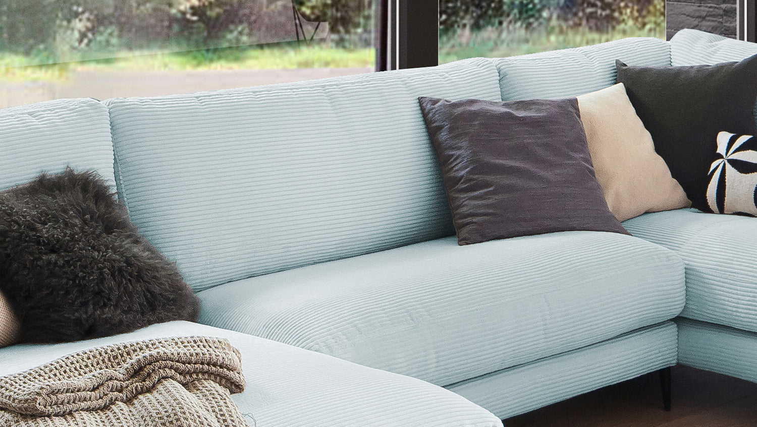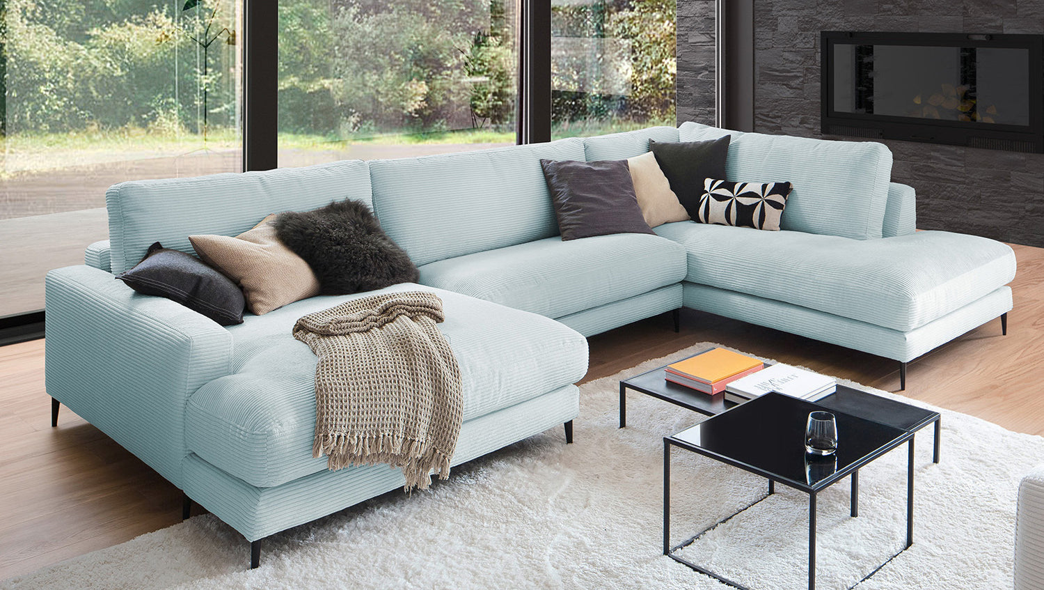 KAWOLA Sofá en forma de U CARA Pana azul claro