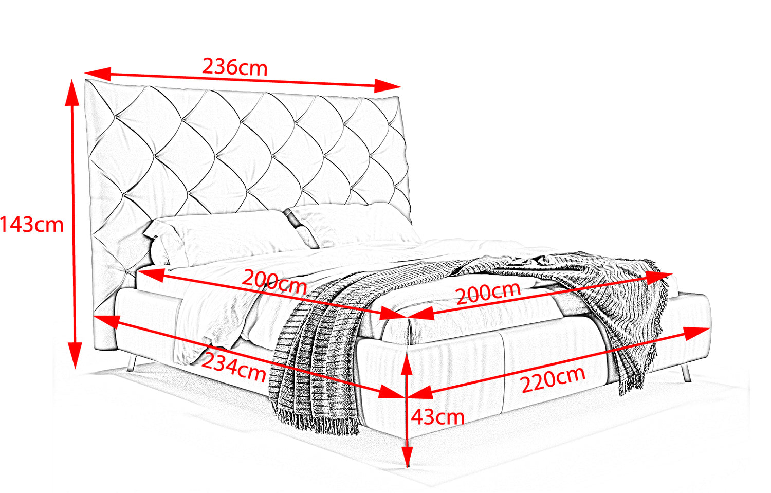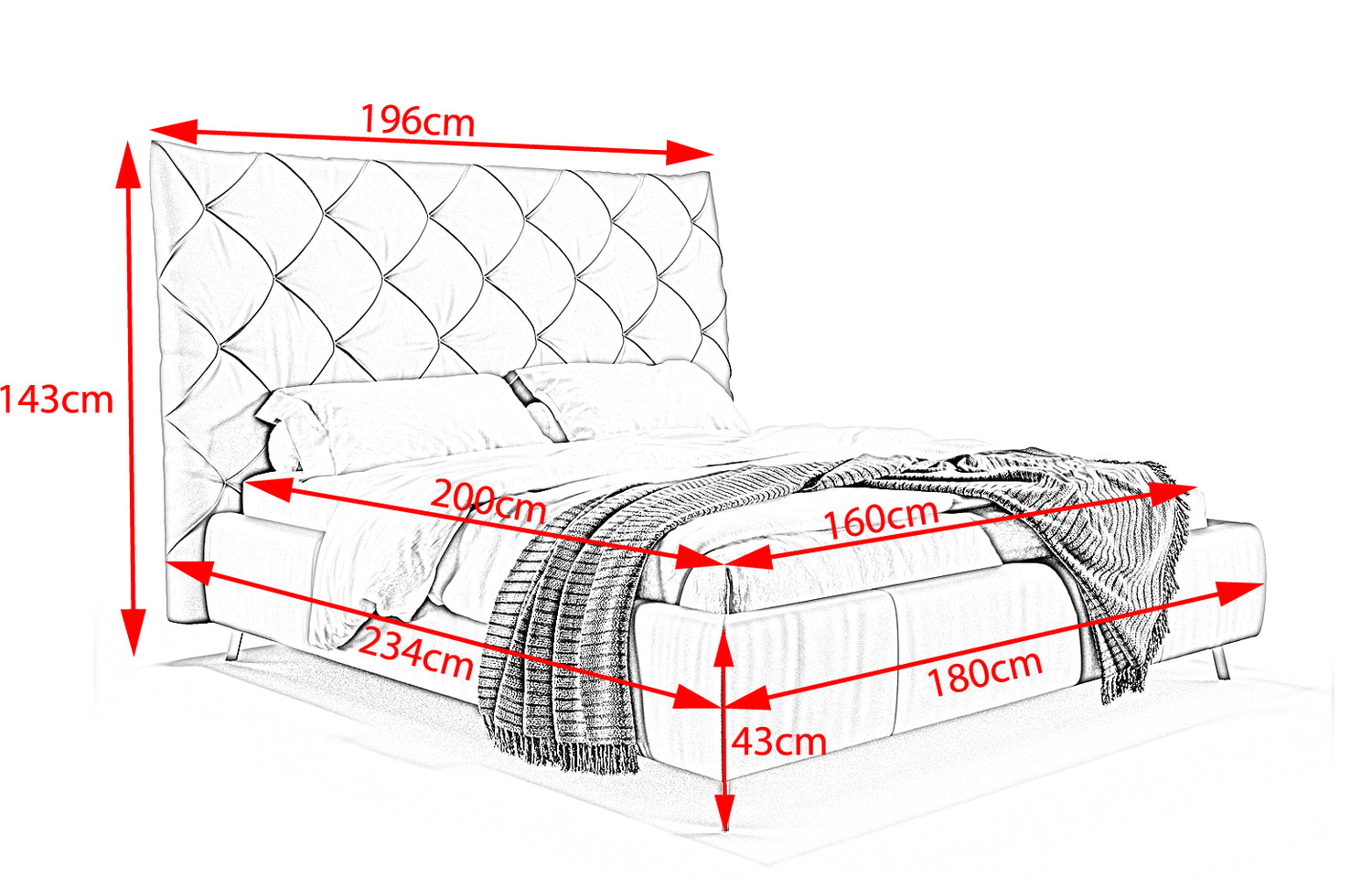 La cama tapizada KAWOLA ANNY es un verdadero acierto para cualquier dormitorio. El cabecero, el piecero y los paneles laterales están tapizados en tela de terciopelo de alta calidad. El clásico acolchado del cabecero confiere a la cama una elegancia atemporal. El cómodo acolchado garantiza la máxima comodidad al sentarse y leer. El armazón de la cama está fabricado en madera maciza y materiales derivados de la madera, y los pies de metal cromado de bonitas formas redondean a la perfección el elegante diseño. El mueble se integra perfectamente en cualquier interior y promete una estancia maravillosa en su acogedor hogar. ¡No querrás separarte de la cama tapizada ANNY!