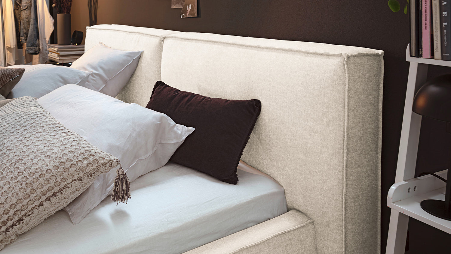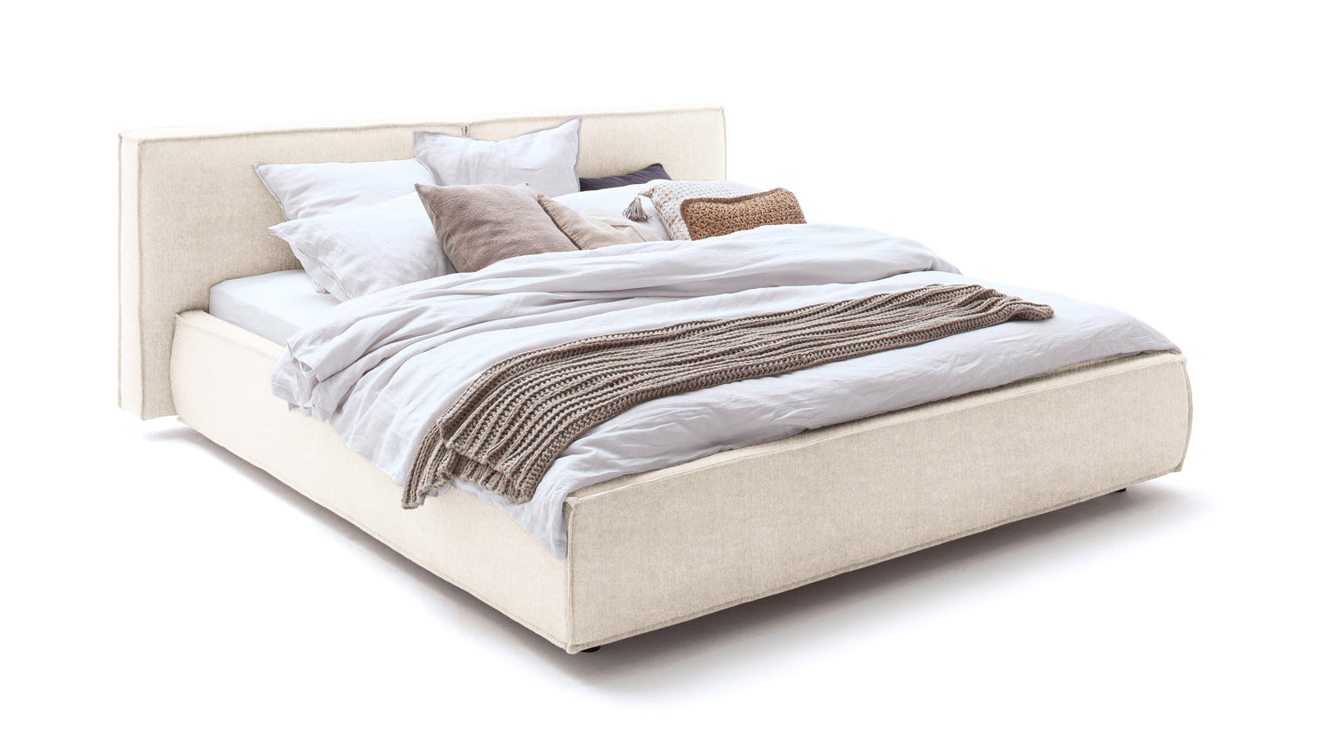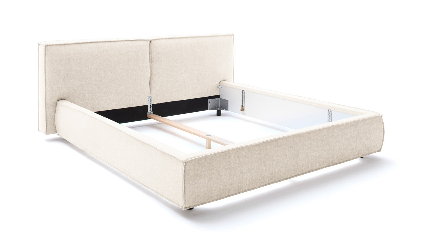 KAWOLA cama CARLO cama tapizada tela crema blanco