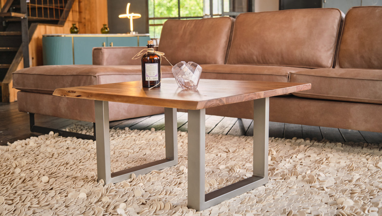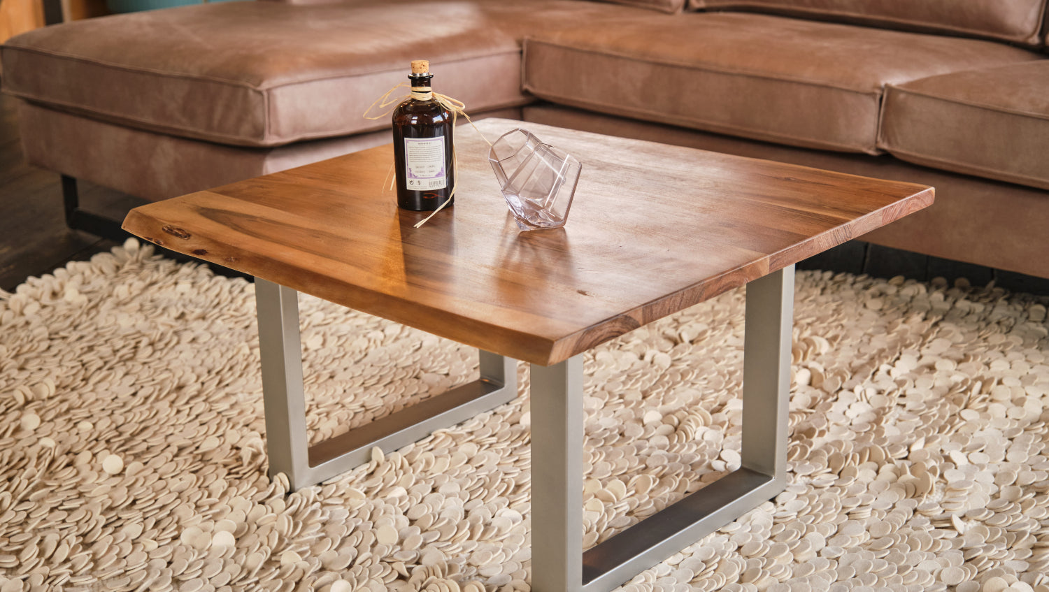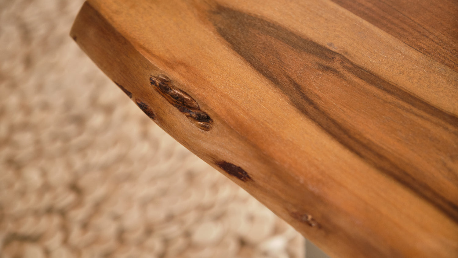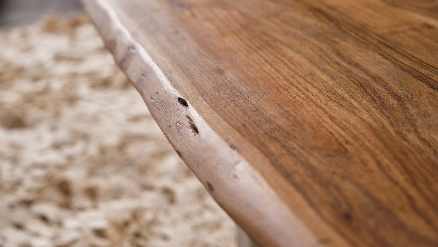 La mesa de centro KAWOLA LORE con tablero de madera maciza es un mueble muy especial. El tablero de madera maciza de acacia se ha teñido, barnizado y encerado. El borde de la mesa corresponde a la forma natural de un árbol y forma un contraste armonioso y de buen gusto con la moderna base de patín de metal. De este modo, la mesa auxiliar combina con ligereza lo tradicional con lo moderno. Esta combinación hace que la mesa auxiliar LORE se sienta como en casa en cualquier lugar y enriquece cualquier espacio vital de forma discreta y discreta. NOTA IMPORTANTE Esta mesa de borde de árbol es un producto natural. Esto hace que sea única, cada mesa es única. Las desviaciones dimensionales, nudos y grietas, así como pequeños desniveles son típicos del producto y no son motivo de reclamación. Las grietas existentes se rellenan con piezas del mismo tipo de madera durante la producción. Las diferencias de color resultantes tampoco son motivo de reclamación.