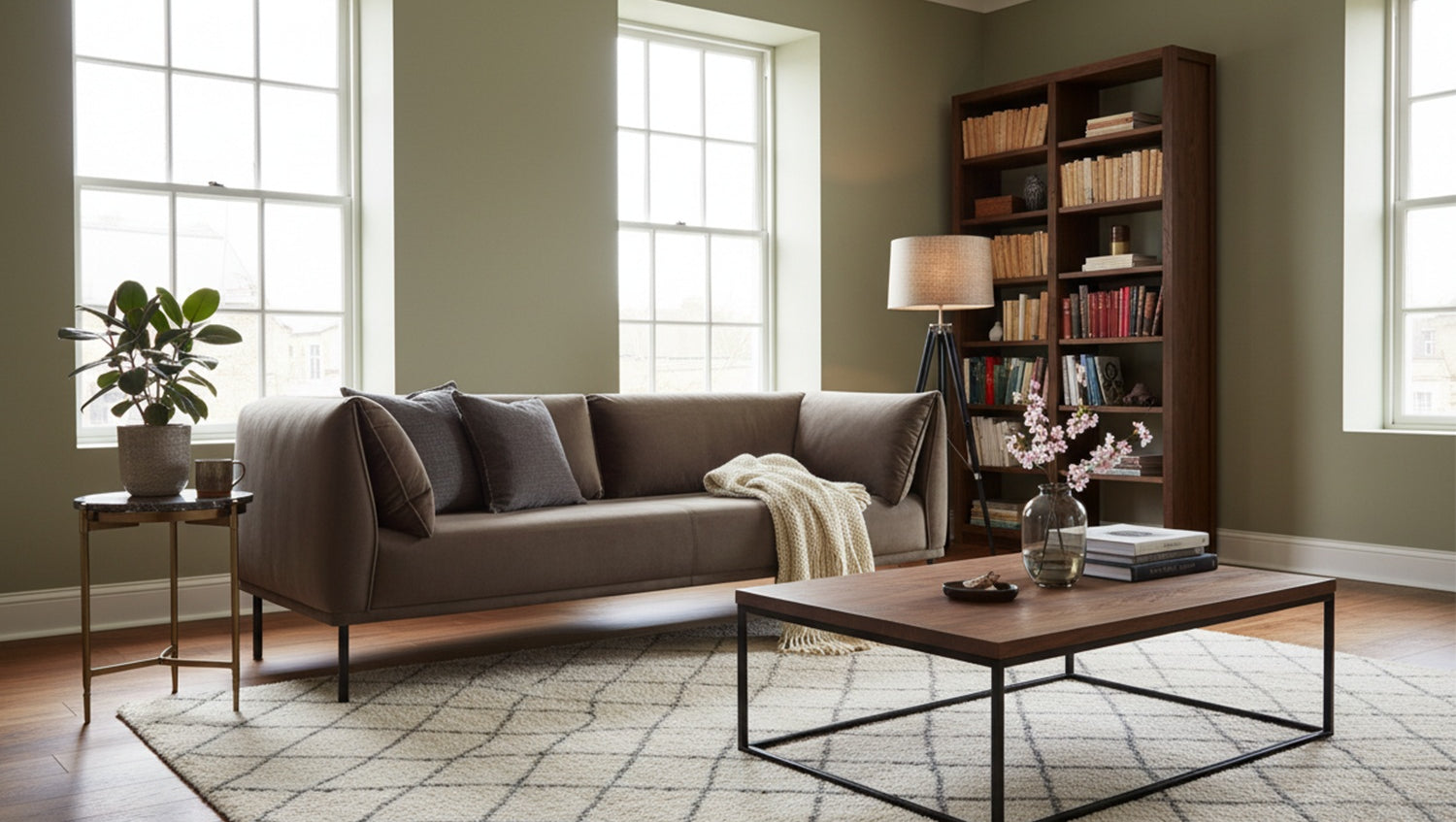 Sofá KAWOLA SOFA CARRY de tela de 3 plazas, tela verde oliva, 226 x 76 x 89 cm de ancho x alto y profundidad