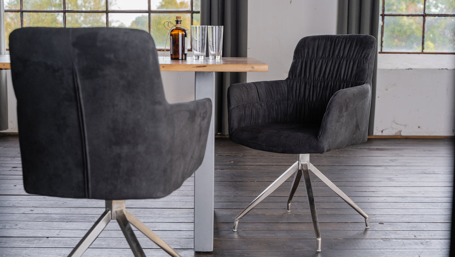 Estas sillas son productos B procedentes de devoluciones de clientes, que presentan ciertos defectos menores y por ello las ofrecemos a un precio reducido. Los posibles defectos son: Arañazos en el armazón, marcas de presión, ligera suciedad y desviaciones de color en la tapicería, así como desgarros en la tela de los bajos. Observe las imágenes de ejemplo que aparecen después de la imagen principal. La silla NIXIE de KAWOLA convence por sus excelentes materiales y su extraordinario diseño. La combinación del tejido de alta calidad de la carcasa del asiento y los elegantes pies metálicos crean un conjunto de gran estilo. La silla tiene función giratoria y, por lo tanto, también es ideal como silla de conferencias. Destaca especialmente el respaldo de la carcasa del asiento, que llama la atención por sus juguetones volantes. La forma y el acolchado de la silla garantizan un agradable confort al sentarse. La silla NIXIE combina un diseño moderno con funcionalidad.
