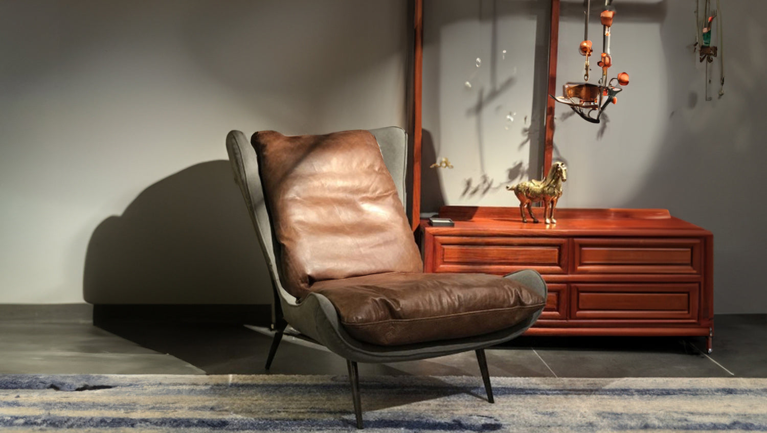 El sillón ERIO es el complemento perfecto para cualquier sala de estar o de espera. El cojín del asiento está tapizado en cuero vintage de alta calidad en color marrón, y el respaldo de la carcasa del asiento, revestido de tela, ofrece un bonito contraste. El armazón es de filigrana y está hecho de metal. La mezcla de estos diferentes materiales completa el especial aspecto industrial del mueble asiento. Gracias a la ausencia de reposabrazos, el sillón puede integrarse maravillosamente en su interior sin correr el riesgo de que su mobiliario resulte demasiado voluminoso. La forma del sillón también le ofrece la oportunidad de encontrarse en diferentes posturas sobre él El cuero Vintage es muy cálido y suave al tacto, y además es totalmente transpirable. Los poros abiertos también permiten que la temperatura se iguale al tocar el cuero, por lo que resulta agradable y cálido. La aplicación de una capa de cera o de un acabado de efecto llamado confiere al cuero un aspecto antiguo. Las diferencias de color y las características naturales visibles, como picaduras de mosquito y cicatrices, muestran la autenticidad de la piel, que desarrolla su carácter individual con el uso gracias a sus poros abiertos.