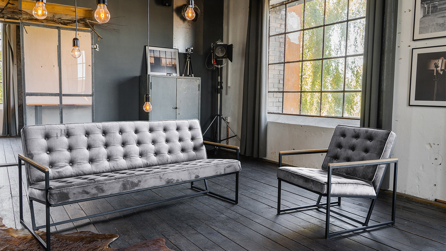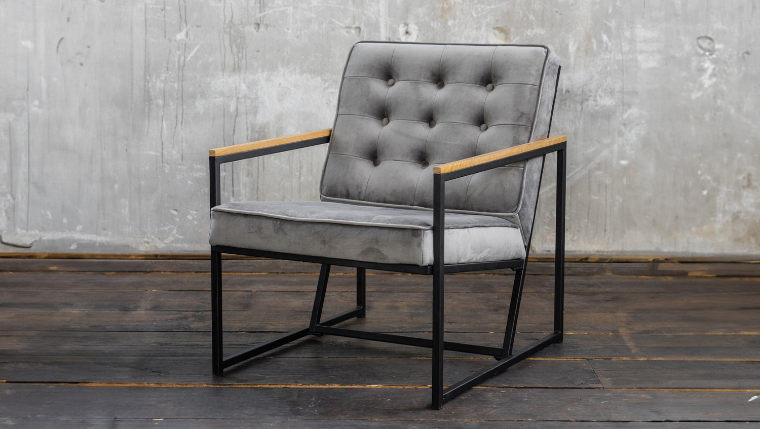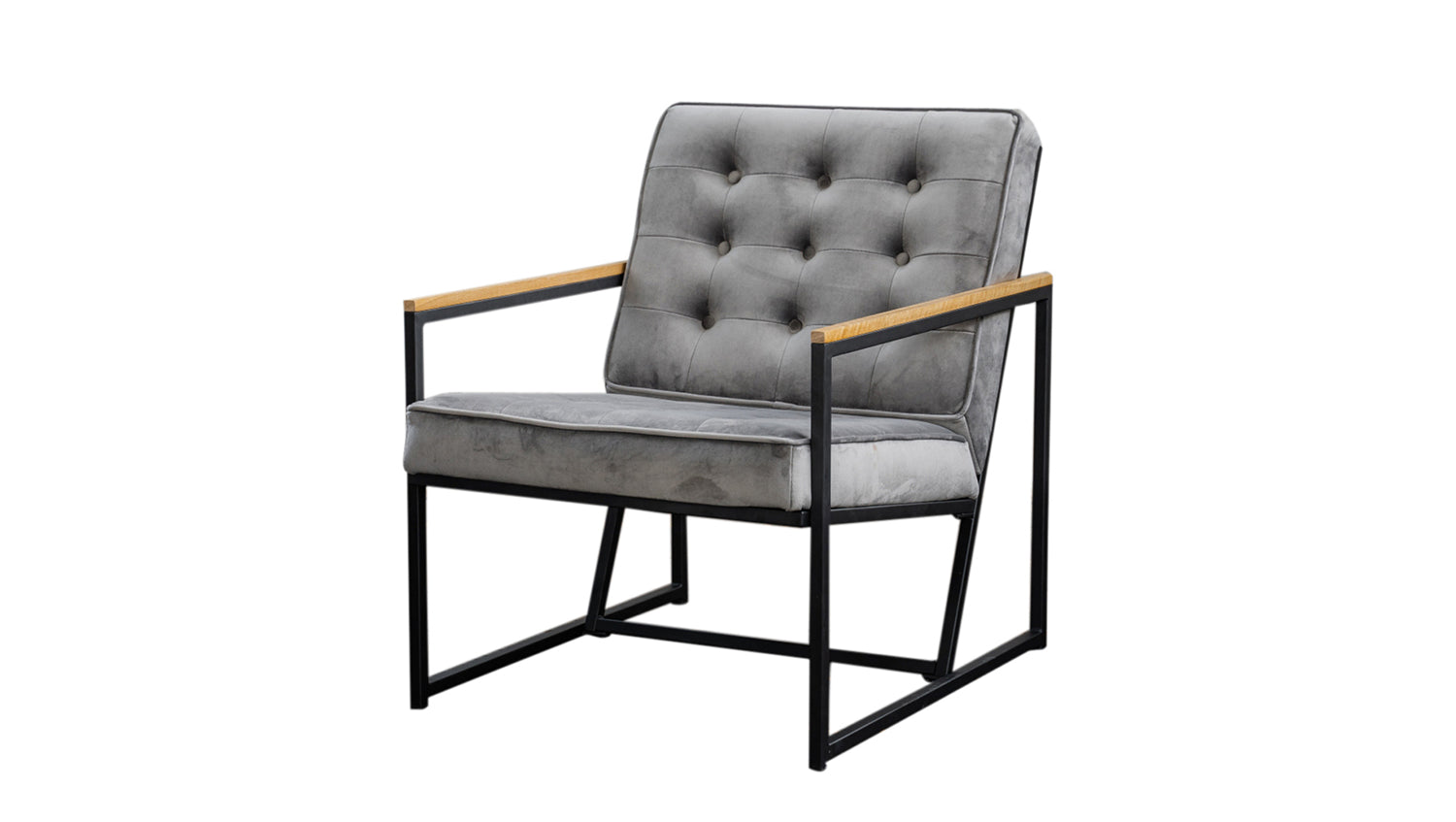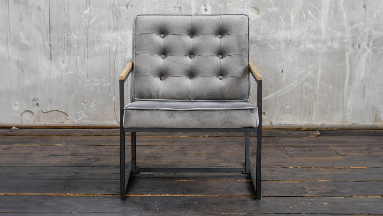 Sillón tapizado KAWOLA ARLY con funda de terciopelo gris