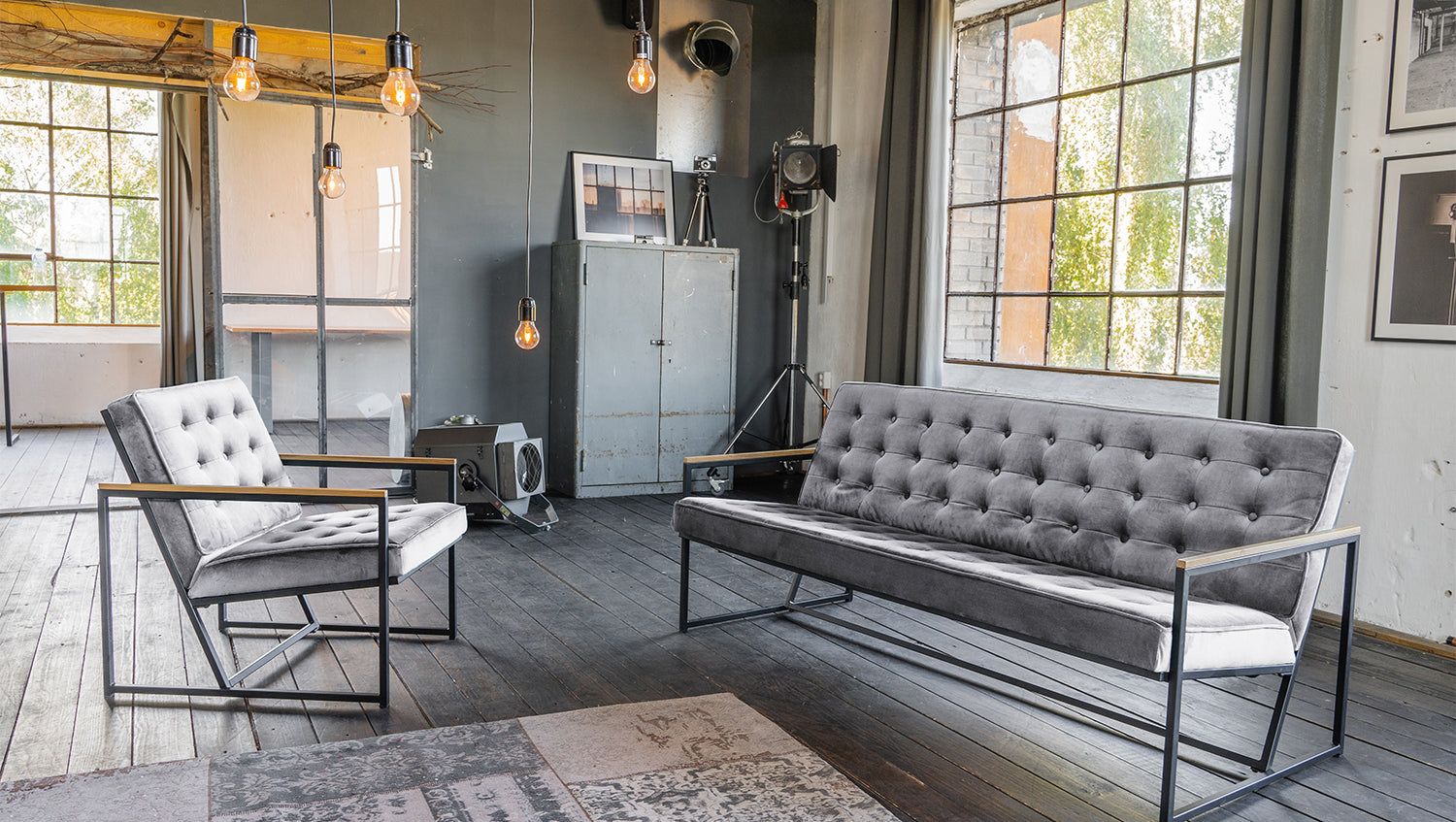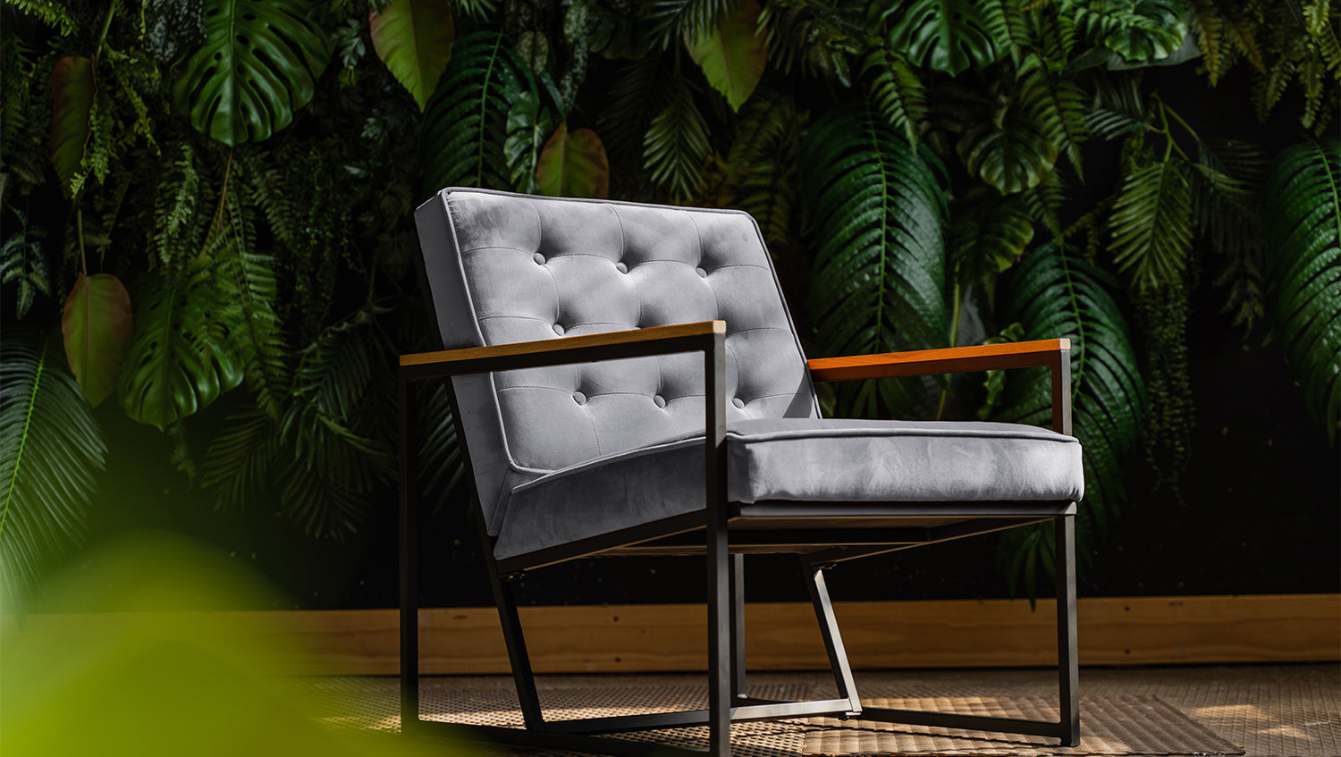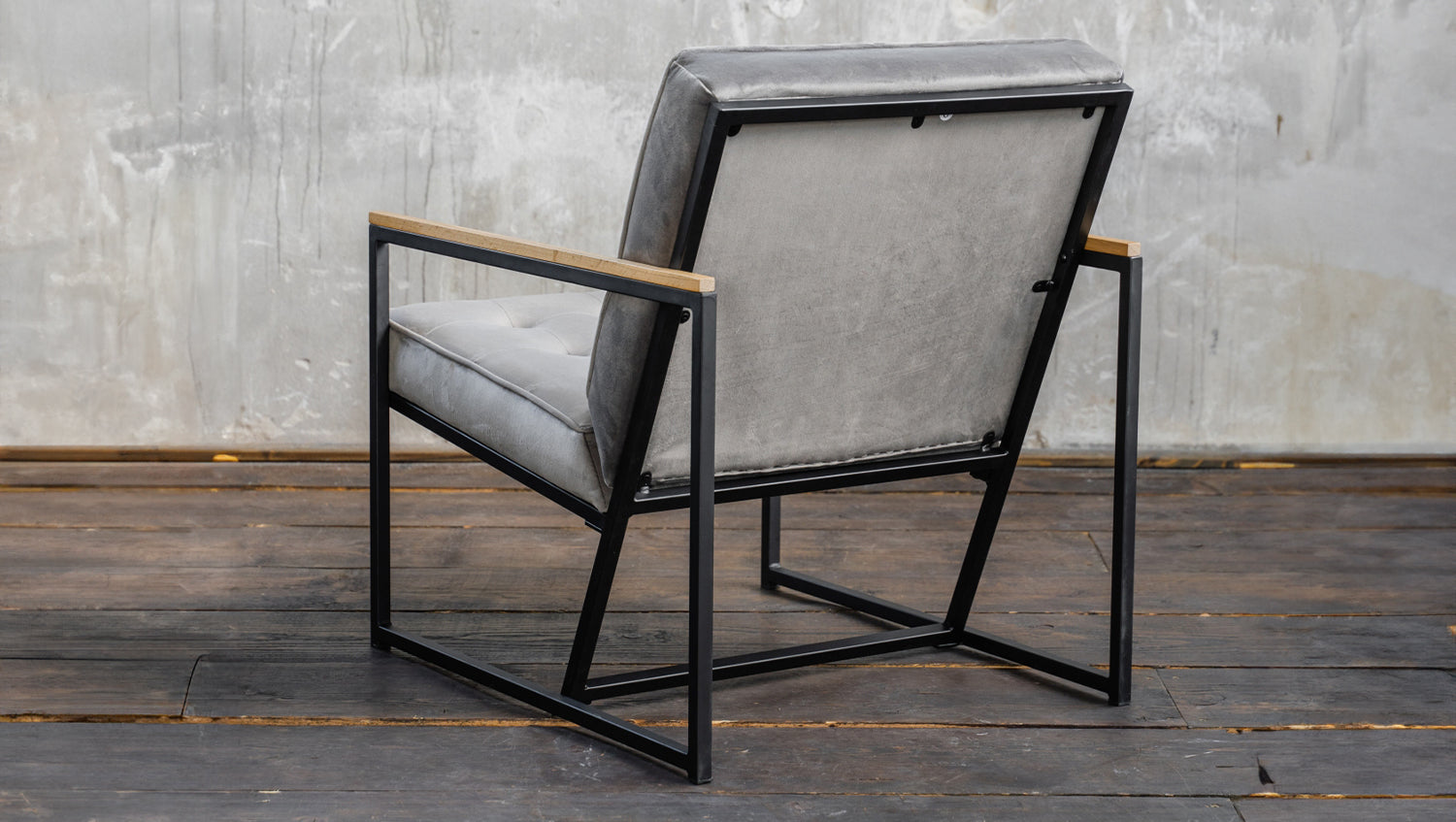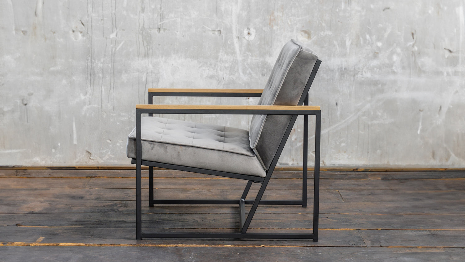 Sillón tapizado KAWOLA ARLY con funda de terciopelo gris