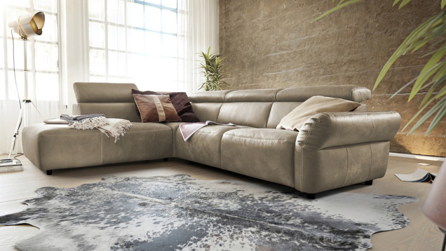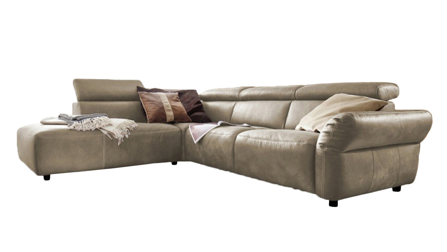 KAWOLA Sofá RISO Sofá esquinero con ajuste motorizado de la profundidad del asiento cuero gris