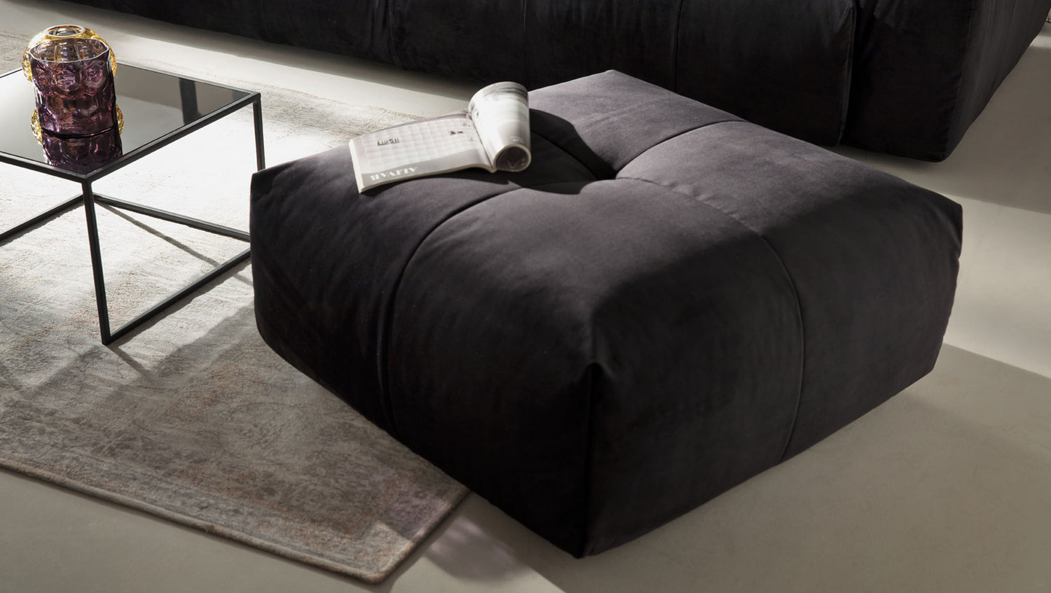 KAWOLA PALACE Puf taburete tapizado terciopelo negro