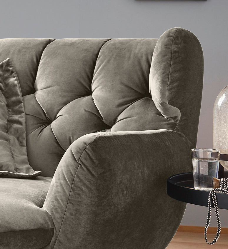 El Longseat CHARME de KAWOLA es un sofá reclinable muy especial y es una verdadera pieza de diseño que pone nuevos acentos en el salón. El estilo del Longseat CHARME recuerda a los años 60: el respaldo está elaboradamente acolchado sin botones; el respaldo está ligeramente curvado hacia delante en ambos lados y recuerda la forma de un sillón de ala; las patas de metal cromado están ligeramente acampanadas.