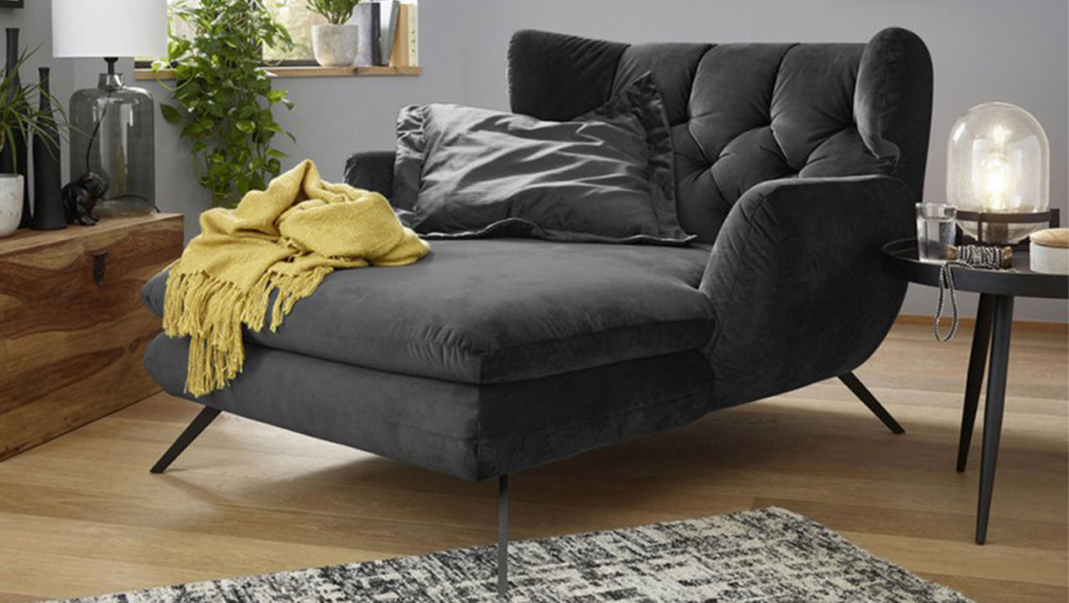 El Longseat CHARME de KAWOLA es un sofá reclinable muy especial y es una auténtica pieza de diseño que pone nuevos acentos en el salón. El estilo del Longseat CHARME recuerda a los años 60: el respaldo está elaboradamente acolchado sin botones; el respaldo está ligeramente curvado hacia delante en ambos lados y recuerda la forma de un sillón de ala; las patas de metal cromado están ligeramente acampanadas.
