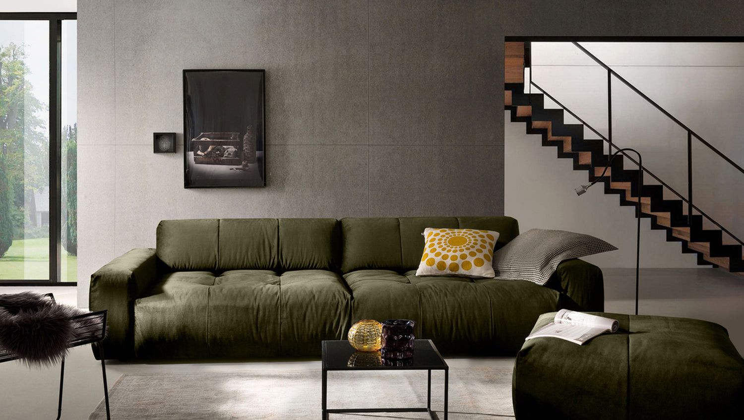 El sofá PALACE impresiona por su elegancia atemporal, su diseño moderno y su confort especialmente elevado. La elegante funda de terciopelo cubre la acogedora superficie reclinable, cuyo desenfadado tapizado invita a relajarse y descansar. El extra especial: el sofá PALACE puede transformarse de un Sofá extra ancho en un asiento clásico en un abrir y cerrar de ojos. Gracias a la regulación de la profundidad del asiento, que se consigue ajustando el respaldo, la profundidad del asiento puede reducirse de 83 cm a 59 cm. Esto le permite decidir si prefiere una posición sentada más erguida o si prefiere tener espacio para estirarse. Nota: Cuando son nuevas, las fundas muestran un pronunciado patrón ondulado, que es intencionado debido al diseño, el modelo y la construcción. La tapicería se adaptará a la forma del cuerpo y la firmeza del asiento disminuirá ligeramente. Las ligeras diferencias en la firmeza del asiento de los grupos complementarios se deben al diseño y, por tanto, no son motivo de queja.