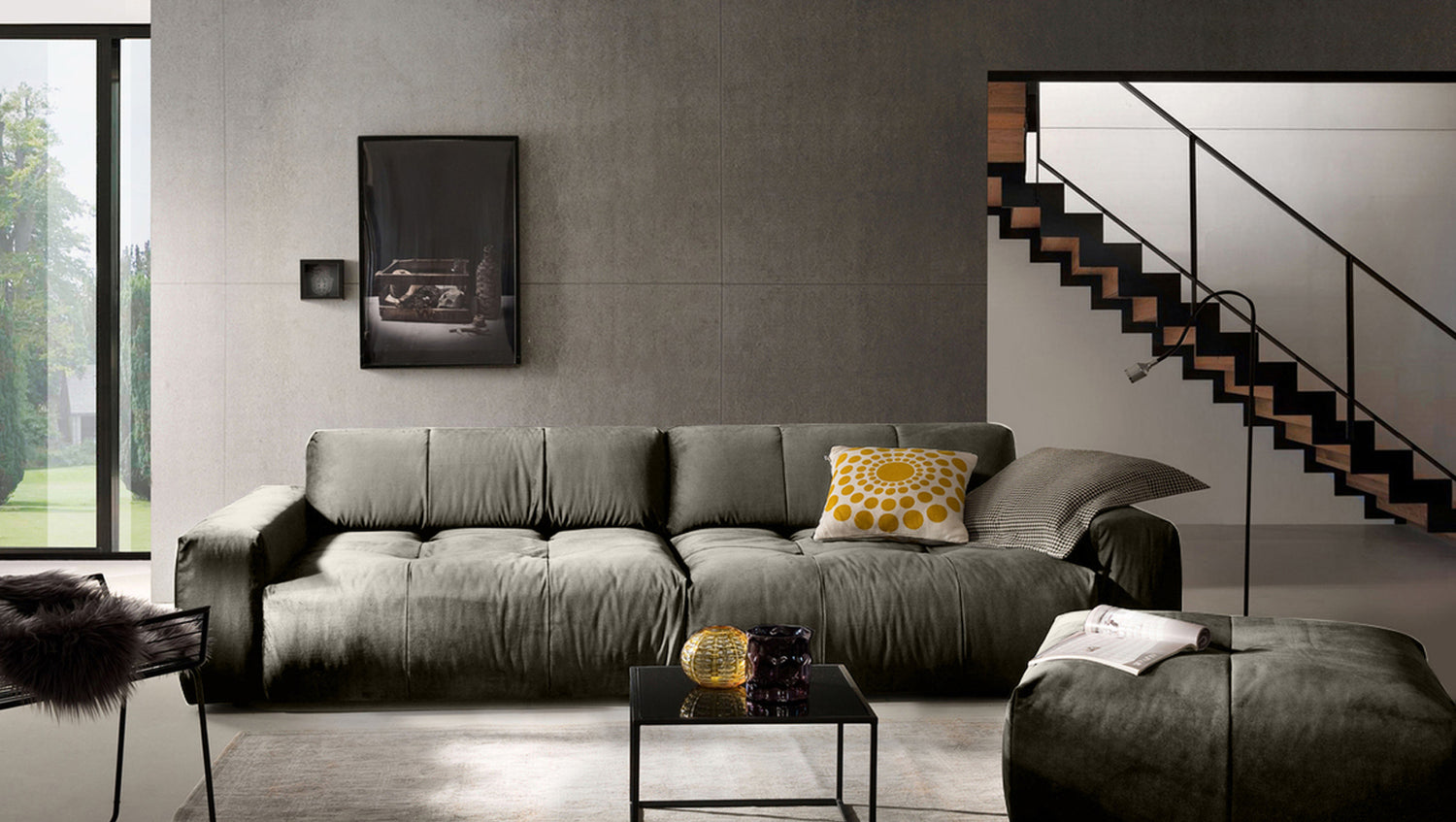 El sofá PALACE impresiona por su elegancia atemporal, su diseño moderno y su confort especialmente elevado. La elegante funda de terciopelo cubre la acogedora superficie reclinable, cuyo desenfadado tapizado invita a relajarse y descansar. El extra especial: el sofá PALACE puede transformarse de un Sofá extra ancho en un asiento clásico en un abrir y cerrar de ojos. Gracias a la regulación de la profundidad del asiento, que se consigue ajustando el respaldo, la profundidad del asiento puede reducirse de 83 cm a 59 cm. Esto le permite decidir si prefiere una posición sentada más erguida o si prefiere tener espacio para estirarse. Nota: Cuando son nuevas, las fundas muestran un pronunciado patrón ondulado, que es intencionado debido al diseño, el modelo y la construcción. La tapicería se adaptará a la forma del cuerpo y la firmeza del asiento disminuirá ligeramente. Las ligeras diferencias en la firmeza del asiento de los grupos complementarios se deben al diseño y, por tanto, no son motivo de queja.