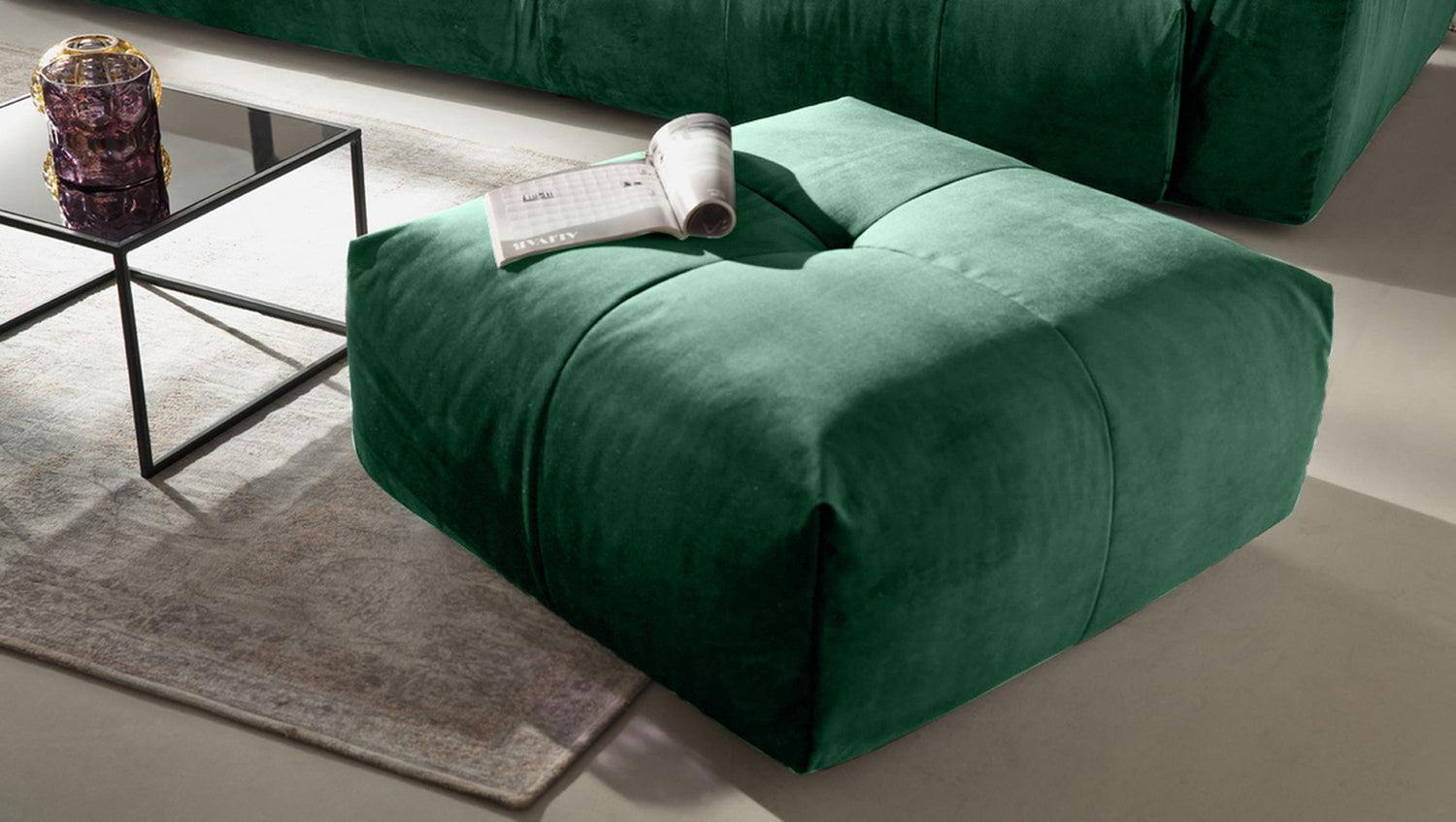 KAWOLA PALACE Puf taburete tapizado terciopelo esmeralda