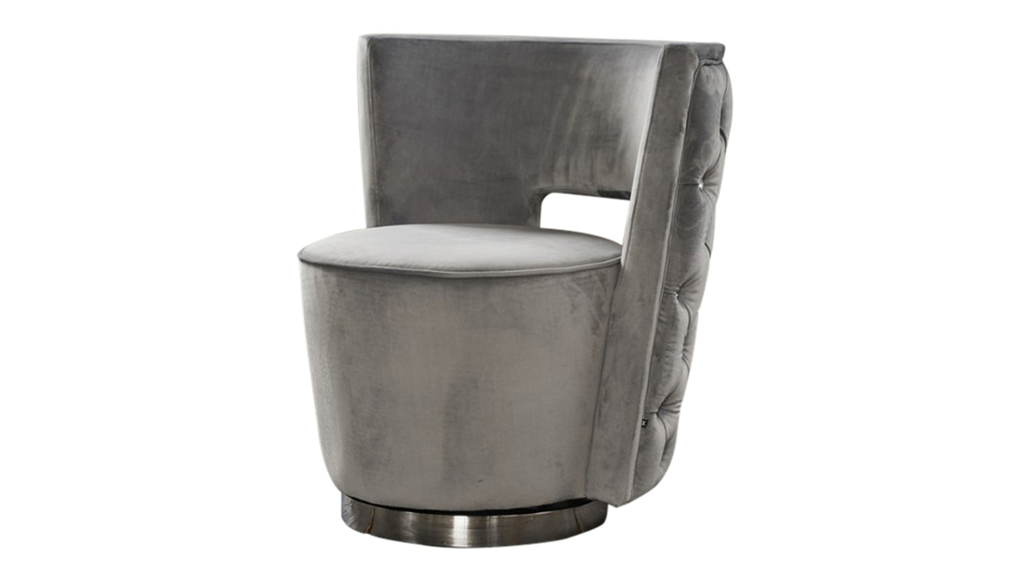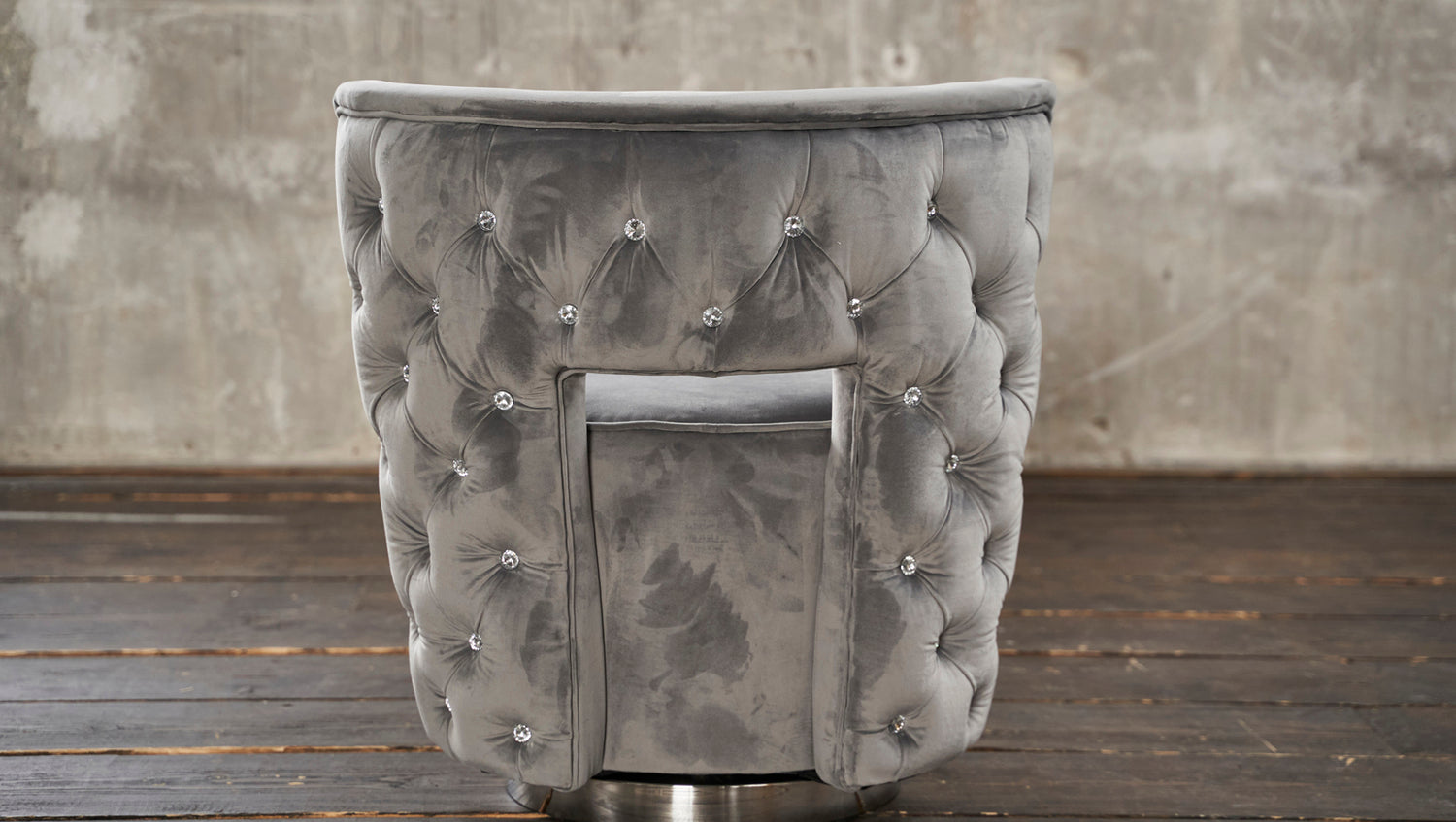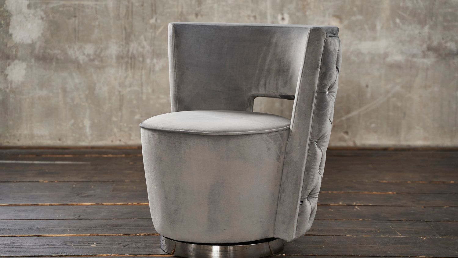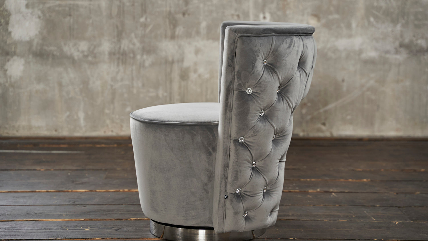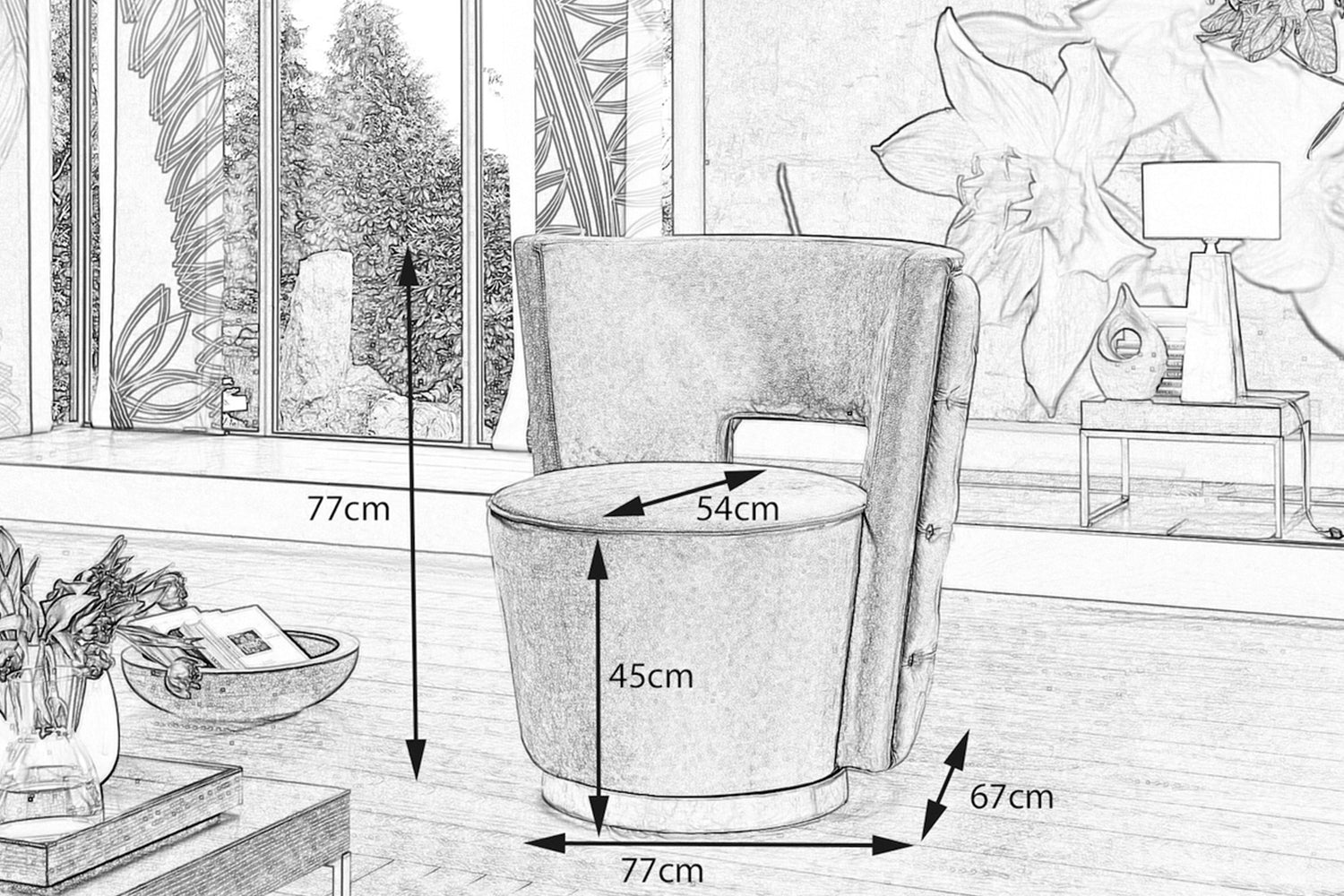 El sillón giratorio de tela SENSO de KAWOLA combina lo lúdico con un diseño único. Déjese conquistar por la suavidad de la tela y la agradable elección de colores. Su pieza de joyería tiene en el respaldo botones en forma de cristales. El sillón giratorio SENSO de KAWOLA atrae a sus sentidos: - Sentir: Convénzase de la suavidad del tejido de terciopelo - Vea: El pequeño sillón se adapta a cualquier rincón de su hogar gracias a su tamaño.