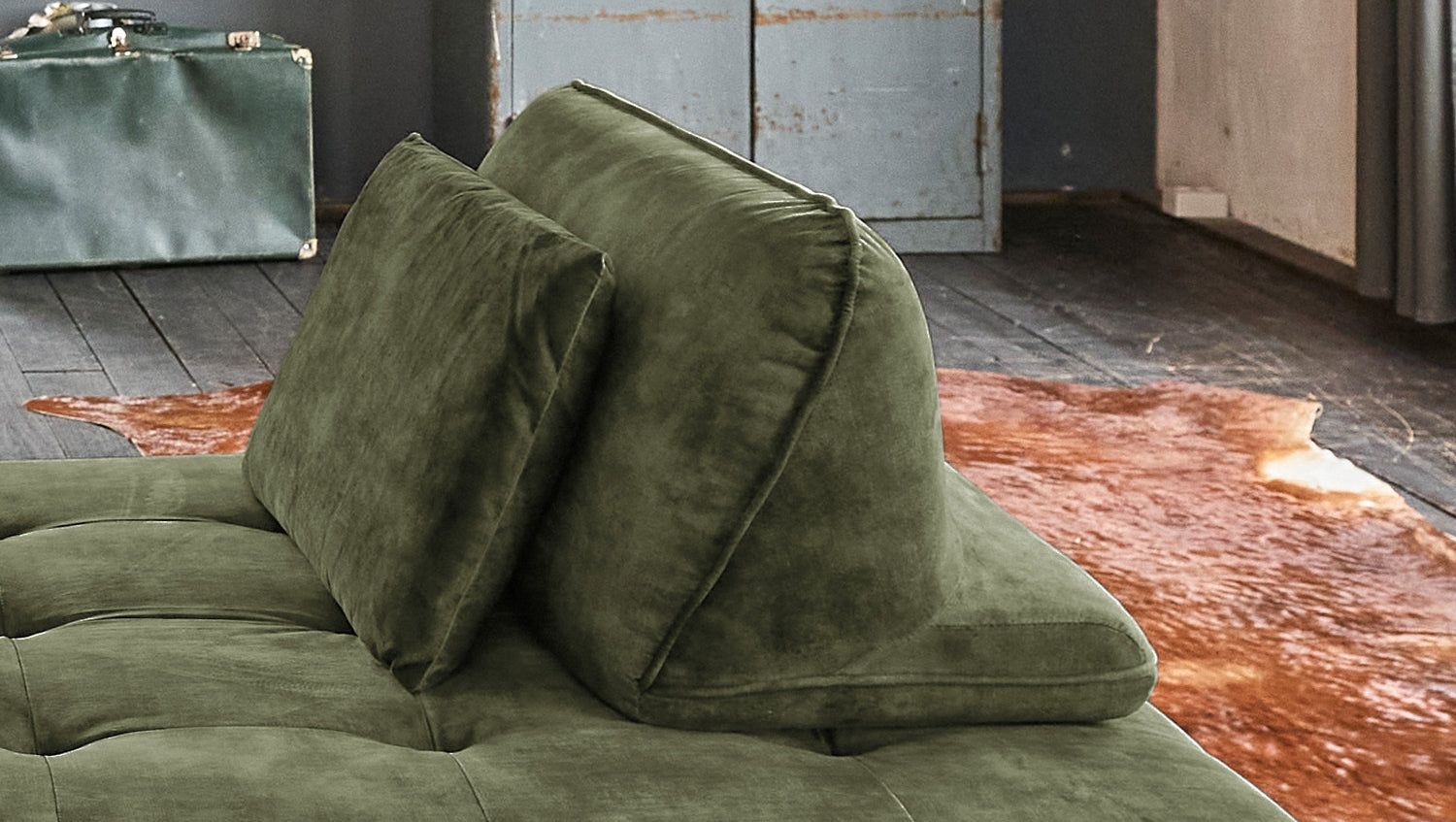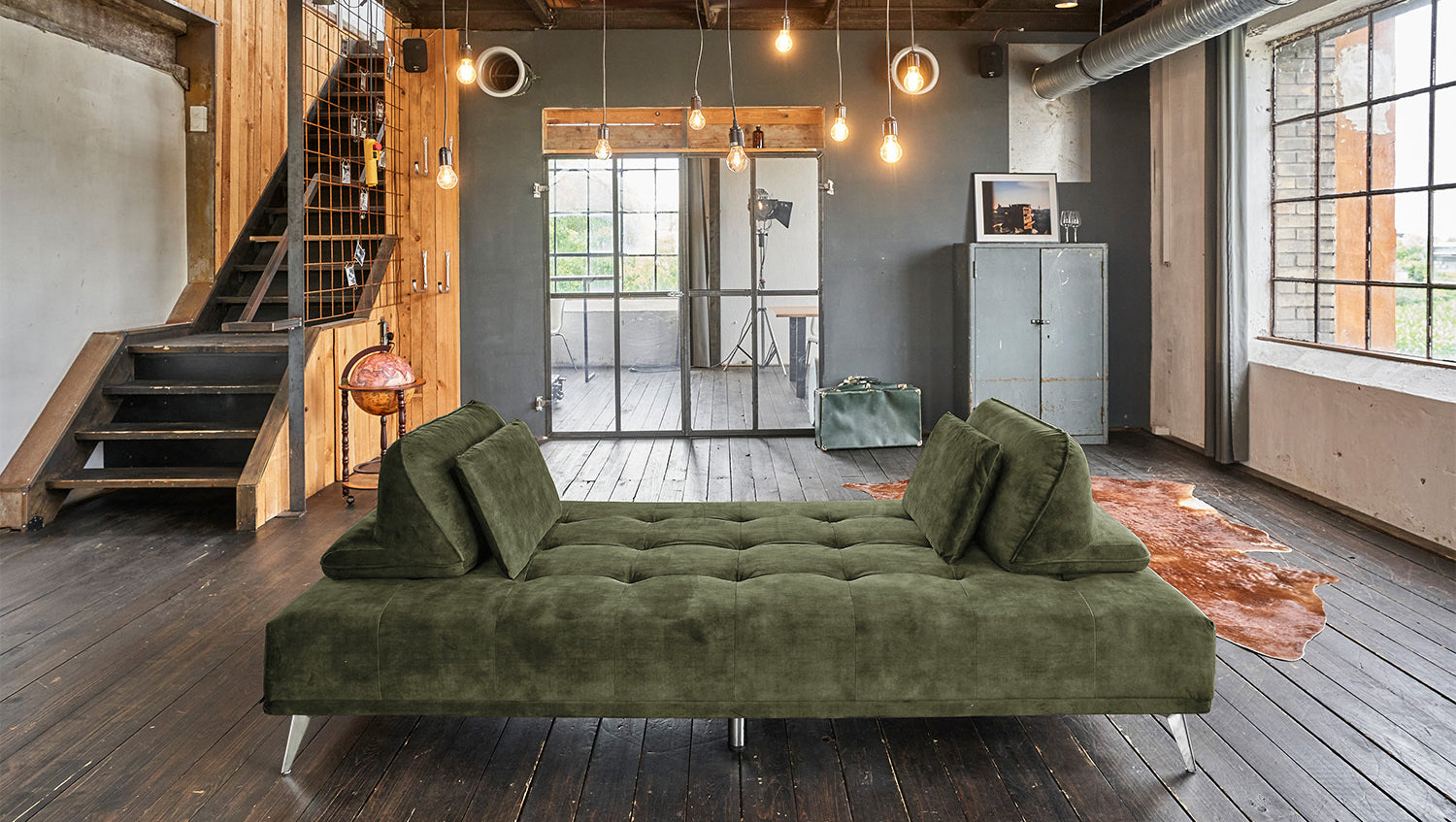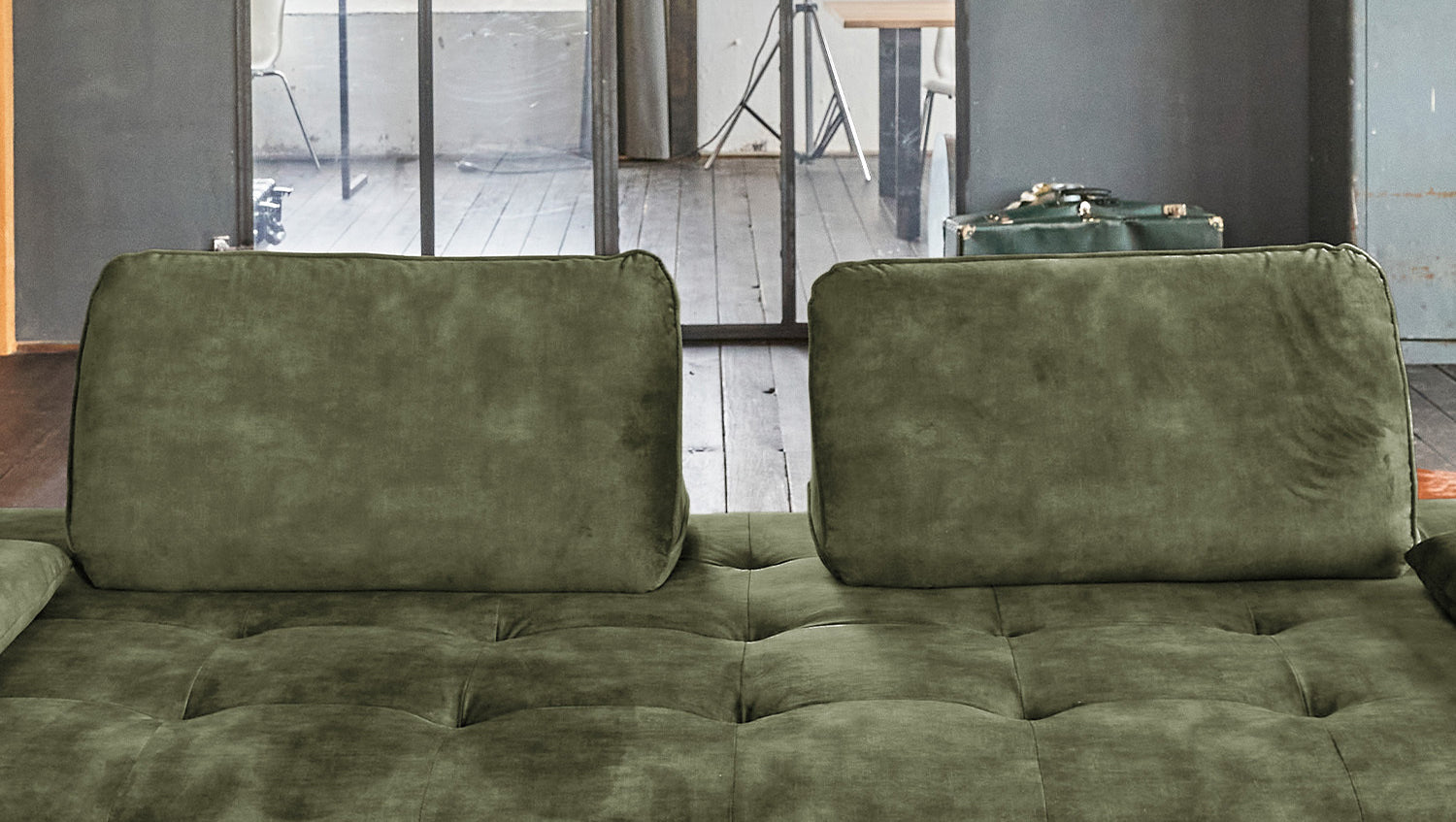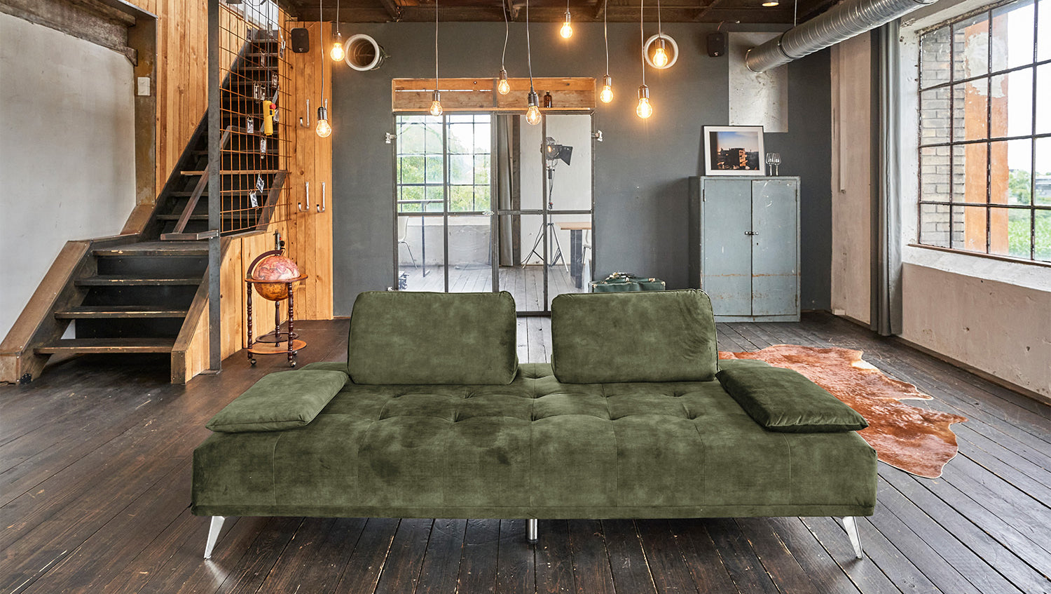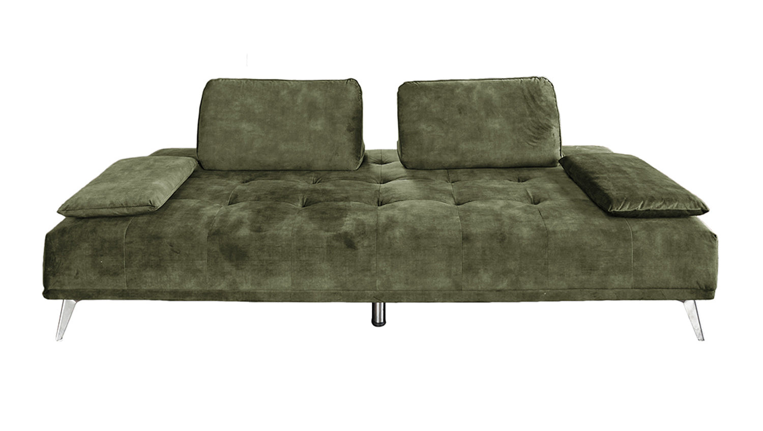 El sofá WIOLO de KAWOLA combina un diseño elegante con un alto nivel de confort. El elegante acolchado del asiento, la agradable funda de terciopelo en verde musgo y los pies de metal con filigranas hacen de este sofá un auténtico reclamo. Pero el moderno sofá cama no es sólo atractivo a la vista. Ofrece varias opciones de uso. Utilícelo como un elegante sofá para su salón. Lo más destacado: los cojines del respaldo se pueden distribuir y mover individualmente según se desee. Esto le permite adoptar la posición sentada o reclinada más cómoda para usted. Puede transformar el sofá en un cómodo sofá cama para sus invitados en un abrir y cerrar de ojos retirando los cojines del respaldo. La cómoda superficie reclinable ofrece mucho espacio para relajarse. Ya sea como sofá para sentarse o como sofá cama reclinable, WIOLO añade elegancia y comodidad a cualquier habitación. Disfrute de horas de relax en su nuevo sofá de terciopelo. WIOLO es el mueble perfecto para cualquiera que valore el diseño y la funcionalidad. Experimente la diferencia con este cómodo sofá cama.