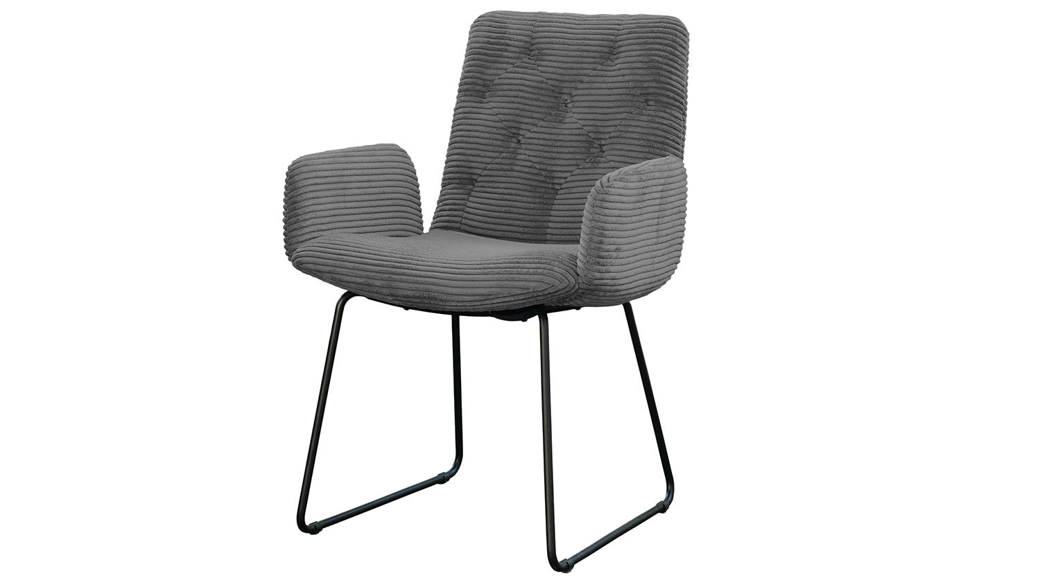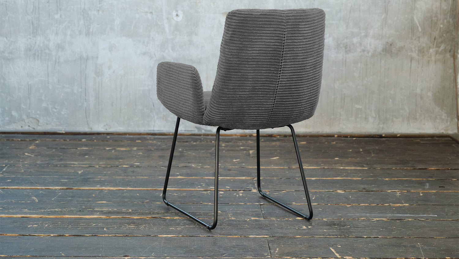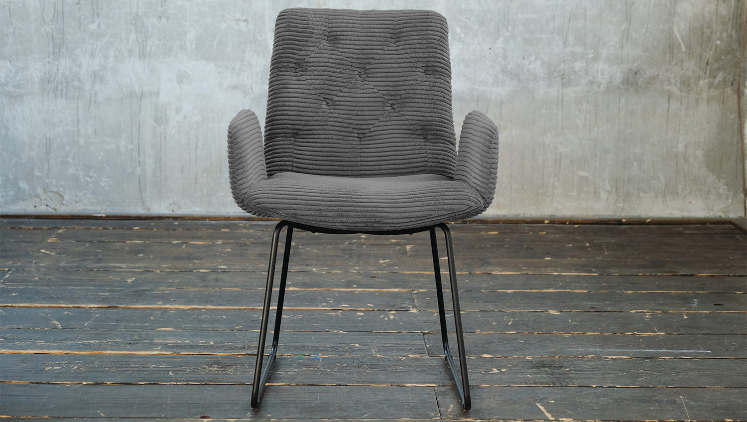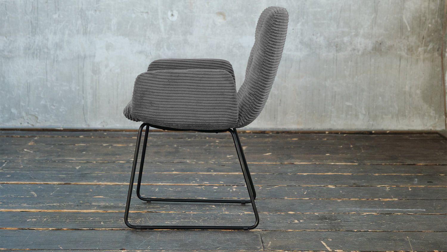 La silla de comedor KAWOLA NEW CHARME no es sólo un mueble, sino un auténtico elemento de diseño que pone un nuevo acento en su hogar. El estilo de la serie NEW CHARME es una reminiscencia de los años sesenta: el respaldo está cosido de forma elaborada sin botones; el respaldo está ligeramente curvado hacia delante en ambos lados y recuerda la forma de una silla de ala; los pies de patín de metal están recubiertos de polvo. La forma inusual de la silla NEW CHARME se complementa con la tapicería en la moderna tela de pana. Si lo que busca no es sólo una silla de comedor, sino una silla atemporal que marque tendencia, la serie NEW CHARME de KAWOLA es la elección perfecta.