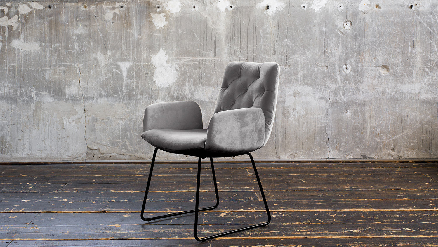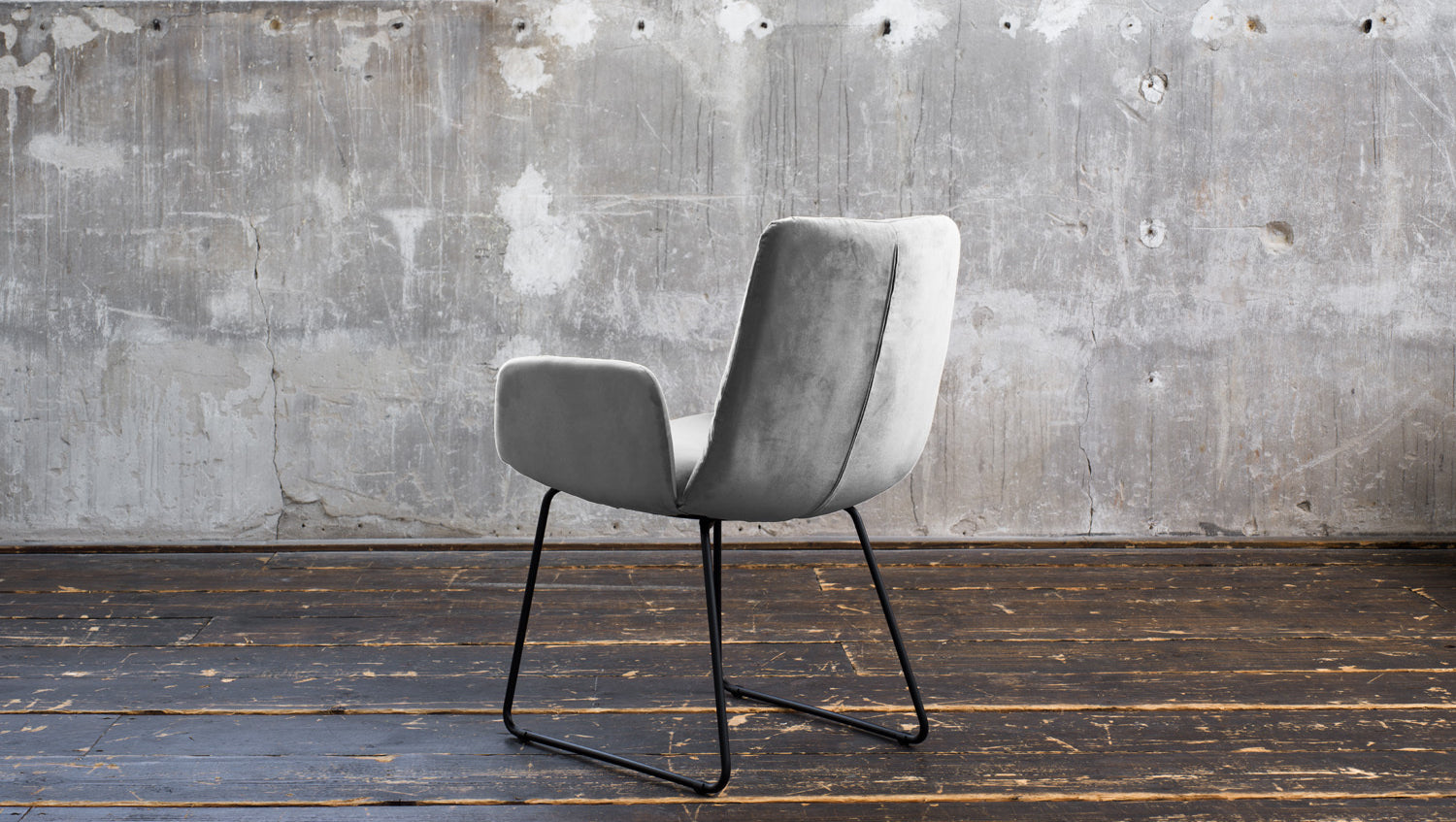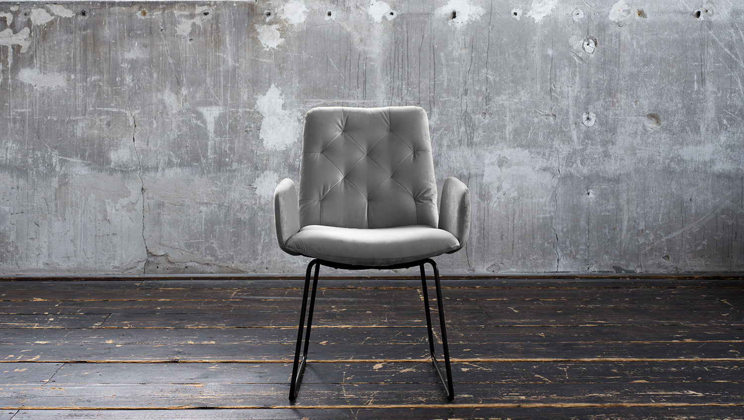La silla de comedor KAWOLA NEW CHARME no es sólo un mueble, sino un auténtico elemento de diseño que pone un nuevo acento en su hogar. El estilo de la serie NEW CHARME es una reminiscencia de los años sesenta: el respaldo está elaboradamente acolchado sin botones; el respaldo está ligeramente curvado hacia delante en ambos lados y recuerda la forma de una silla de ala; los pies de patín de metal están recubiertos de polvo. Además de la forma inusual de la silla NEW CHARME, la tapicería se ha elegido en un tejido de terciopelo agradablemente suave. Si lo que busca no es sólo una silla de comedor, sino una silla atemporal que marque tendencia, la serie NEW CHARME de KAWOLA es la elección perfecta.