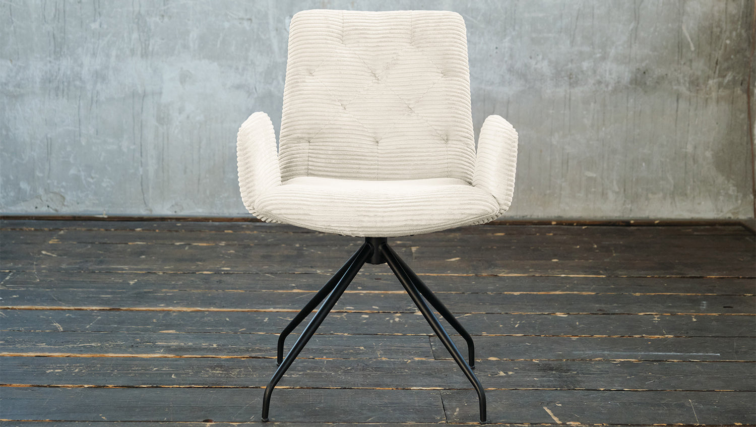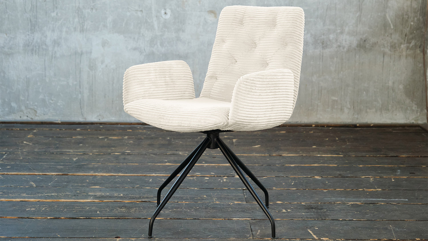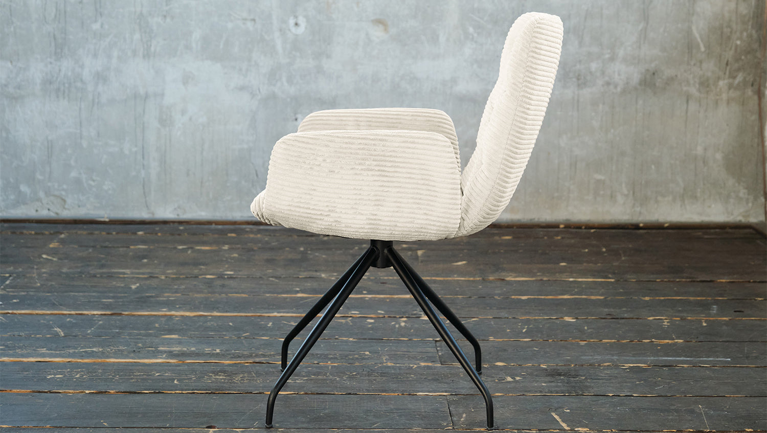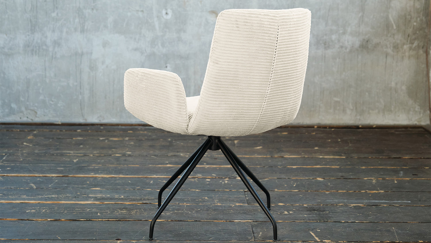 KAWOLA silla NEW CHARME silla giratoria silla de comedor pana crema blanco