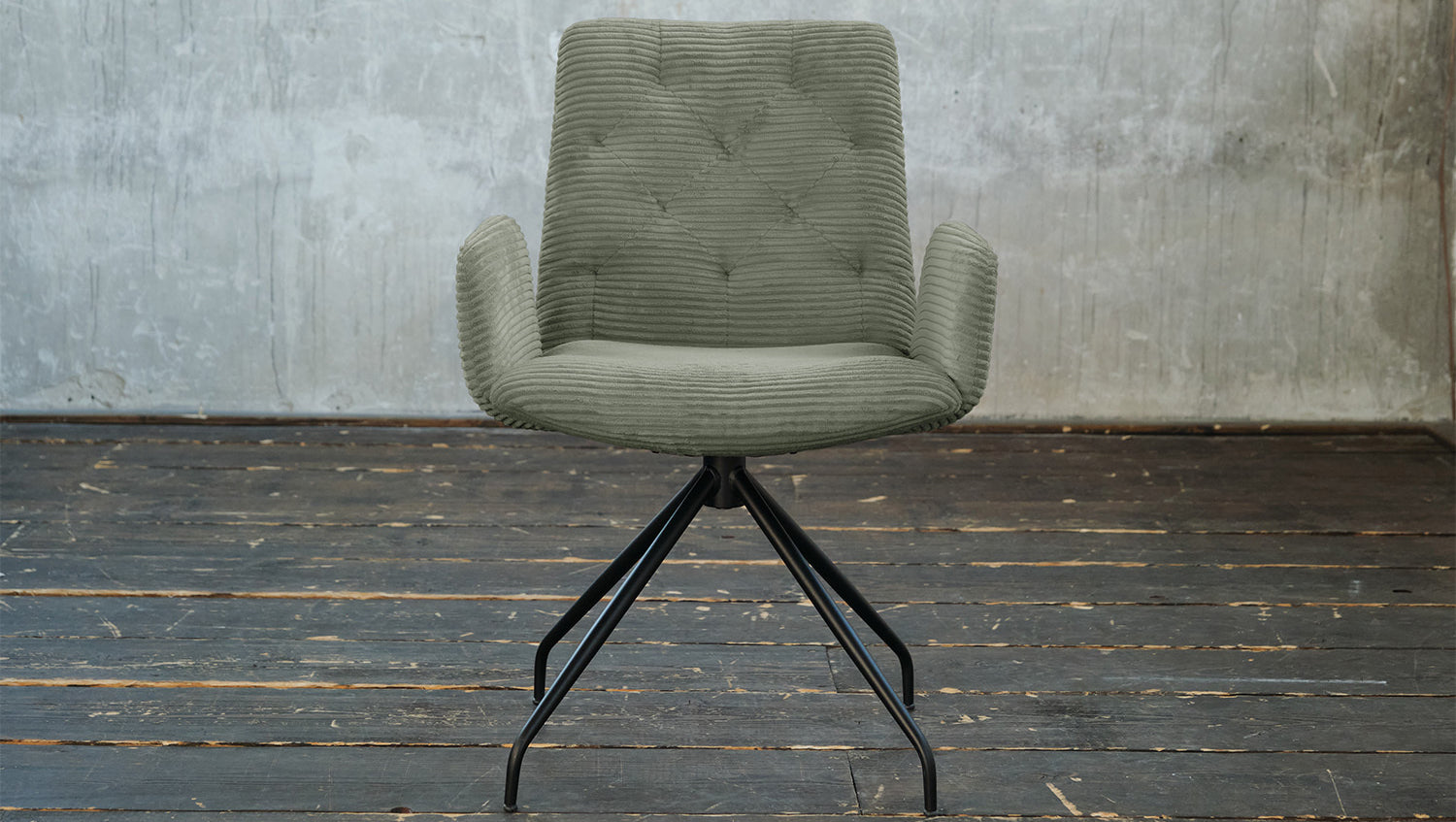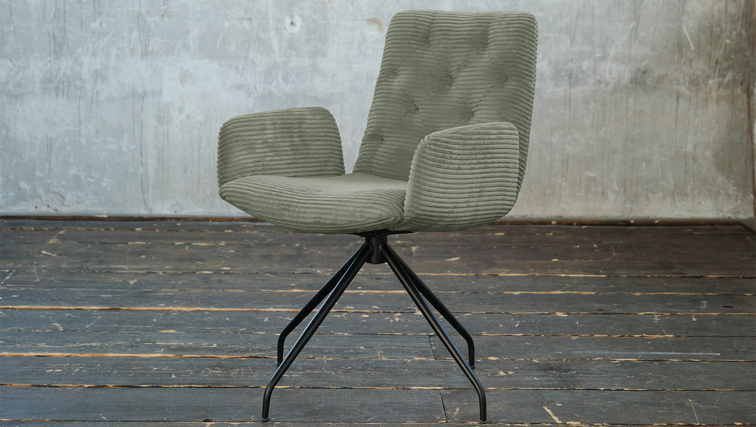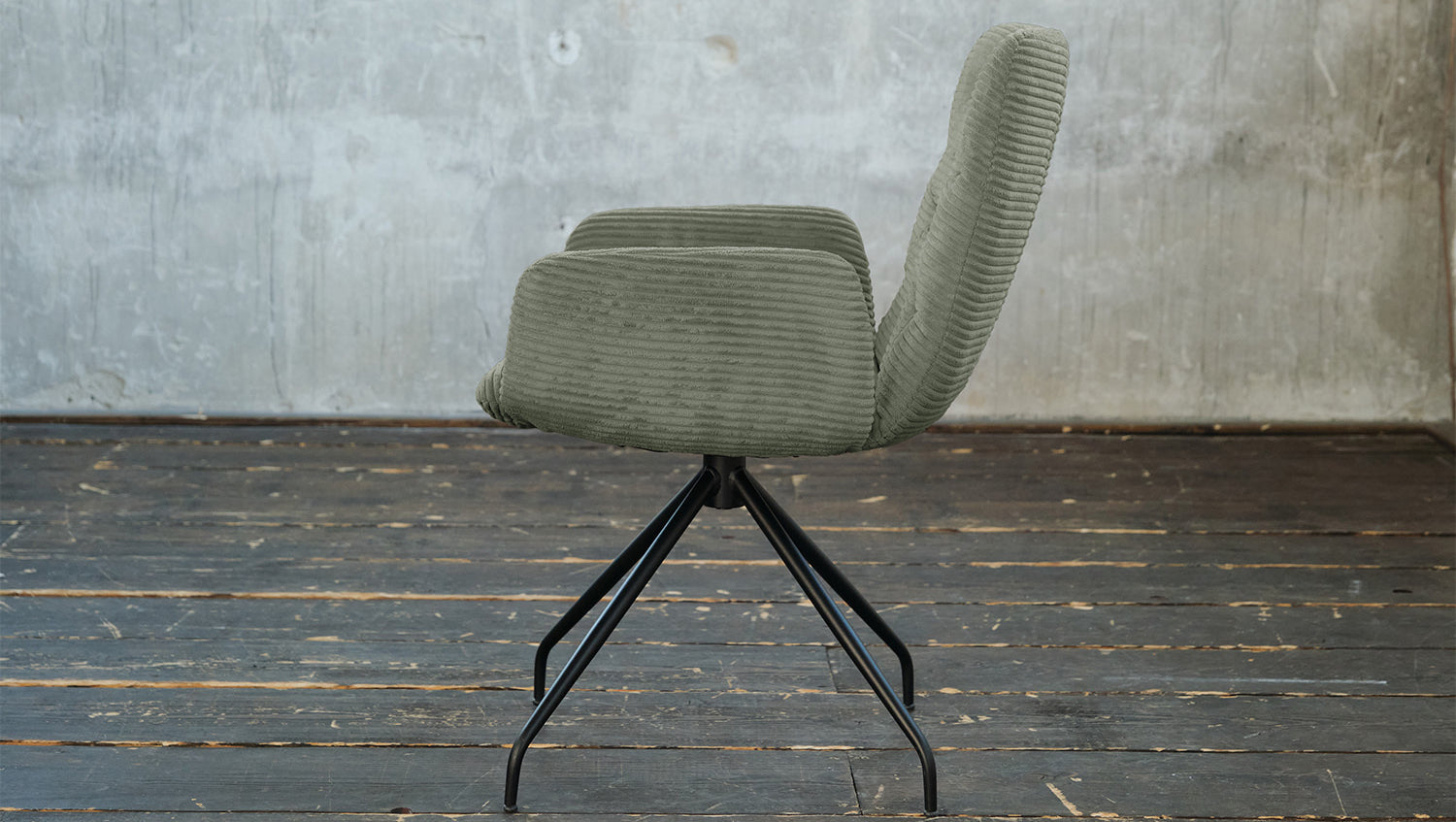 KAWOLA silla NEW CHARME silla giratoria silla de comedor pana verde oliva