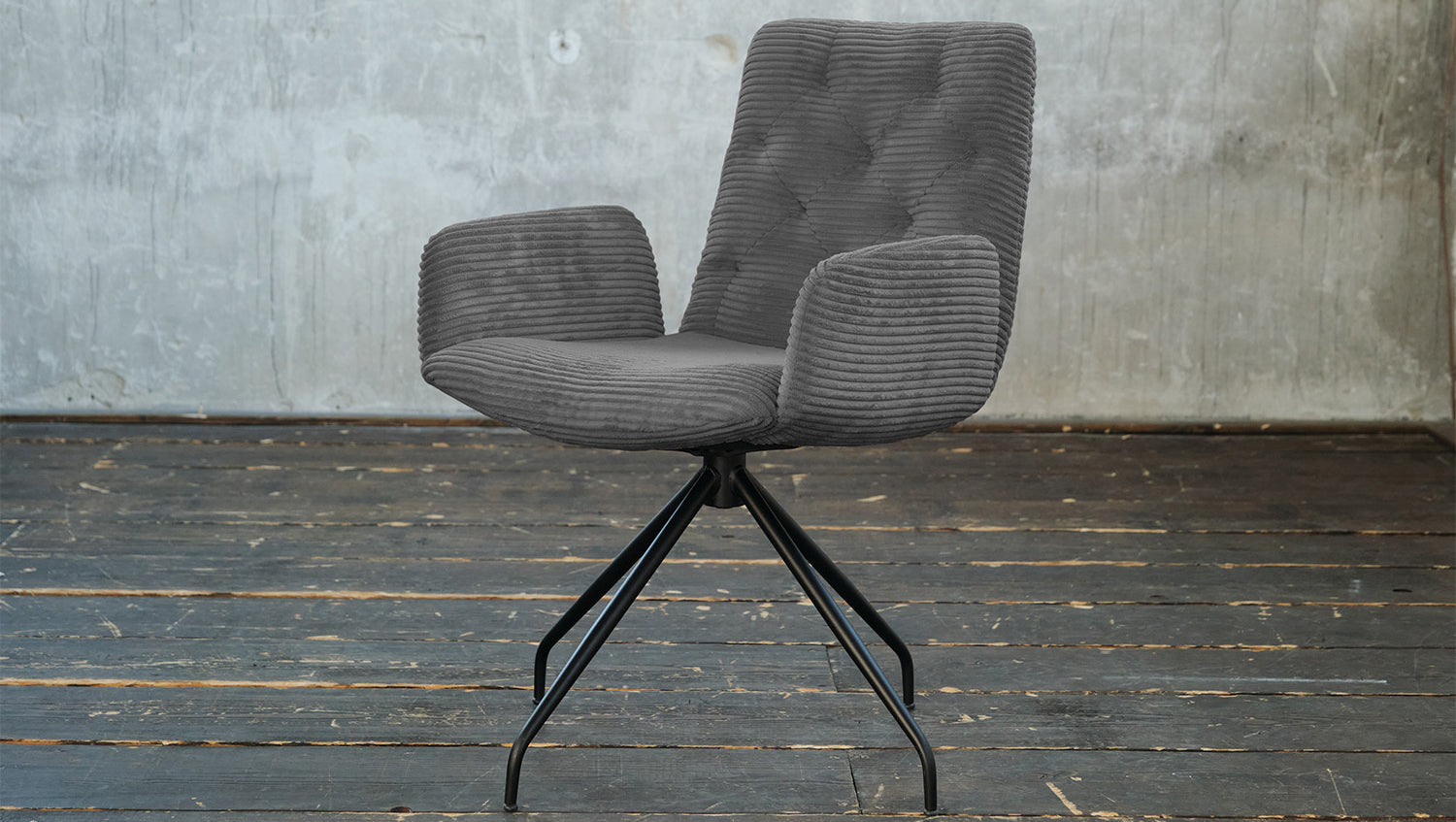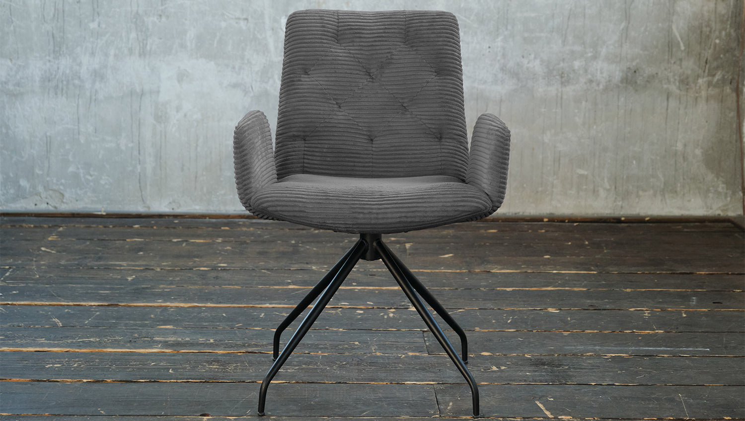 KAWOLA silla NEW CHARME silla giratoria silla de comedor pana gris