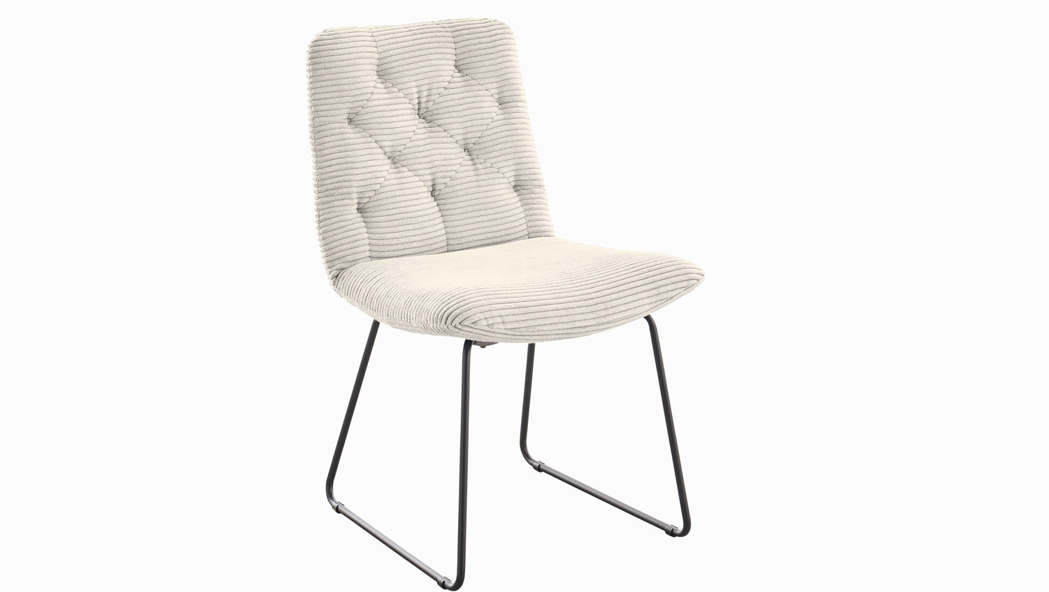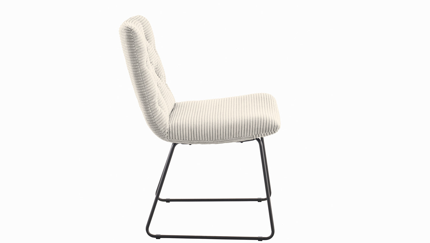 La silla de comedor KAWOLA NEW CHARME no es sólo un mueble, sino un auténtico elemento de diseño que pone un nuevo acento en su hogar. El estilo de la serie NEW CHARME es una reminiscencia de los años sesenta: el respaldo está cosido de forma elaborada sin botones; el respaldo está ligeramente curvado hacia delante en ambos lados y recuerda la forma de una silla de ala; los pies de patín de metal están recubiertos de polvo. La forma inusual de la silla NEW CHARME se complementa con la tapicería en la moderna tela de pana. Si lo que busca no es sólo una silla de comedor, sino una silla atemporal que marque tendencia, la serie NEW CHARME de KAWOLA es la elección perfecta.